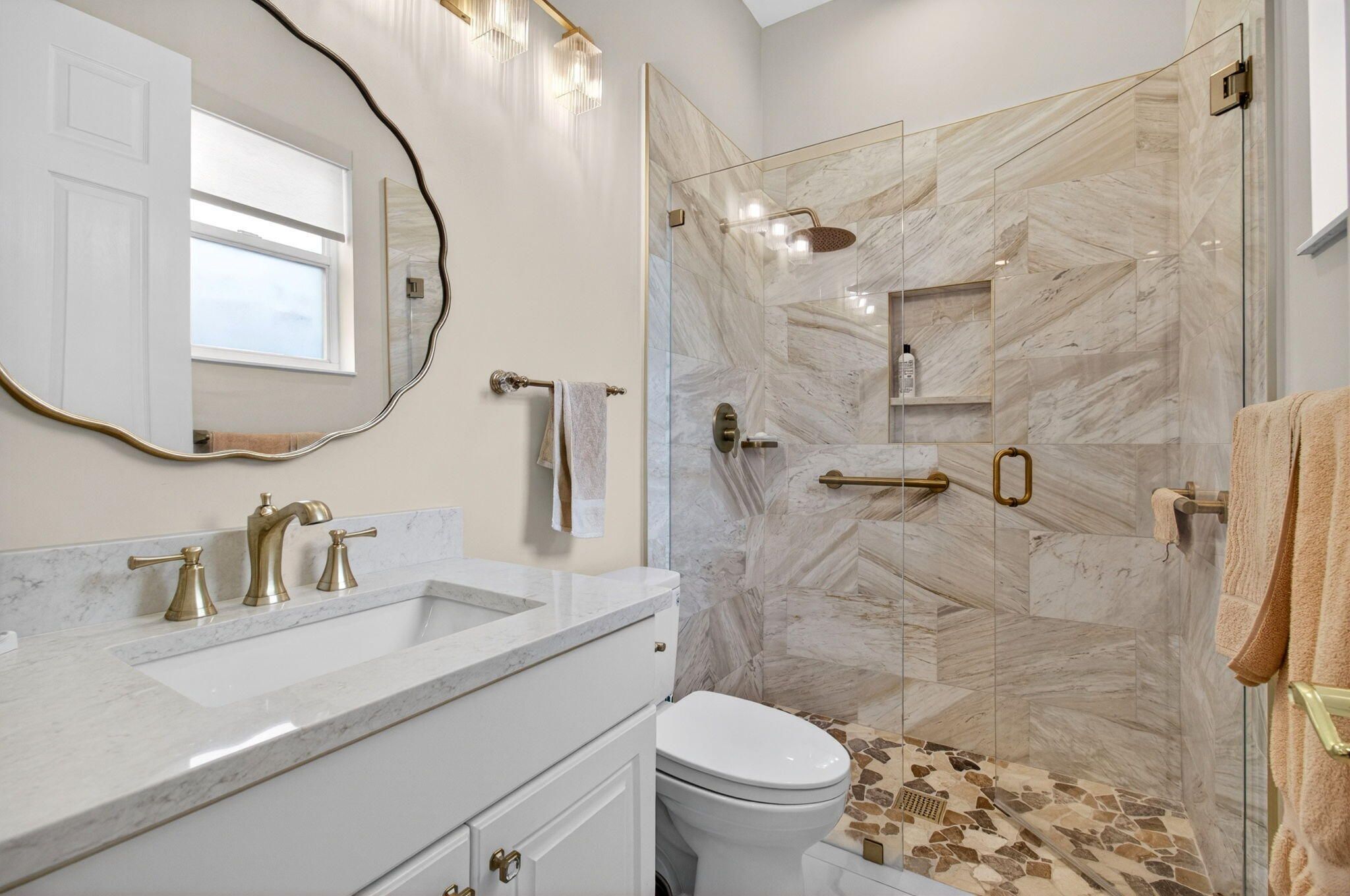 Exquisite, completely updated 4 Bedroom(4th currently used as a Den) 3 Bath single-family home situated in one of the most Active Adult Communities in South Florida! ROOF REPLACED IN 2024! With over 2,300 square feet under air, this Show Stopper highlights modern upgrades, including a stunning kitchen with sleek custom cabinetry, quartz counters & backsplash, and top of the line appliances. Fully remodeled bathrooms. ensuring both comfort and contemporary style throughout. Step into the inviting foyer where abundant natural light creates an airy and welcoming atmosphere. The open floor plan boasts 30" porcelain tile throughout. Spacious primary Bedroom offers two custom walk-in closets & a luxurious remodeled bath with two vanities, separate shower, & tub. See additional remarks. Guest Bedroom is an en-suite with a private remodeled full Bath and custom closet. AC replaced 2021. Custom Hunter Douglas window treatments throughout & Designer fixtures. Outdoors enjoy the private backyard and patio, offering ample space for dining and entertaining with no rear neighbors or roads. The community Officers an array of exceptional amenities all featured at its stunning recently remodeled clubhouse. On site restaurant, rooftop, patio and bar, Pickleball, state-of-the-art gym, yoga and fitness studio, tennis courts, resort style pool, and cabanas, resistance pool, clubs galore, entertainment, clubs galore, , putting green, billiards, bocce ball court-you name it, you will find it here at Venetian Isles. Minutes to local shopping, restaurants, and major thoroughfares. Short drive to Palm Beach, International Airport. To sum it up, this Residence combines modern upgrades with fantastic outdoor living, and an amenity-rich community, setting the stage for the lifestyle you've been searching for!