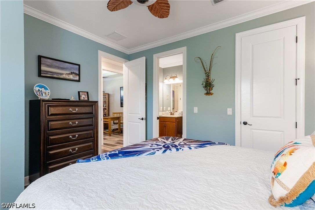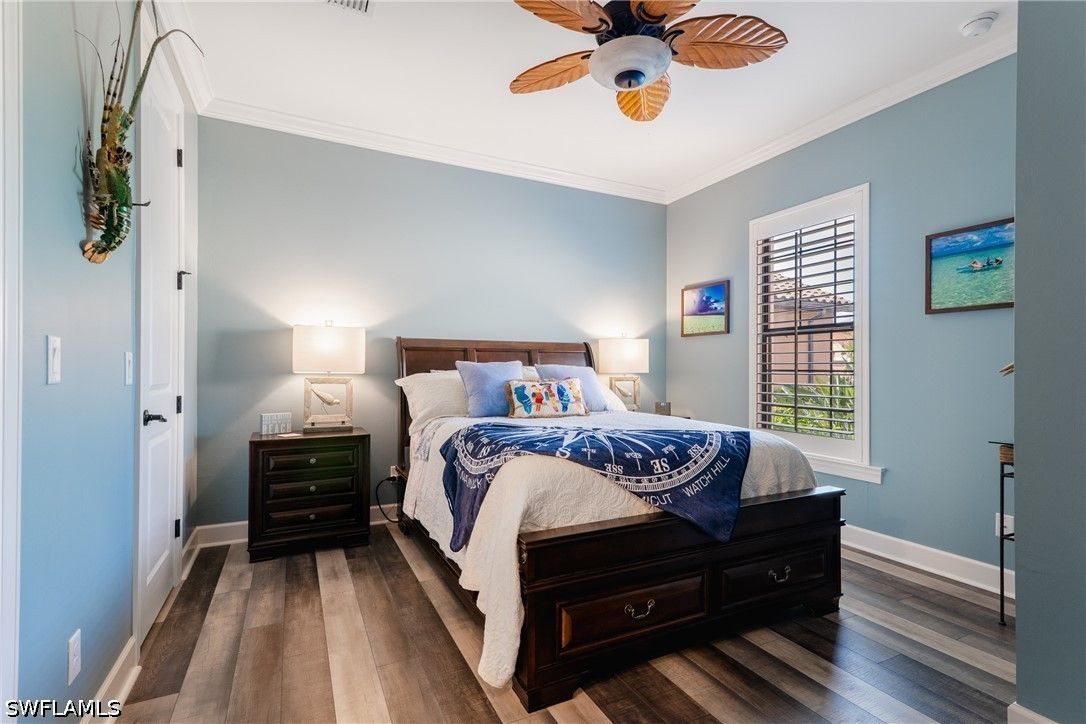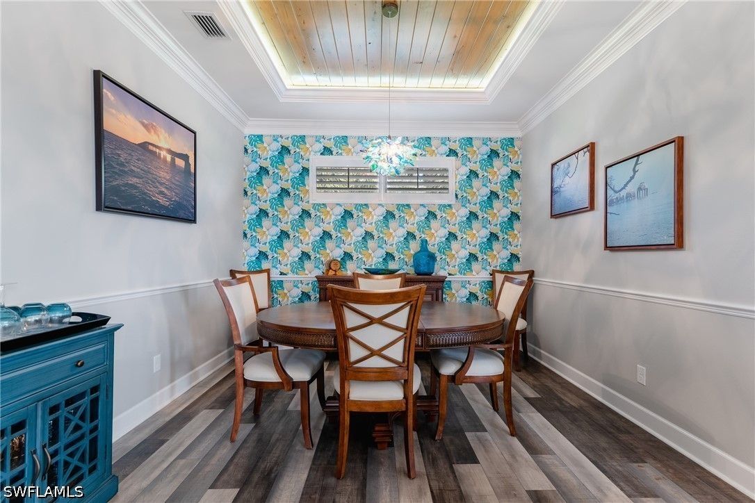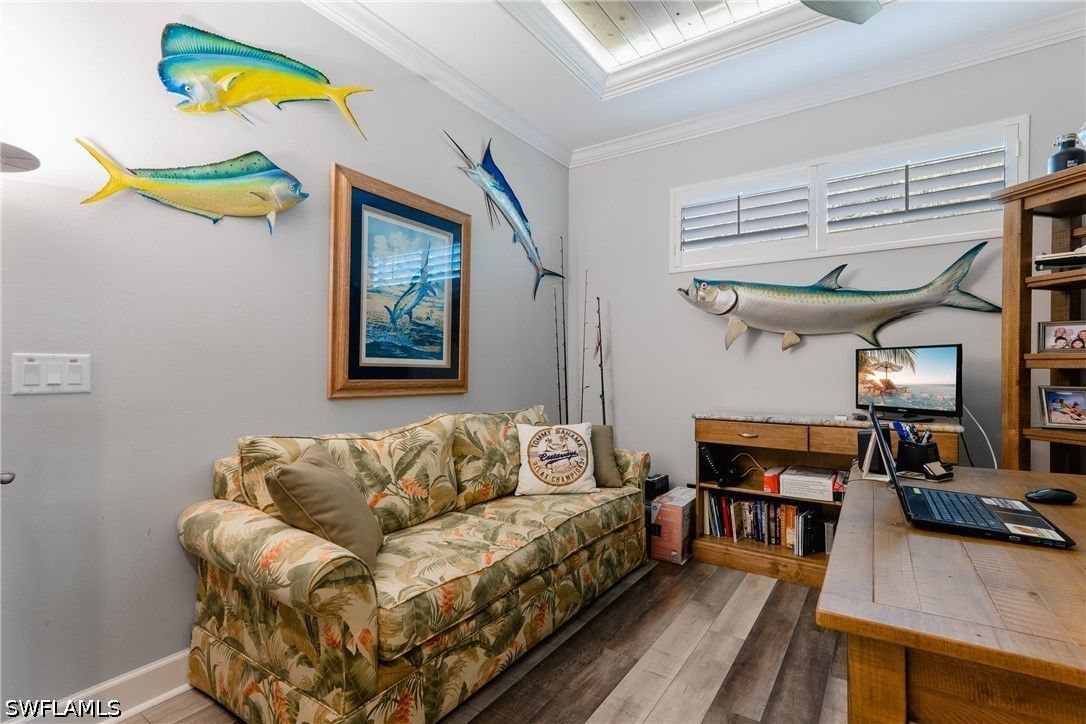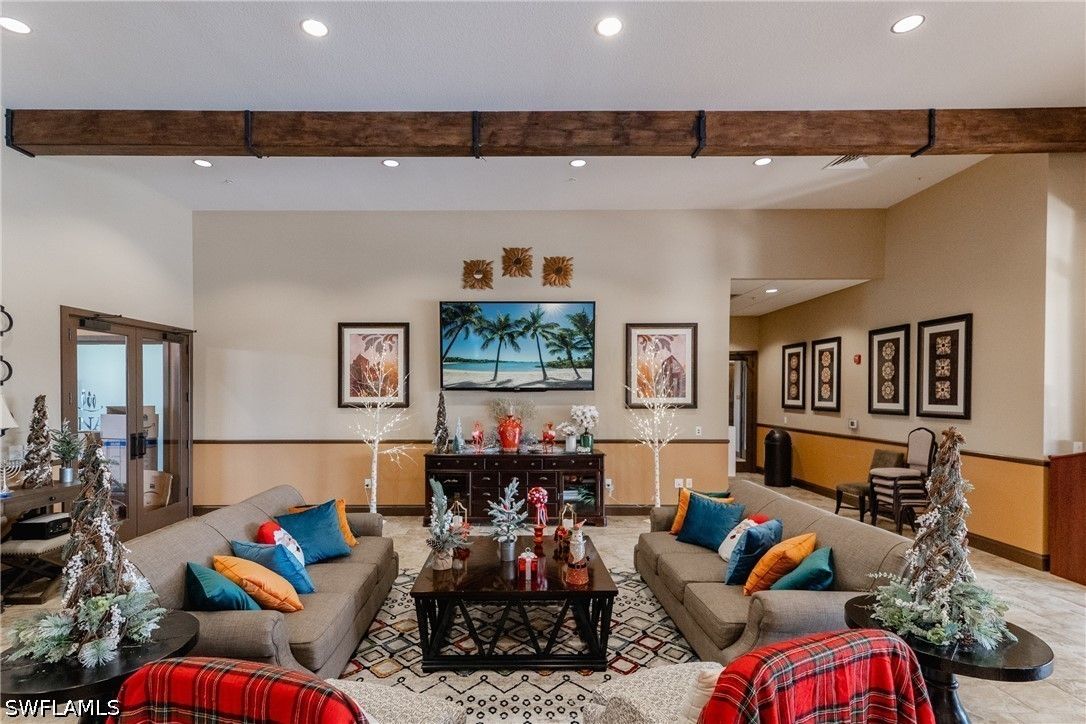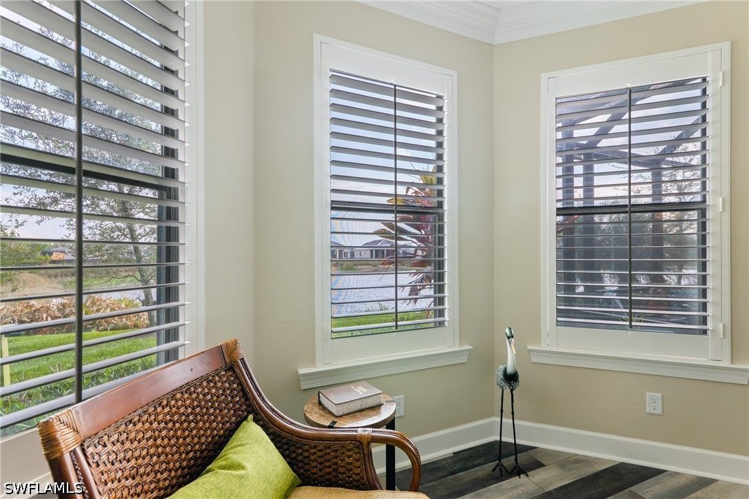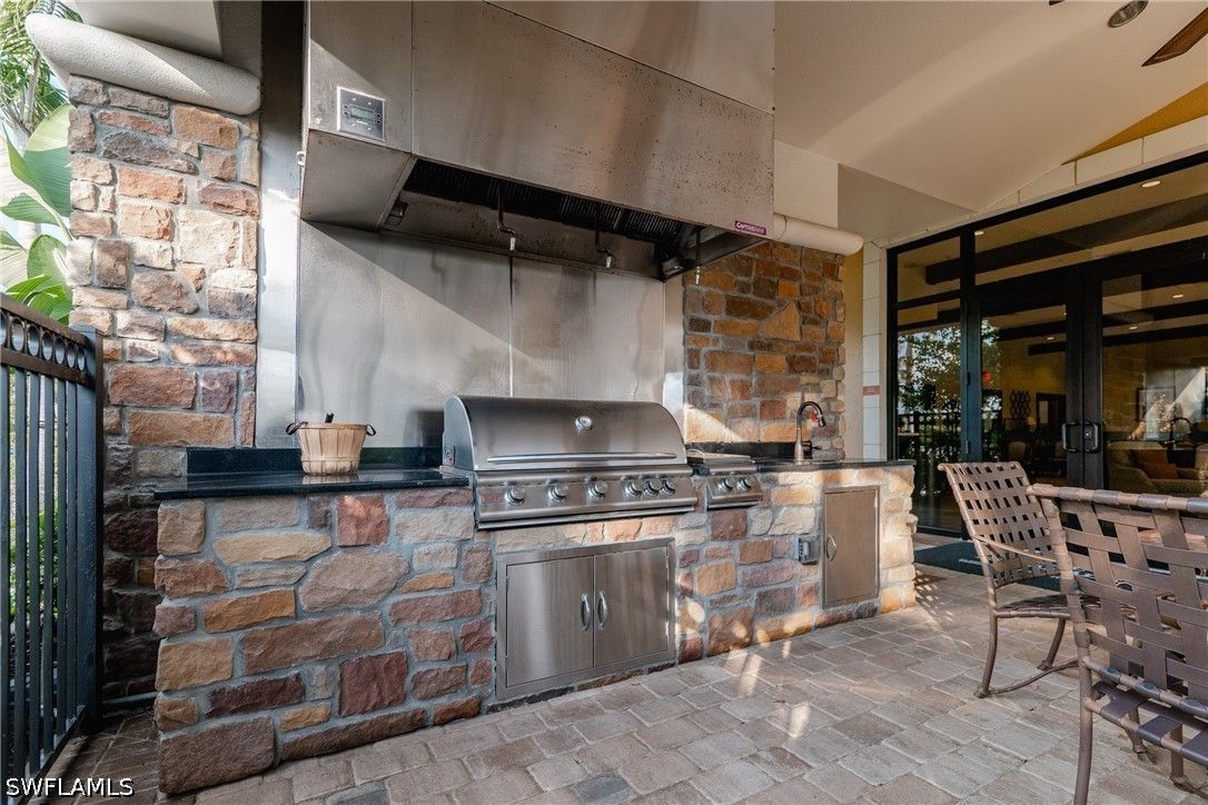 Thoughtfully upgraded and comfortably furnished, this move-in ready, turnkey 2-bedroom + den, 2-bath residence offers a refined take on effortless Naples living in the resort-style community of Esplanade at Hacienda Lakes. Set at the end of a quiet cul-de-sac and built for both beauty and peace of mind, the home is fully outfitted with hurricane impact glass windows and doors—eliminating the need for manual shutters while providing year-round protection. From the moment you step inside, the home sets itself apart with architectural detail that draws the eye upward—custom wood coffered and tray ceilings that create warmth, depth, and visual interest throughout. Plantation shutters and plank-style flooring further enhance the home’s clean, timeless aesthetic. The open-concept design is anchored by a spacious gathering room, where a striking coffered ceiling adds both character and scale. The kitchen is equally well-appointed, featuring GE Café series appliances, a built-in wine fridge, quartz countertops, and abundant cabinetry—suited for both everyday living and entertaining. The den offers flexibility as a home office or additional guest space. The owner’s suite serves as a private retreat, complete with a bay window sitting area, wood tray ceiling, and a well-appointed ensuite bath. Outdoor living takes center stage on the screened lanai, where a summer kitchen invites effortless entertaining against a backdrop of tranquil lake and sunset views. The extended two-car garage—offering an additional 76 square feet—provides valuable additional storage. Residents of Esplanade at Hacienda Lakes enjoy a vibrant, amenity-rich lifestyle with a resort-style pool, fitness center, tennis, pickleball, and a full calendar of social activities—all just a short drive from Naples’ beaches, dining, and shopping. Where architectural detail, tranquil views, and effortless living come together—creating a move-in ready home that feels as good as it looks.