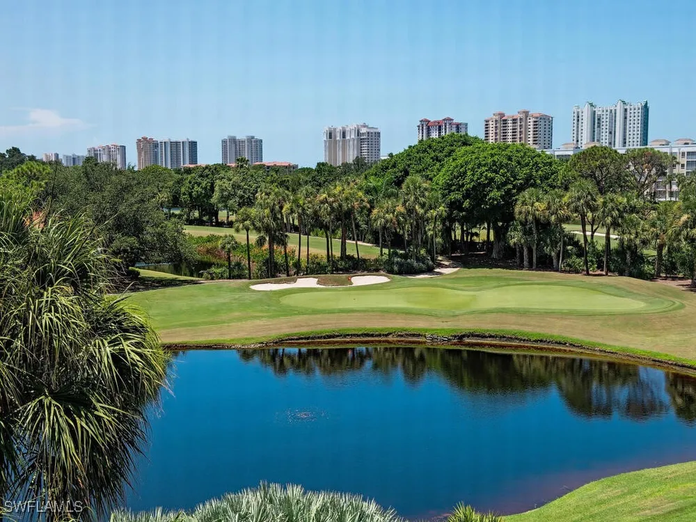 Rarely available, this beautiful condo at The Crescent offers a magnificent penthouse lifestyle with a 29-foot lanai overlooking the lake, golf course, and breathtaking sunsets. A gracious double-door entry welcomes you into an elegant foyer that flows seamlessly into the expansive living and dining areas. The adjacent den is finely finished and opens to a bright, spacious kitchen with abundant storage and a second dining area—perfect for entertaining. The split floor plan provides privacy, with both the master suite and guest bedroom featuring ensuite baths. A beautifully appointed powder room, a large laundry/utility room, and a secure private two-car garage (conveniently located across from the elevator) add comfort and functionality. With only two residences per floor, this home offers an exceptional sense of privacy. Residents of Pelican Bay enjoy world-class amenities, including beach tram service, private beach access with beachfront dining, a fully attended fitness center, tennis and pickleball courts, and miles of walking and biking paths. The location is unbeatable—just minutes from the Ritz-Carlton, Artis–Naples, Waterside Shops, and Mercato for upscale shopping and dining.