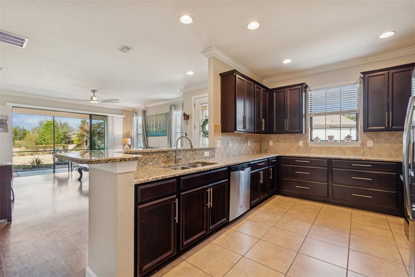 - Ceiling Fan(s), Crown Molding, Kitchen/Family Room Combo, Living/Dining Room, Open Floorplan, Stone Counters, Thermostat, Walk-In Closet(s)