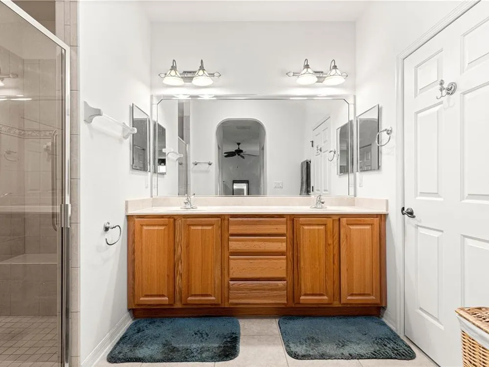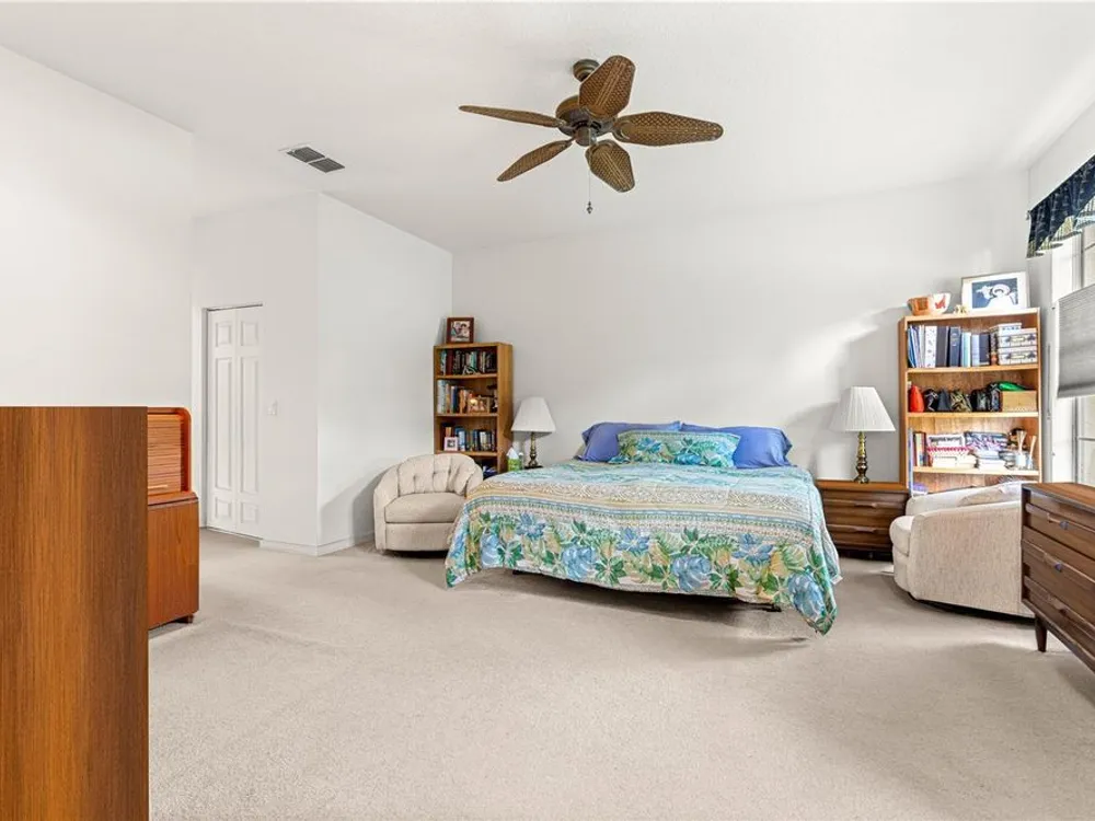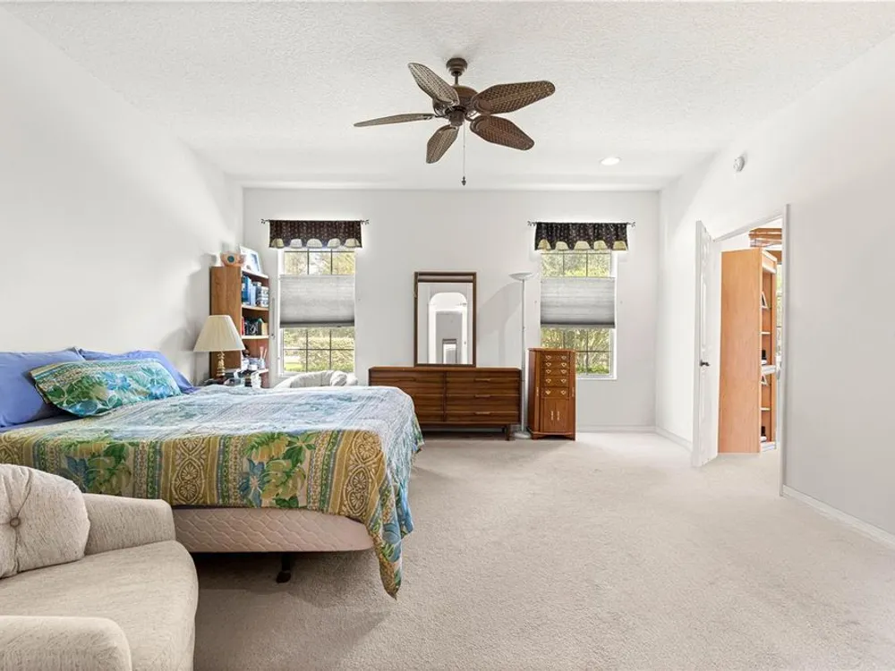 - Ceiling Fan(s), High Ceilings, Open Floorplan, Main Level Primary, Solid Surface Counters, Split Bedrooms, Thermostat, Walk-In Closet(s)