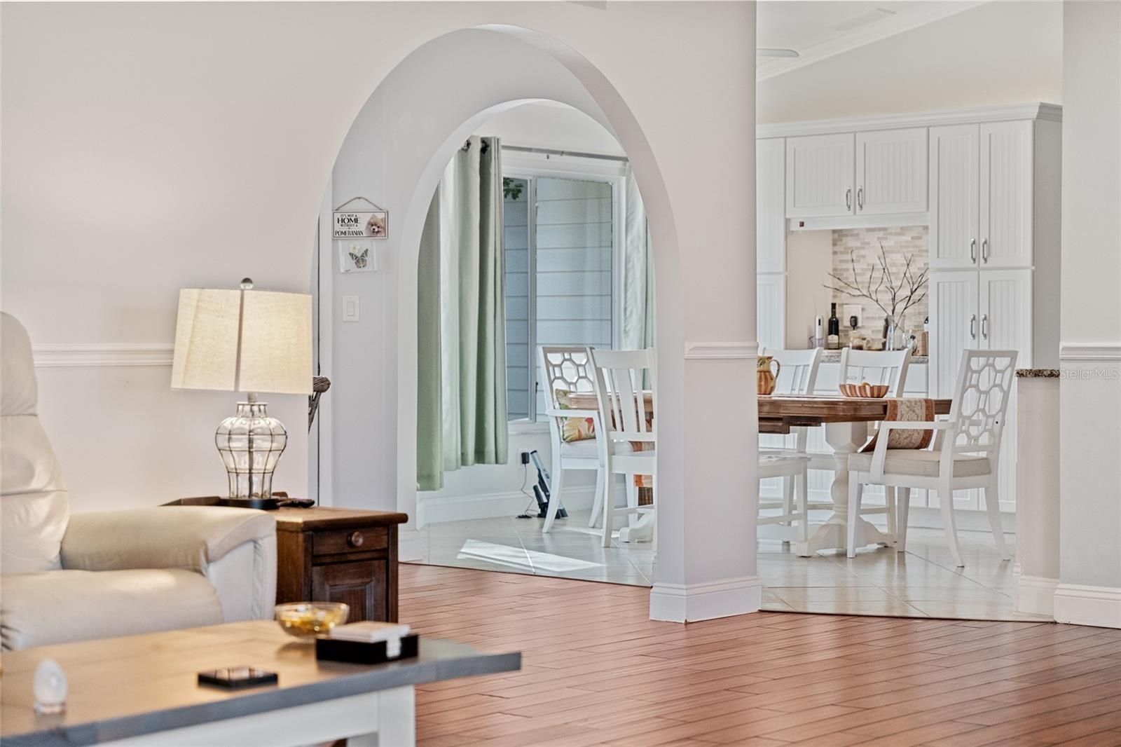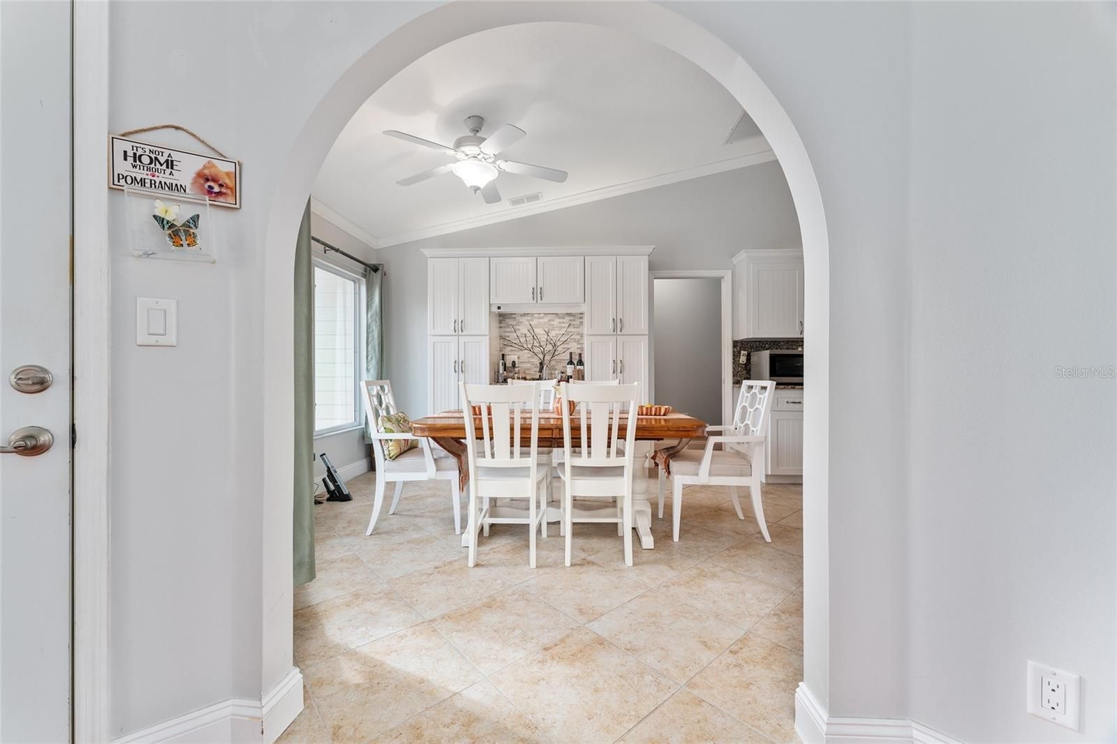 - Cathedral Ceiling(s), Ceiling Fan(s), Chair Rail, Crown Molding, Eat-in Kitchen, Living/Dining Room, Open Floorplan, Solid-Wood Cabinets, Split Bedrooms, Stone Counters, Thermostat, Walk-In Closet(s), Window Treatments