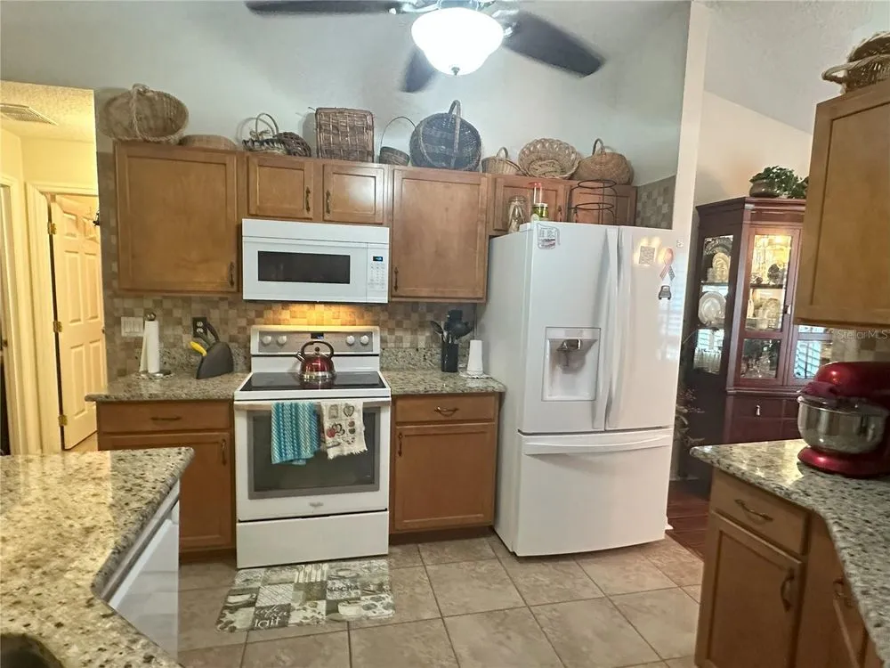 - Cathedral Ceiling(s), Ceiling Fan(s), Eat-in Kitchen, Kitchen/Family Room Combo, Stone Counters, Thermostat, Walk-In Closet(s)