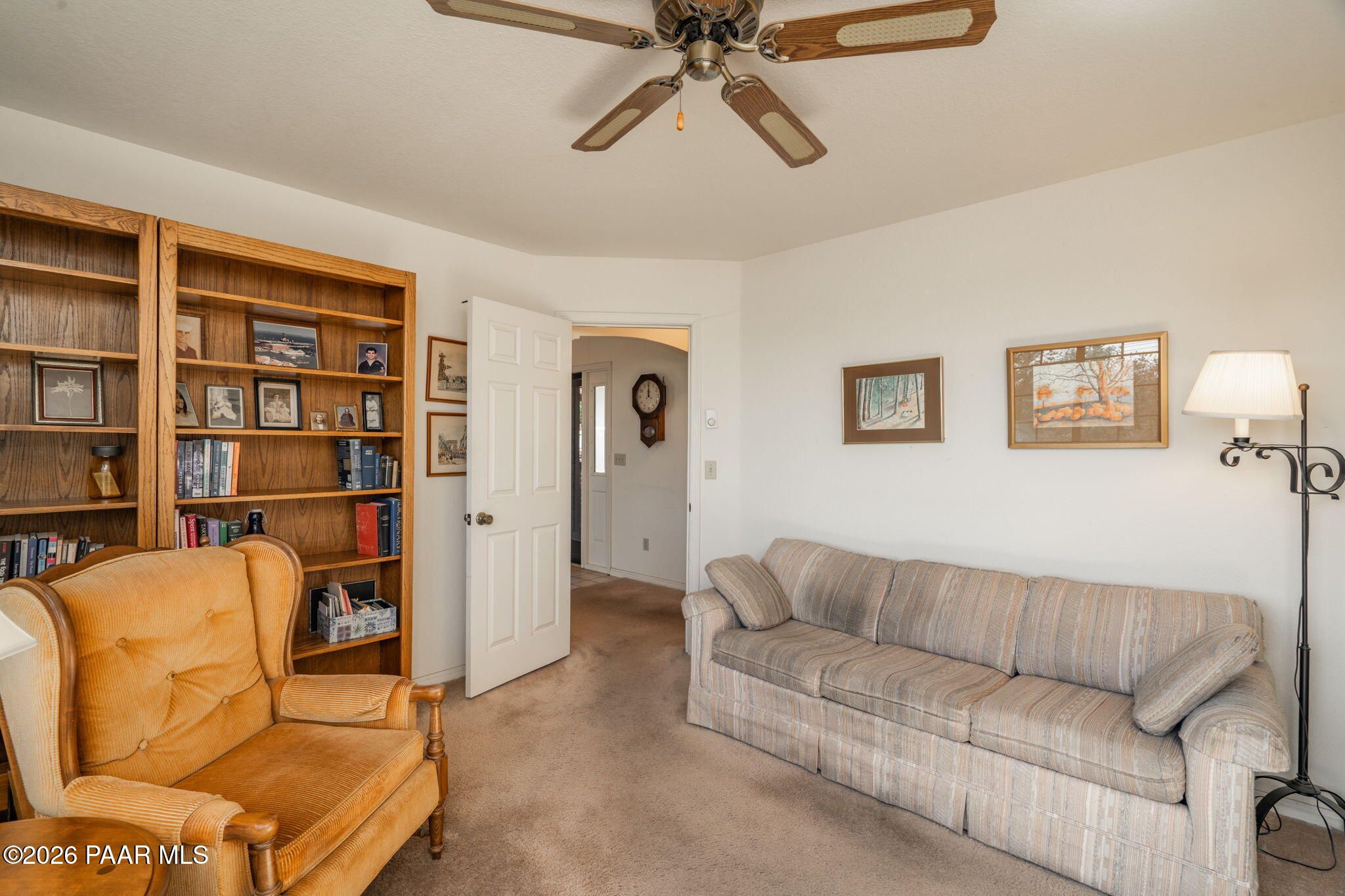 Discover the perfect blend of comfort and potential in this charming 3-bedroom, 2-bathroom home located in the desirable Yavapai Hills community. Situated on a generous 0.44-acre lot, this 1,433-square-foot residence offers a functional single-level floor plan designed for easy living.The interior features a split-bedroom layout for added privacy, while the spacious lot provides ample room for outdoor activities or potential landscaping dreams. Enjoy the convenience of an attached 2-car garage and the peace of mind that comes with a well-established neighborhood. Residents of Yavapai Hills benefit from a community atmosphere with a low annual HOA fee. Whether you're looking for a primary residence or a serene getaway in Prescott, this home is ready for its next Owner .