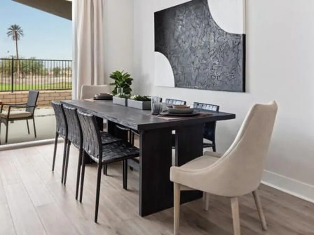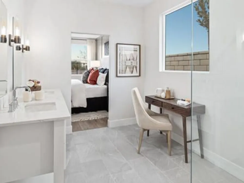 Last Opportunity, Move-in Ready! Welcome to this breathtaking single-story residence nestled in the highly desirable Aguila at Terra Lago community. Showcasing the elegant Arosa floor plan, this thoughtfully designed home features three spacious bedrooms and two beautifully appointed bathrooms, combining style, comfort, and effortless living. Step inside to experience Farmhouse-inspired sophistication, highlighted by a gourmet kitchen adorned with crisp white cabinetry, sleek matte black hardware, and luxurious Iced White Quartz countertops. Premium stainless-steel appliances add a touch of modern convenience, making this space perfect for both everyday meals and entertaining guests. The expansive Great Room flows seamlessly through the 15' multi-slide door into a large, covered patio, ideal for morning coffee, alfresco dining, or hosting unforgettable get-togethers. Retreat to the private Owner's Suite, a serene sanctuary featuring a spa-like bathroom with dual sinks, a freestanding soaking tub, a walk-in shower, and a generous walk-in closet. Situated on a spacious lot, this home offers the perfect canvas to create your own backyard oasis whether you dream of a pool, garden, or outdoor lounge. Don't miss this opportunity to own a truly exceptional Move-in Ready home in a vibrant, master-planned community. **Prices are subject to change, photos are a Model home representation, actual home will vary.