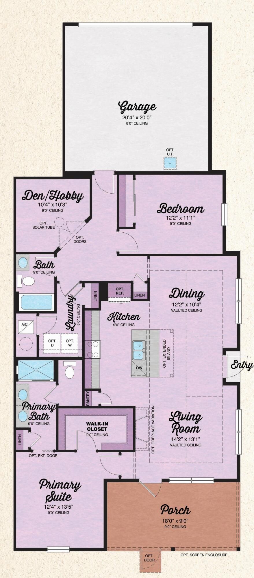 - Vaulted Ceiling(s), Unfurnished, Kitchen Island, Recessed Lighting