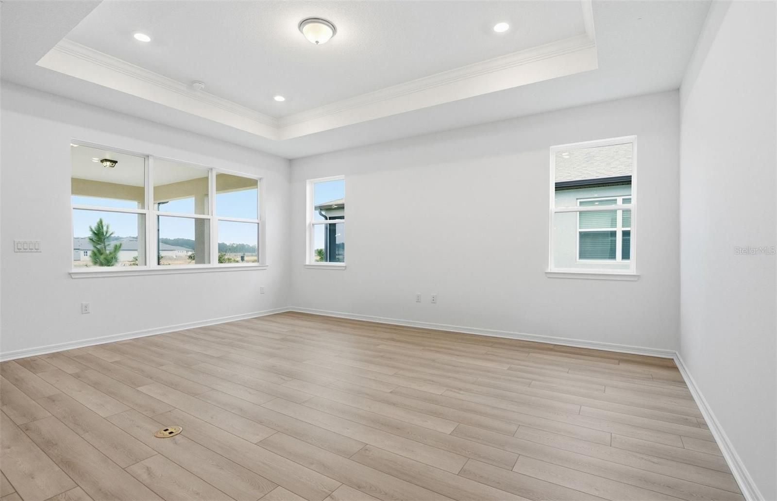 - Built-in Features, Eat-in Kitchen, In-Wall Pest Control, Open Floorplan, Main Level Primary, Solid Surface Counters, Thermostat, Tray Ceiling(s), Walk-In Closet(s)