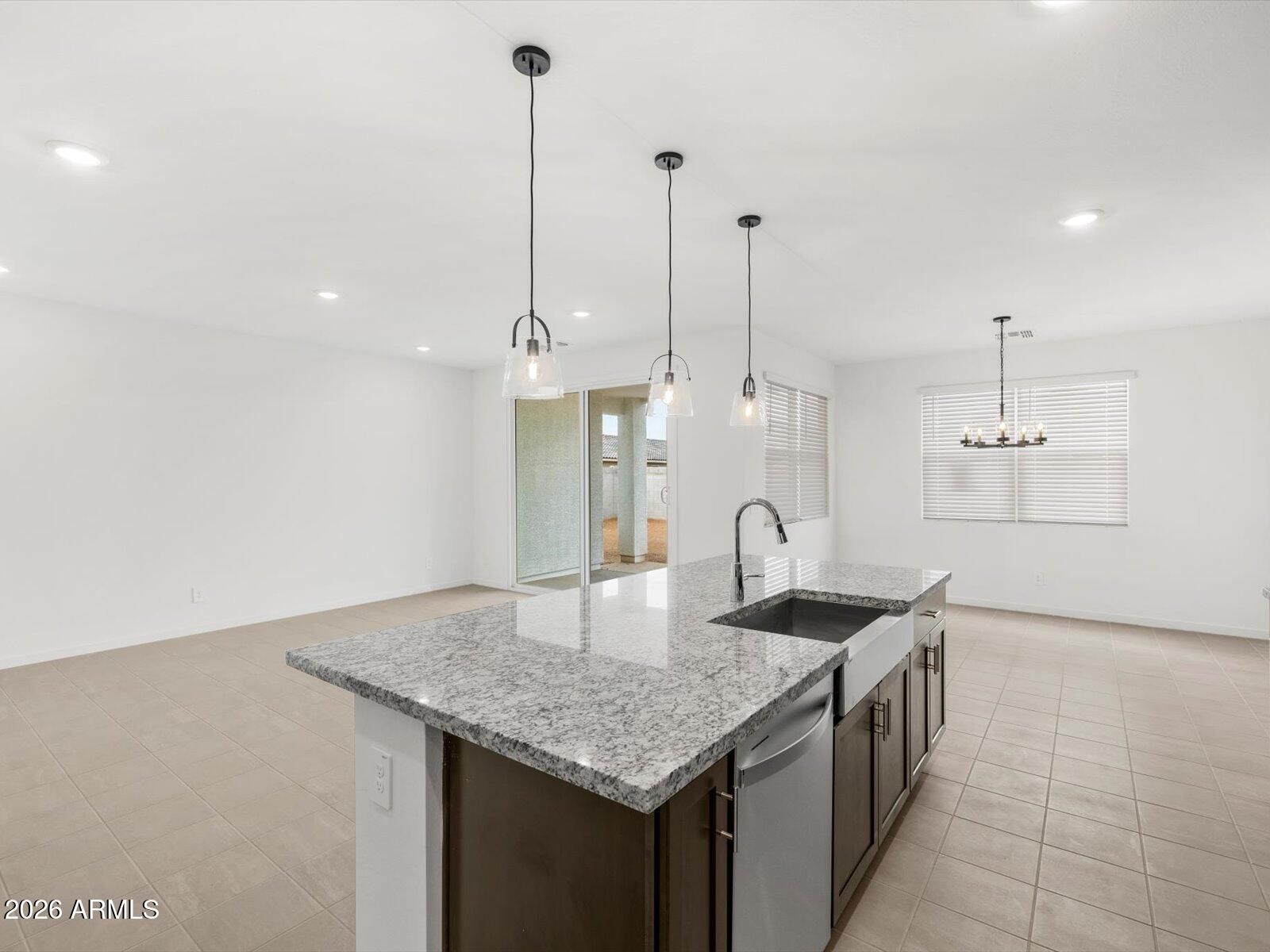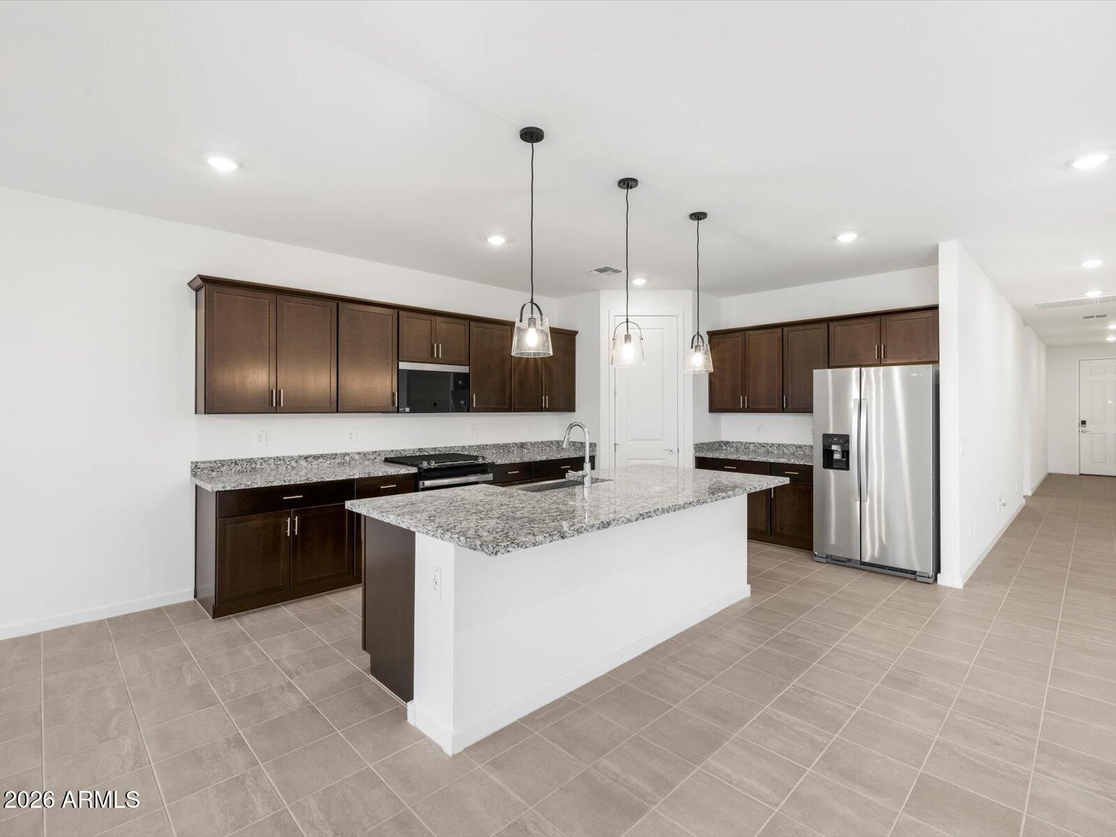 Looking for amenities? This community features numerous amenities resort style pools w/ water park, golf course, fitness center, dog park, ponds, pickleball and tennis courts + much more! This stunning home boasts 4 bedrms, 3 baths plus a large great room and dining space that takes center stage, providing an ideal setting for entertaining friends and family. The open layout encourages a seamless flow between these areas, creating a welcoming atmosphere for gatherings and socializing. Home features umber dark cabinets, granite counters and a generous amount of tile. Our move-in ready homes include a washer, dryer, fridge, and blinds, plus they can be closing-ready in 60 days or less - guaranteed. Each of our homes is built with innovative, energy-efficient features.