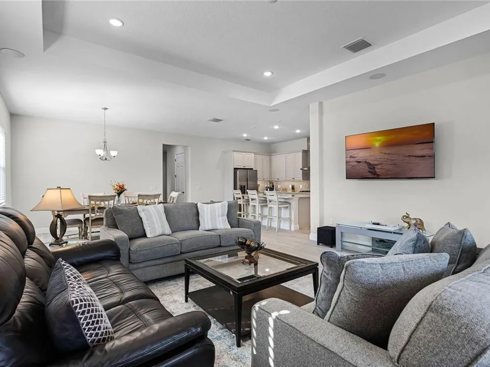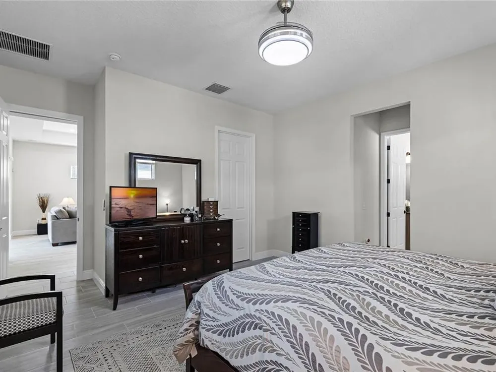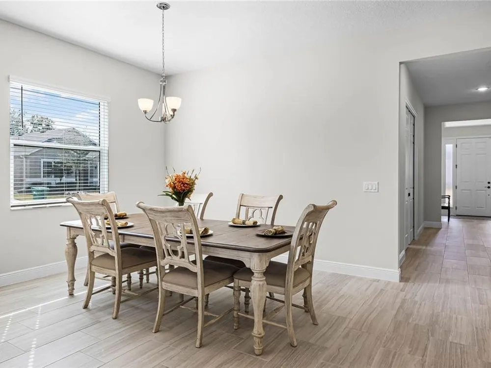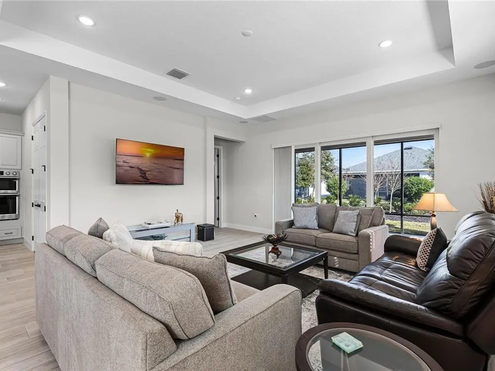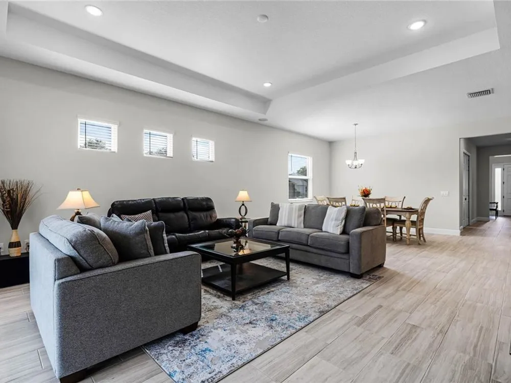 Welcome to 8456 Norwich Way. This meticulously kept modern Bermuda Model, built in 2023 by Medallion Homes, sits on a corner lot within the distinctive 55+ Active Living Community of Lakes of Mount Dora. This appealing home is equipped with everything you want and need on one stylish floor. From an open concept living space to the privacy of an accommodating master bedroom retreat with custom closets, the popular single-story, 3-way split floor plan, provides an ideal manageable living space. Also, the living room is equipped with surround sound and is adorned with a tray ceiling, coupled to a sizeable dining room, allowing for memorable dinners with family and guests. Large impact-resistant windows provide hurricane protection, security, energy efficiency and noise reduction, while drenching the home's interior with natural light. Whether you want to cook and entertain one day in the gourmet kitchen, or simply enjoy your peace and privacy on another, your dream vacation finally becomes your daily lifestyle. Easy access to the screened lanai offers ideal outdoor living space for relaxation, grilling and entertaining. The Lakes of Mount Dora is more than just a community—it's a lifestyle. At the heart of this vibrant oasis lies an 18,000 sq. ft. Clubhouse enhanced with resort style amenities, including a grand ballroom with a caterer's kitchen, a fitness center, and an Olympic-sized pool. There are plenty of opportunities to stay active with tennis and pickleball courts, a baseball field, bocce ball, croquet lawns, corn hole and walking trails. For those with a love for the water, the community features 4.5 miles of interconnecting waterways, a boat dock, and even a gated RV/boat storage yard. With a low HOA fee of only $280 per month, lawn irrigation through a reclaimed water sprinkler system is provided, and high-speed internet and cable are included. In addition to all of this, you have easy access to nearby golf courses, and you are just 15 minutes away from charming Downtown Mount Dora, known for its art festivals, unique shops, and restaurants. And with easy access to Orlando’s attractions and Florida’s beautiful beaches, this location offers the perfect balance of serene living and convenience. Do not miss the opportunity to call this exceptional home your own. Make the move to The Lakes of Mount Dora, where luxury, convenience, and an active lifestyle lies ahead.