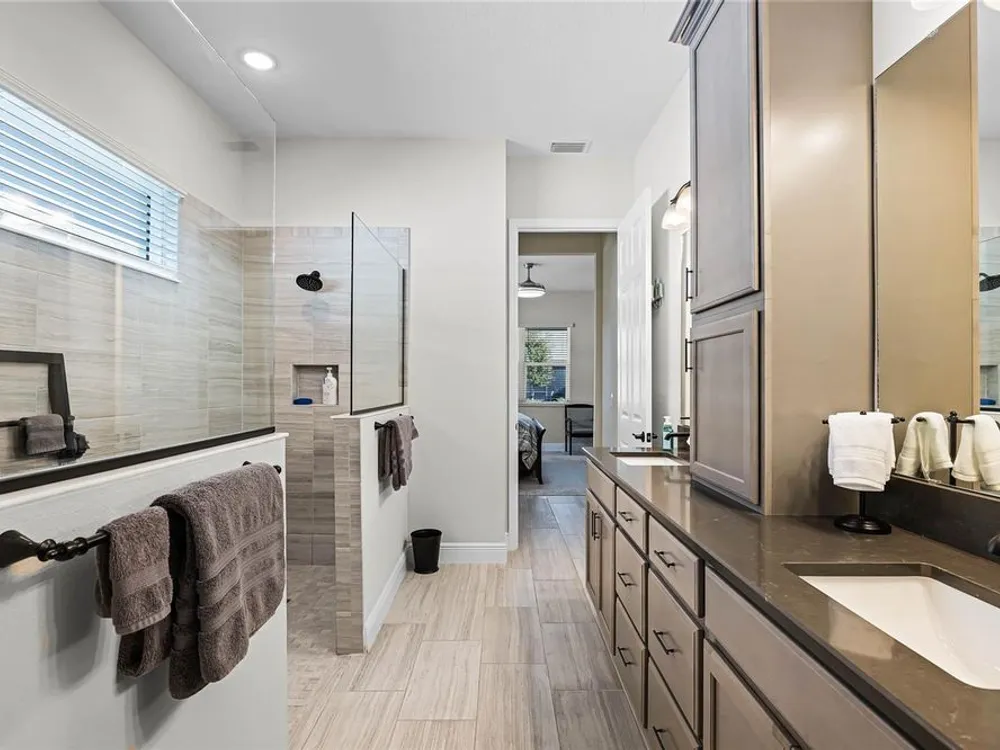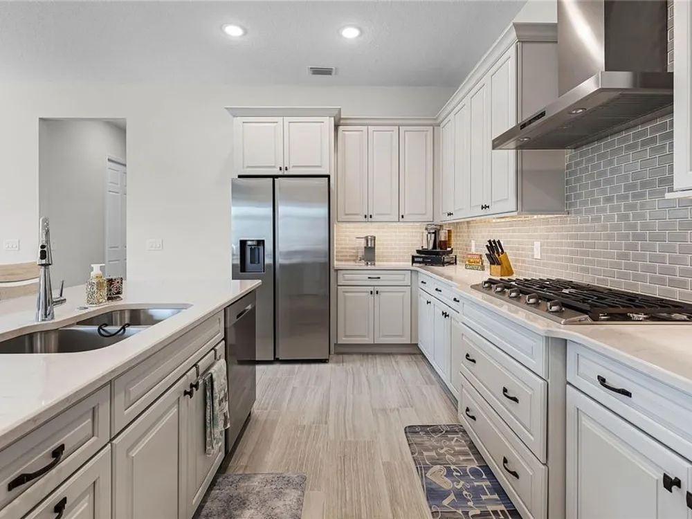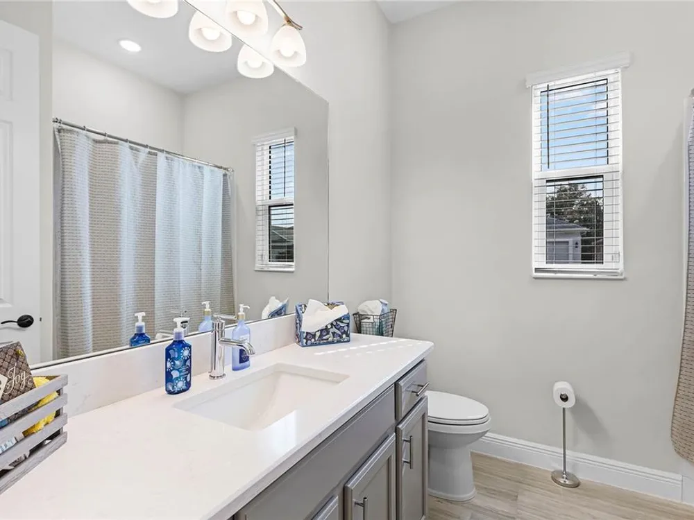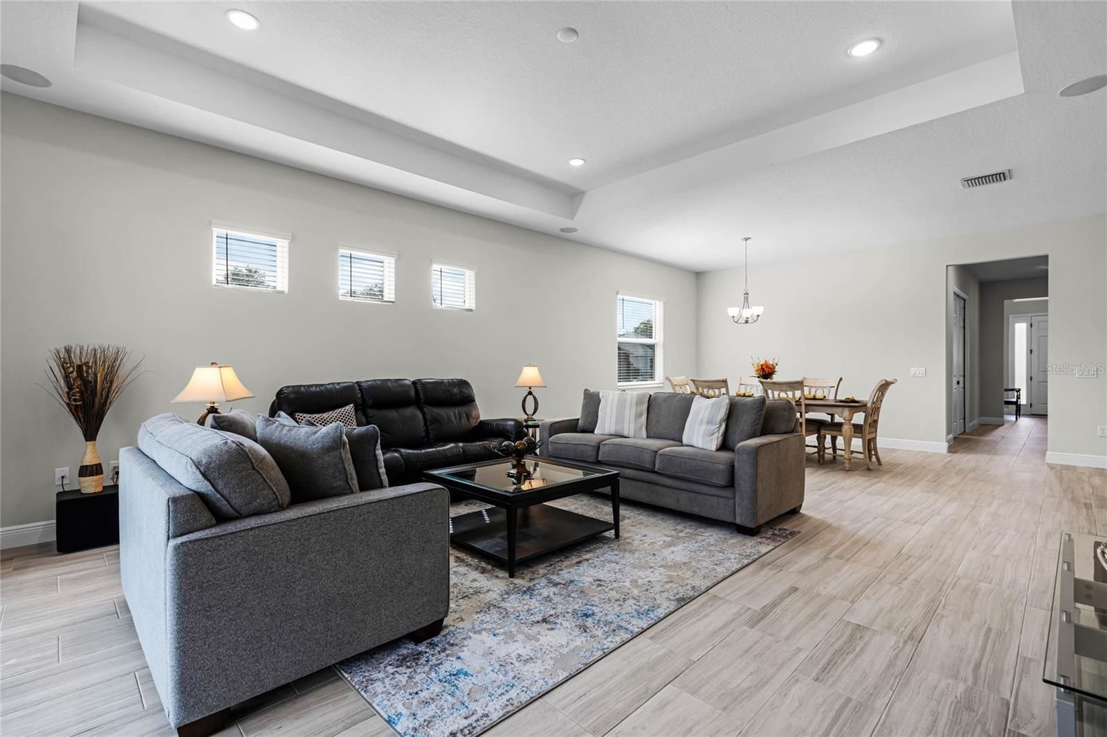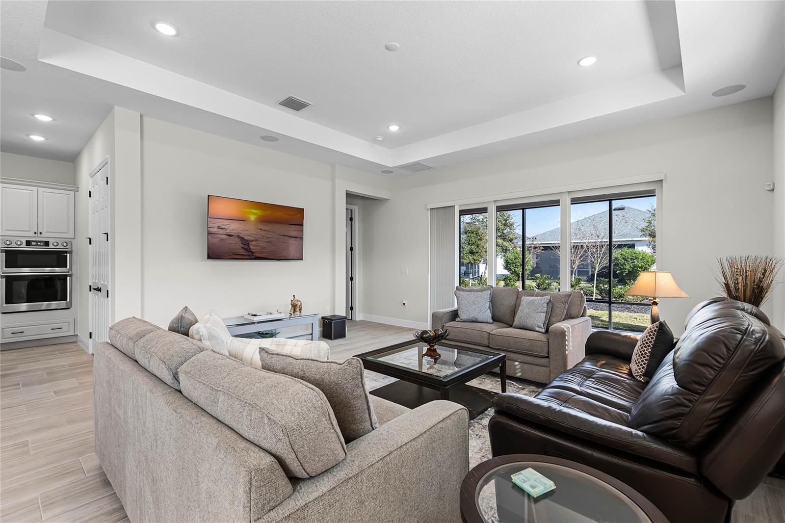 Welcome to 8456 Norwich Way. This meticulously kept modern Bermuda Model, built in 2023 by Medallion Homes, sits on a corner lot within the distinctive 55+ Active Living Community of Lakes of Mount Dora. This appealing home is equipped with everything you want and need on one stylish floor. From an open concept living space to the privacy of an accommodating master bedroom retreat with custom closets, the popular single-story, 3-way split floor plan, provides an ideal manageable living space. Also, the living room is equipped with surround sound and is adorned with a tray ceiling, coupled to a sizeable dining room, allowing for memorable dinners with family and guests. Large impact-resistant windows provide hurricane protection, security, energy efficiency and noise reduction, while drenching the home's interior with natural light. Whether you want to cook and entertain one day in the gourmet kitchen, or simply enjoy your peace and privacy on another, your dream vacation finally becomes your daily lifestyle. Easy access to the screened lanai offers ideal outdoor living space for relaxation, grilling and entertaining. The Lakes of Mount Dora is more than just a community—it's a lifestyle. At the heart of this vibrant oasis lies an 18,000 sq. ft. Clubhouse enhanced with resort style amenities, including a grand ballroom with a caterer's kitchen, a fitness center, and an Olympic-sized pool. There are plenty of opportunities to stay active with tennis and pickleball courts, a baseball field, bocce ball, croquet lawns, corn hole and walking trails. For those with a love for the water, the community features 4.5 miles of interconnecting waterways, a boat dock, and even a gated RV/boat storage yard. With a low HOA fee of only $280 per month, lawn irrigation through a reclaimed water sprinkler system is provided, and high-speed internet and cable are included. In addition to all of this, you have easy access to nearby golf courses, and you are just 15 minutes away from charming Downtown Mount Dora, known for its art festivals, unique shops, and restaurants. And with easy access to Orlando’s attractions and Florida’s beautiful beaches, this location offers the perfect balance of serene living and convenience. Do not miss the opportunity to call this exceptional home your own. Make the move to The Lakes of Mount Dora, where luxury, convenience, and an active lifestyle lies ahead.