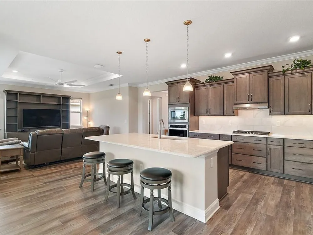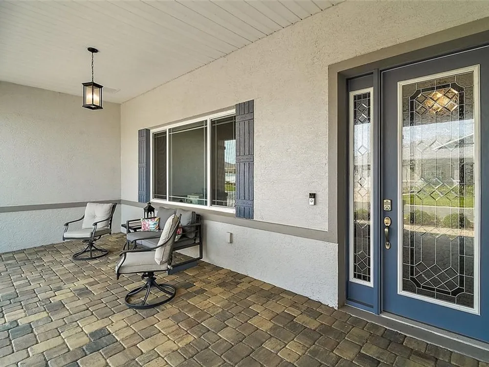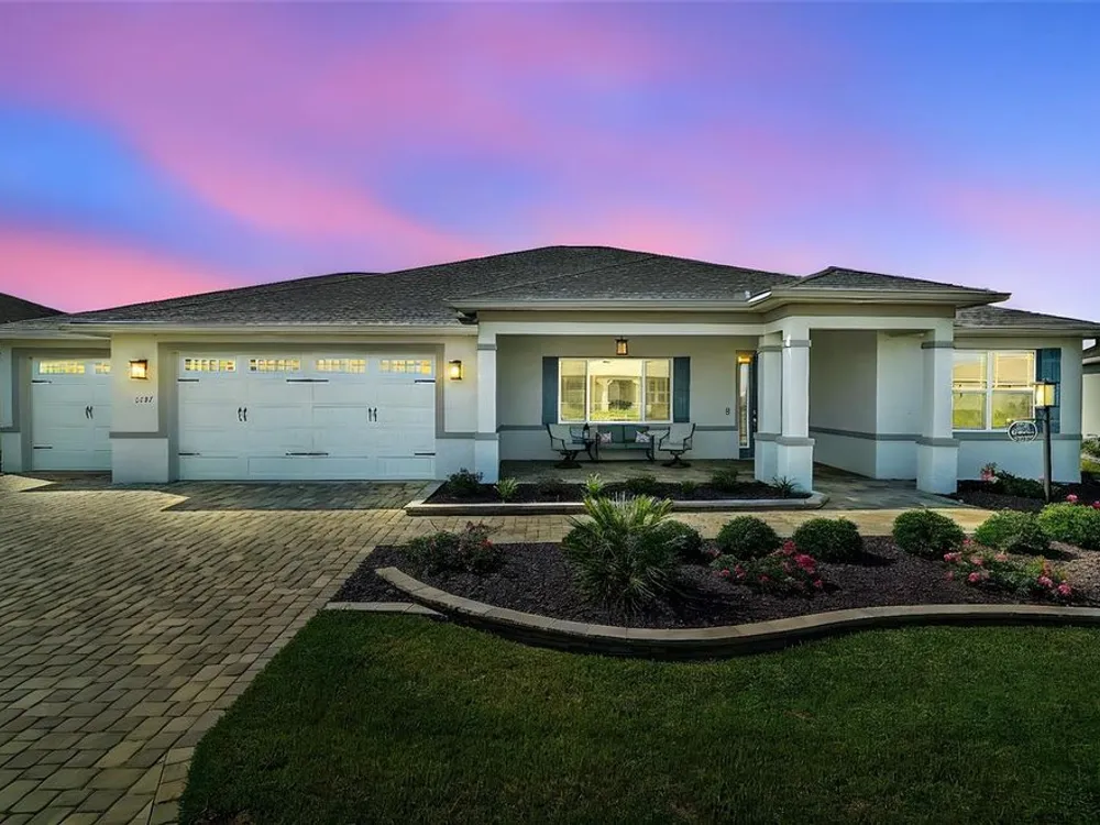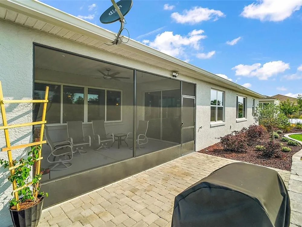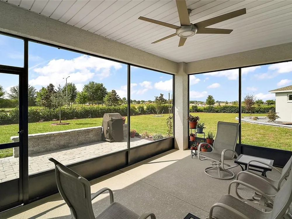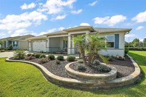 Welcome to this beautiful 2023 Brighton smart home located in the Ashford area of Candler Hills in On Top of the World Communities. This home has everything from a larger lot with no home directly behind it, beautiful landscaping, numerous builder and after market upgrades and privacy with no direct western exposure in the back or the front of the home. A paver driveway and walkway lead to the large covered front porch and wired lighting illuminates the walkway during the evening. As you enter the home you will notice a large flex room with barn doors to the left while a second bedroom and bath are to the right. The gourmet kitchen is equipped with high end finishes, staggered cabinetry, neutral quartz counters with bullnose edges, pullout drawers in the cabinet pantry, stainless steel appliances, a gas cooktop and a separate dining area. In the back of the home you will enjoy an oversized lot with privacy and beautiful views of palm trees that are maintained by the community. A paver patio with wall has been added outside of the screened-in lanai and provides a grilling and entertainment area. The great room is open and airy and has tray ceilings, crown molding, recessed lighting, and a built-in entertainment stand with a television that will remain in the home for your enjoyment. The flooring is neutral luxury vinyl throughout. No carpeting in this home! The fans inside the home are DC fans that use the latest technology and ensure greater efficiency and quiet operation. The majority of the window shades are motorized and easily open and close with a remote control and there is a blackout shade in the primary bedroom. The primary bedroom extends to the ensuite bath with a tiled walk-in shower and vanity with double sinks. The primary closet is oversized and has an entry from the ensuite bath and also from the laundry room so laundry is a breeze. The laundry room has an added utility sink. A whole house water softener and gutters have also been added to this beautiful home. The three car garage is oversized with extra space for storage, vehicle, exercise equipment, or you can create a bonus area of your choice. This home is move-in ready. Unpack your boxes and start enjoying the Florida lifestyle! This community features beautiful amenities with state-of-the-art fitness centers, outdoor pools with cabanas, indoor pool, three golf courses, pickleball courts, tennis courts, Veterans Park, miles of multimodal paths, dog parks, large private R/C flying field, softball field and so much more! Convenient golf cart access to parks, grocery stores, pharmacies, shopping, entertainment and restaurants!