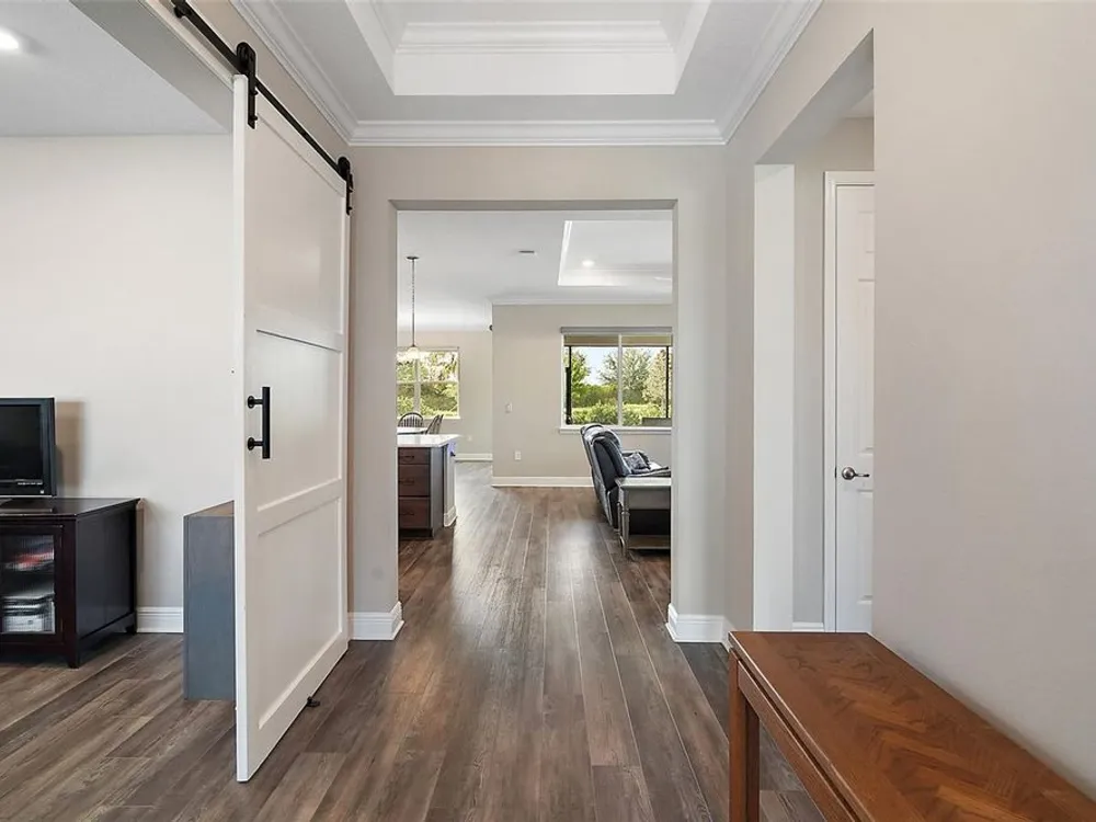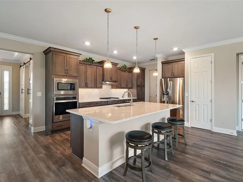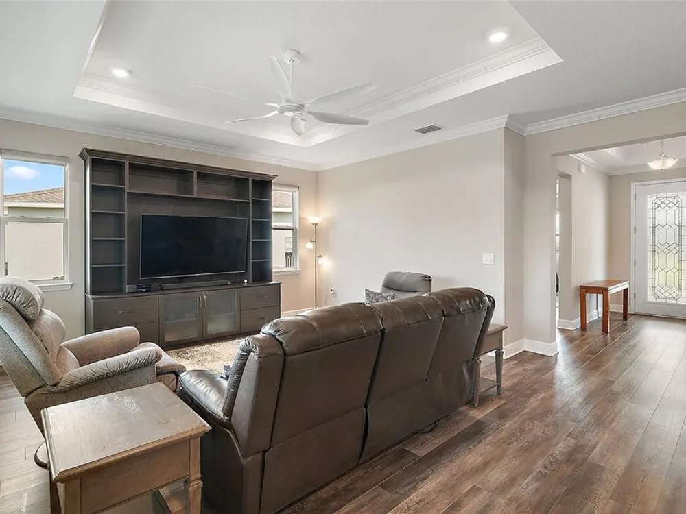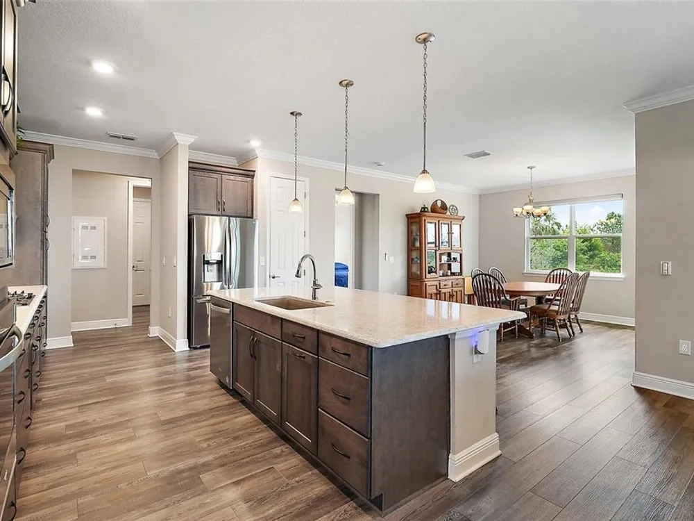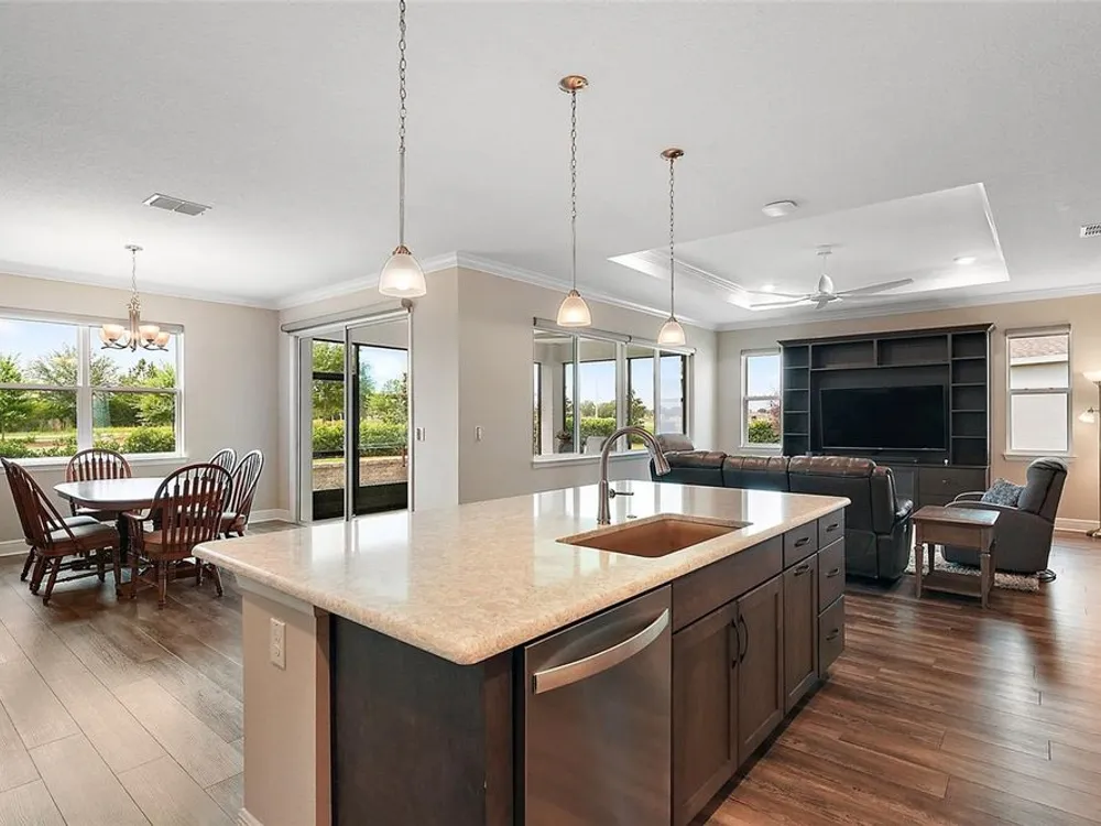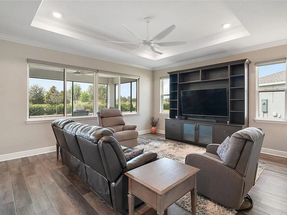 Welcome to this beautiful 2023 Brighton smart home located in the Ashford area of Candler Hills in On Top of the World Communities. This home has everything from a larger lot with no home directly behind it, beautiful landscaping, numerous builder and after market upgrades and privacy with no direct western exposure in the back or the front of the home. A paver driveway and walkway lead to the large covered front porch and wired lighting illuminates the walkway during the evening. As you enter the home you will notice a large flex room with barn doors to the left while a second bedroom and bath are to the right. The gourmet kitchen is equipped with high end finishes, staggered cabinetry, neutral quartz counters with bullnose edges, pullout drawers in the cabinet pantry, stainless steel appliances, a gas cooktop and a separate dining area. In the back of the home you will enjoy an oversized lot with privacy and beautiful views of palm trees that are maintained by the community. A paver patio with wall has been added outside of the screened-in lanai and provides a grilling and entertainment area. The great room is open and airy and has tray ceilings, crown molding, recessed lighting, and a built-in entertainment stand with a television that will remain in the home for your enjoyment. The flooring is neutral luxury vinyl throughout. No carpeting in this home! The fans inside the home are DC fans that use the latest technology and ensure greater efficiency and quiet operation. The majority of the window shades are motorized and easily open and close with a remote control and there is a blackout shade in the primary bedroom. The primary bedroom extends to the ensuite bath with a tiled walk-in shower and vanity with double sinks. The primary closet is oversized and has an entry from the ensuite bath and also from the laundry room so laundry is a breeze. The laundry room has an added utility sink. A whole house water softener and gutters have also been added to this beautiful home. The three car garage is oversized with extra space for storage, vehicle, exercise equipment, or you can create a bonus area of your choice. This home is move-in ready. Unpack your boxes and start enjoying the Florida lifestyle! This community features beautiful amenities with state-of-the-art fitness centers, outdoor pools with cabanas, indoor pool, three golf courses, pickleball courts, tennis courts, Veterans Park, miles of multimodal paths, dog parks, large private R/C flying field, softball field and so much more! Convenient golf cart access to parks, grocery stores, pharmacies, shopping, entertainment and restaurants!