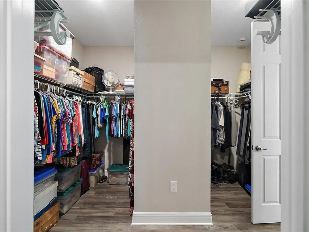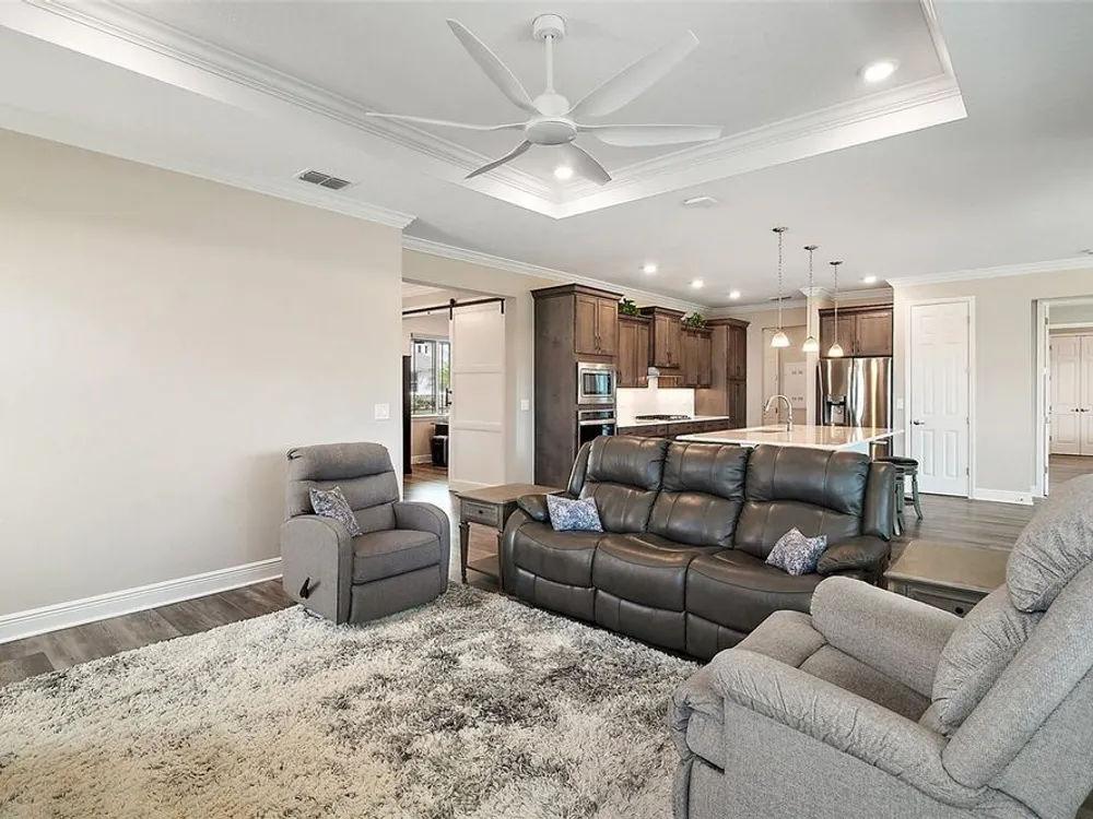 - Built-in Features, Ceiling Fan(s), Crown Molding, Eat-in Kitchen, High Ceilings, Living/Dining Room, Open Floorplan, Other, Main Level Primary, Smart Home, Solid Surface Counters, Solid-Wood Cabinets, Thermostat, Tray Ceiling(s), Walk-In Closet(s), Window Treatments