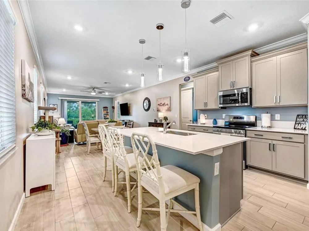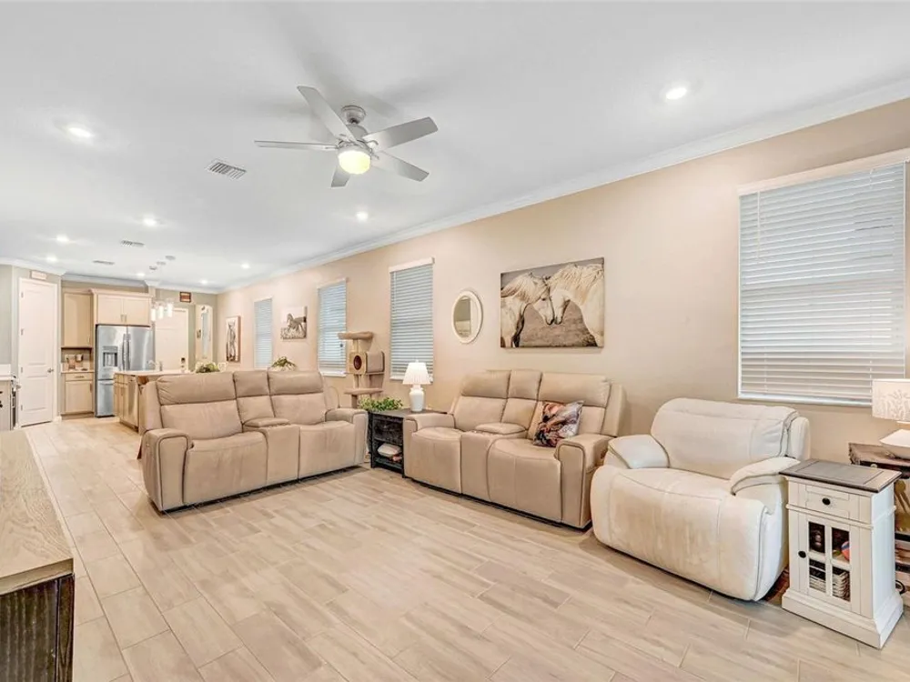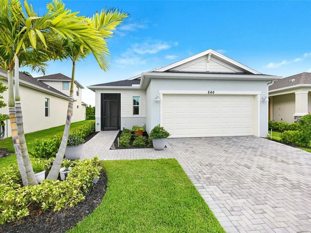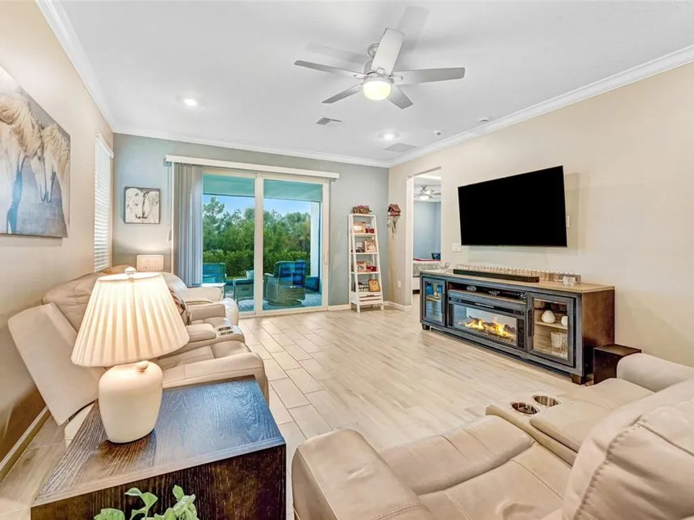 Immaculate 2023 Concrete Block Home | Cul-de-Sac | Sunset Views | Luxury Resort Style Amenities | Move in ready before the end of November | 2 Bedrooms | 2.5 Baths | Versatile Den. The flexible den is ideal for a home office, creative space, or guest retreat. Inside, an open-concept layout is bathed in natural light and enhanced by upscale finishes throughout: Impact-resistant windows | Upgraded tile flooring throughout | Crown molding and ceiling fans in every room | Kitchen has beautiful quartz countertops and sleek cabinetry | Seamless flow into spacious living and dining areas—perfect for entertaining | Laundry room with built-in cabinetry (washer and dryer included) | Quartz countertops in all bathrooms. Step outside to a screened-in lanai and savor golden-hour views that make every evening feel like a getaway. A paver driveway, manicured landscaping, and charming screened front porch complete the picture of polished curb appeal. Resort Amenities Await Enjoy a vibrant lifestyle with access to a luxurious clubhouse, sparkling pool, tennis and pickleball courts, dog park, and more-all designed to foster connection, wellness, and recreation. This rare opportunity combines privacy, low-maintenance luxury, and top-tier amenities-all with a newly adjusted listing price that reflects exceptional value. Located close to St. Johns Heritage Parkway for easy access to Melbourne, Melbourne Airport and within 30 minutes to the beach. Located within minutes to a Brand-New Publix.