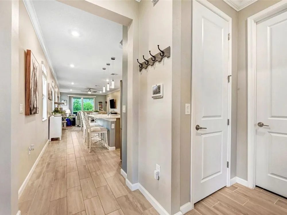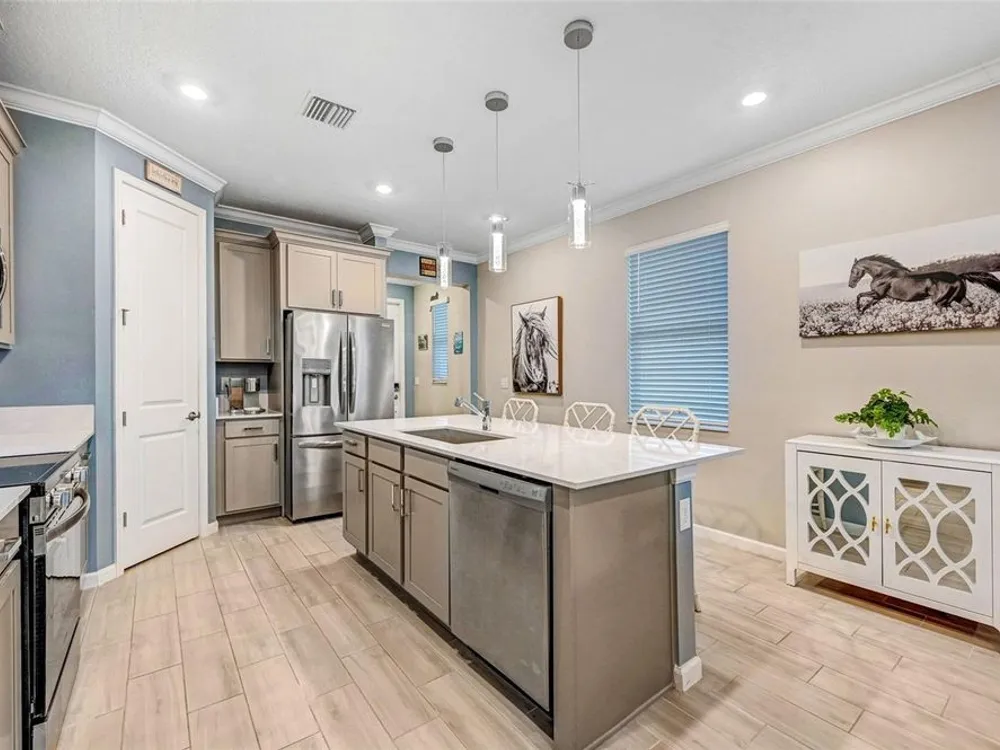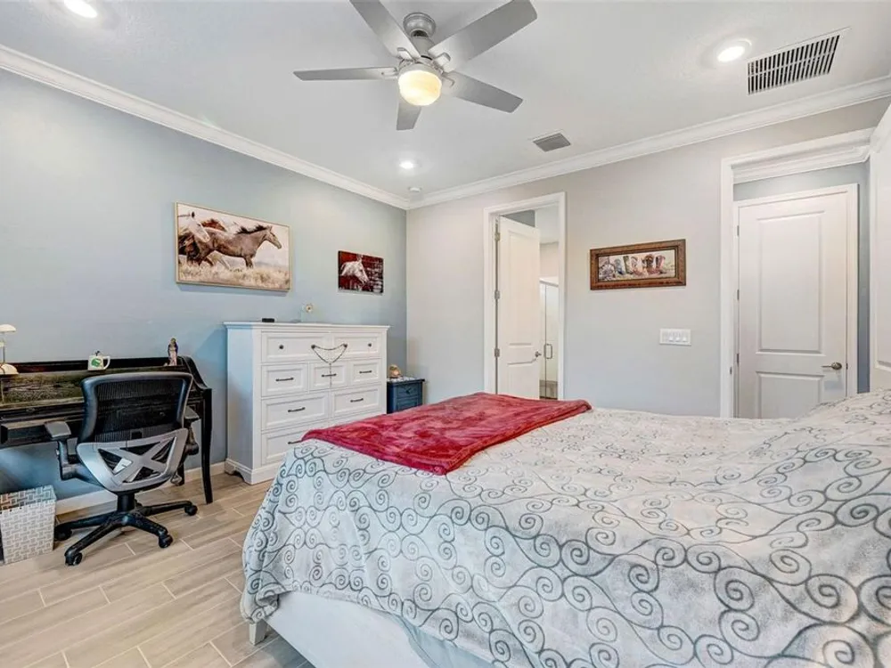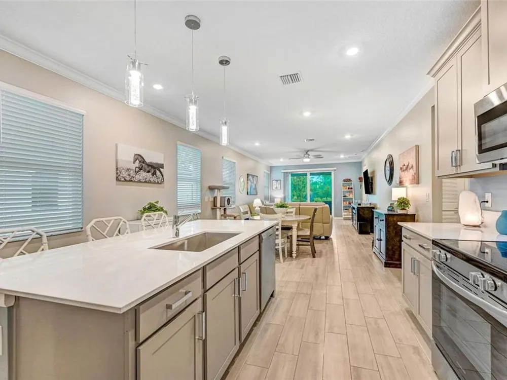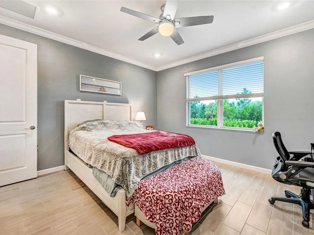 Immaculate 2023 Concrete Block Home | Cul-de-Sac | Sunset Views | Luxury Resort Style Amenities | Move in ready before the end of November | 2 Bedrooms | 2.5 Baths | Versatile Den. The flexible den is ideal for a home office, creative space, or guest retreat. Inside, an open-concept layout is bathed in natural light and enhanced by upscale finishes throughout: Impact-resistant windows | Upgraded tile flooring throughout | Crown molding and ceiling fans in every room | Kitchen has beautiful quartz countertops and sleek cabinetry | Seamless flow into spacious living and dining areas—perfect for entertaining | Laundry room with built-in cabinetry (washer and dryer included) | Quartz countertops in all bathrooms. Step outside to a screened-in lanai and savor golden-hour views that make every evening feel like a getaway. A paver driveway, manicured landscaping, and charming screened front porch complete the picture of polished curb appeal. Resort Amenities Await Enjoy a vibrant lifestyle with access to a luxurious clubhouse, sparkling pool, tennis and pickleball courts, dog park, and more-all designed to foster connection, wellness, and recreation. This rare opportunity combines privacy, low-maintenance luxury, and top-tier amenities-all with a newly adjusted listing price that reflects exceptional value. Located close to St. Johns Heritage Parkway for easy access to Melbourne, Melbourne Airport and within 30 minutes to the beach. Located within minutes to a Brand-New Publix.