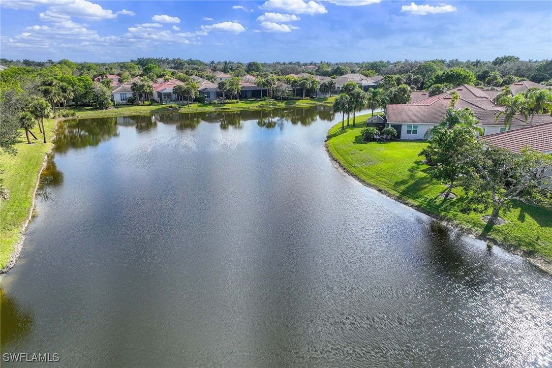 Available now in the Bent Creek neighborhood at stunning Fiddler's Creek, this lovely attached villa has it all. The expanded lanai offers wonderful lake views with lots of privacy and just steps to the neighborhood pool. A spacious two-car garage and cul-de-sac location are ideal for quiet, comfortable living. The charming entry foyer leads past a third bedroom, office or den and into the open and bright main living area. Go out to the oversized lanai and enjoy the vegetation, privacy and sparkling lake views. New appliances, countertops, and convenient wine cooler show off the openness of the eat-in kitchen and breakfast bar. The living/dining area with vaulted ceiling and generous windows provide a cozy atmosphere for entertainment or quiet living. Complete with a new roof and front driveway, newer water heater and air conditioning unit, this home is ready for occupancy and exciting Florida living. The laundry room with new appliances and a functional sink is a necessary delight, as is the well-kept two-car garage with existing storage and room for more. This ideal location is close to the main gate and the Collier Boulevard entrance to Fiddler's Creek, which provides quick access to shopping and all exciting activities of the Naples area. Considered one of the finest communities in Collier County, Fiddler's Creek offers a wide assortment of amenities and optional private club memberships. Close to fantastic Marco Island and the panache of Old Naples, Fiddlers Creek leaves nothing to the imagination. Start your life in Florida with this charming home at Fiddler's Creek.