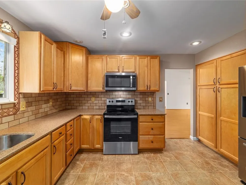 - Ceiling Fan(s), Living/Dining Room, Split Bedrooms, Stone Counters
