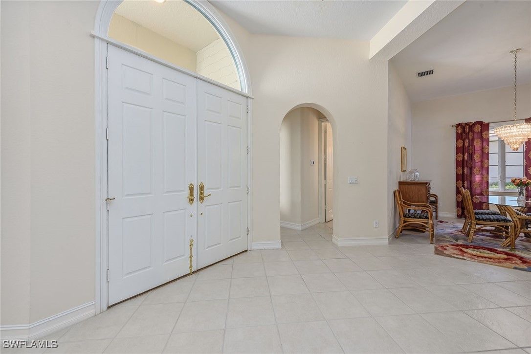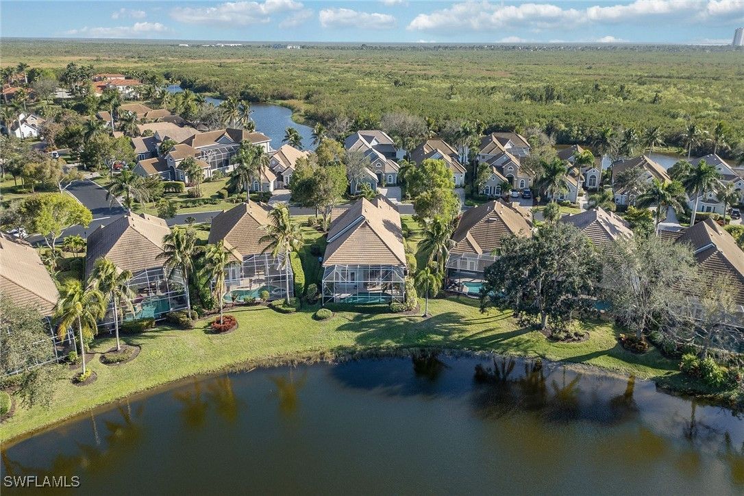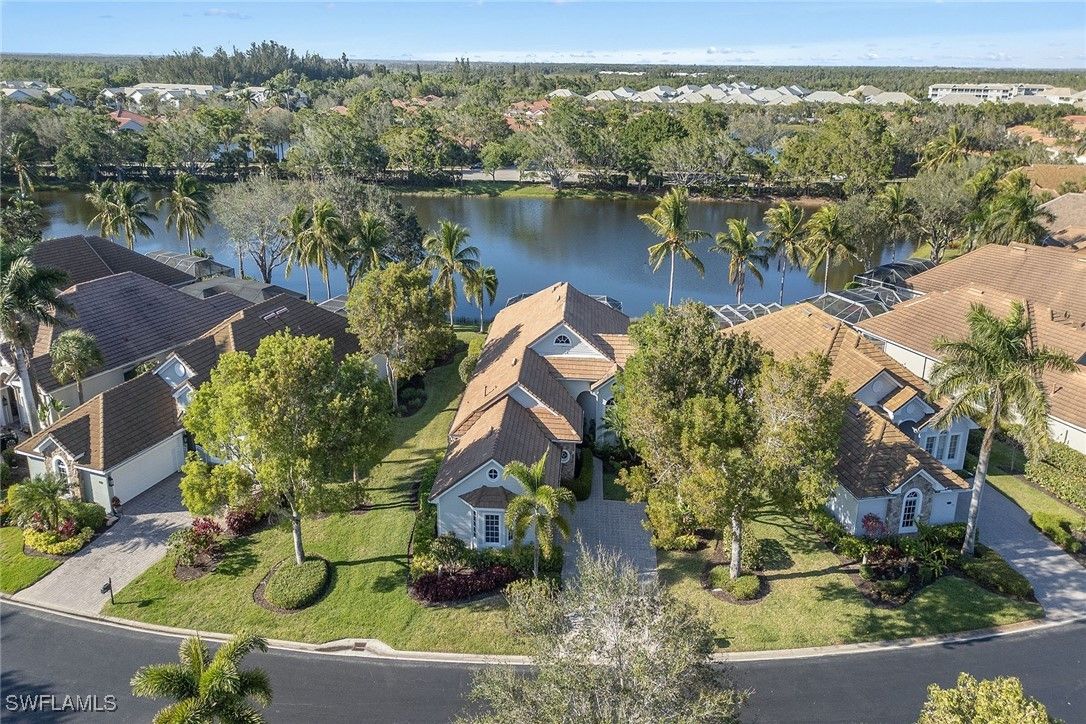 On a lakefront homesite in the desirable Mallard’s Landing neighborhood of Fiddler’s Creek, this sought-after Driftwood floor plan offers exceptional privacy, captivating wide lake views, and an inviting blend of comfort and sophistication. A brick-paver driveway leads to this beautifully maintained and spacious three-bedroom, three-full bath residence designed for relaxed living and effortless entertaining. Inside, diagonal tile flooring, volume ceilings, and expansive windows fill the home with natural light and enhance its open, airy feel. The popular layout includes a formal living and dining area, an open great room and a well-appointed kitchen featuring custom Italian cabinetry, granite countertops, GE Profile stainless steel appliances, a new refrigerator with icemaker, natural gas cooking and a pantry. A breakfast area and counter seating provide ideal spaces for casual dining. The owner’s suite is a private retreat showcasing tray ceilings, arched windows and French doors opening to the pool area. The luxurious en-suite bath features dual vanities, a makeup counter, a soaking tub, private water closet and a glass-enclosed walk-in shower. One guest bedroom offers an en-suite bath with a shower-tub combination, while the second guest bedroom enjoys access to a connecting bath with a walk-in shower, ensuring comfort and flexibility for family and visitors. The laundry room is equipped with a full-size washer and dryer, cabinetry and utility sink. Go outside to the expansive screened lanai, where tranquil lake views set the stage for outdoor living at its finest. Enjoy your morning coffee or host gatherings beside the sparkling pool, which features a new motor and filtration system. A spacious covered area offers shade and comfort for lounging or dining alfresco. Additional updates include a new air-conditioning system with thermostat, air purifier and a new water heater. Residents of this award-winning community enjoy an unparalleled lifestyle with a luxurious 54,000-square-foot clubhouse offering casual and fine dining, a resort-style multi-pool complex with waterfalls and whirlpool, spa services, a state-of-the-art fitness center with trainers and classes, six Har-Tru tennis courts, 10 new pickleball courts, bocce, sauna, steam room and a full calendar of social events. Optional memberships are available for the newly renovated golf course and new clubhouse as well as the Tarpon Club with beach and marina privileges. In a gated community surrounded by lush landscaping and scenic sidewalks ideal for walking, bicycling and jogging, this home is convenient to Naples, Marco Island, restaurants, boutique shopping, parks, the executive airport and pristine Gulf beaches, an ideal setting for your dream Florida life. Just outside the gates, you will find a convenient Publix, hair salon, nail salon, urgent care and health food store, all adding to the easy lifestyle. CDD bond paid in full.