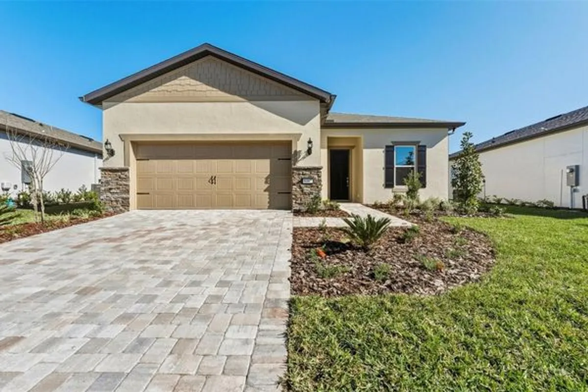 One or more photo(s) has been virtually staged. Move in Ready Available NOW!! Enjoy all the benefits of a new construction home in the serene setting of Ocala, FL's horse country, with an age-restricted, fully amenitized lifestyle at Del Webb Stone Creek. This is the active adult community you've been looking for, with amenities that include an 18-hole championship golf course, a full restaurant and bar, indoor and outdoor pools, sports courts, and so much more. Our sprawling amenities, clubs, and classes will fill your retirement days with activities to make new friends and memories. This stunning Mainstay floor plan is the home you’ve been looking for. Enjoy an open-concept home design with all the upgrades you’ll love. The gourmet kitchen features an oversized walk-in pantry, stylish cabinets and 3cm quartz countertops, 3”x12” tiled backsplash, and KitchenAid stainless steel appliances including a built-in oven and microwave, stovetop with a range hood, and dishwasher. The luxury Owner’s suite features a spacious walk-in closet and the Owner’s bath have dual sinks, walk-in shower with niche, a linen closet, and a private commode. There’s also a versatile enclosed flex room, a secondary bedroom and full bath, a convenient laundry room, a storage room, a covered lanai with extended screen enclosure and 2 car garage with 4’extension. There is luxury vinyl plank flooring in the main living areas and flex room, 22”x22” tile flooring in the baths and laundry room and stain resistant carpet in the bedrooms. Additional features and upgrades include LED downlights in the gathering room, upgraded lighting and door hardware, tray ceiling in the owner’s suite, gathering room and flex room, pocket sliding glass door at gathering room and a Smart Home technology package with a video doorbell. Enjoy peace of mind with Pulte’s transferable, 10-year Limited Structural Warranty that covers materials and workmanship in the 1st year, workability of plumbing, electrical, HVAC, and other mechanical systems through the 2nd year, various types of water infiltration and internal leaks through the 5th year, and the structural integrity of the home through the 10th year. Plus, we’re currently offering limited-time incentives and below-market rates!