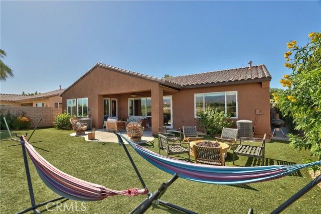 PRICE DROP!!!!!!!!!! 50K BETTER HURRY!!!!!!!!!!!WELCOME TO YOUR NEW HOME IN THE UPSCALE PRIVATE GATED COMMUNITY OF TERRA LAGO. THIS IS A GREAT OPPORTUNITY FOR YOU TO OWN A TURN KEY HOME WHERE ATTENTION TO DETAIL IS EVIDENT. BEAUTIFUL AND SPACIOUS COURTYARD LEADING UP TO YOUR FRONTDOOR.THE HOME IS LOCATED ON THE GOLF COURSE WITH AWESOME VIEWS OF THE COURSE AND MOUNTAINS.THIS HOME BOASTS 4 BEDROOMS, 3 FULL BATHS IN 2472 SQ FEET OF PURE LUXURY. THE KITCHEN HAS CUSTOM CABINETS, GRANITE COUNTER TOPS AND A HUGE CENTER ISLAND BAR.THE BEAUTIFUL LARGE PRIMARY BEDROOM HAS HUGE WALK-IN CLOSET THAT IS READY FOR YOUR BELONGINGS, AWESOME VIEWS OF THE MOUNTAINS AND FRENCH DOORS GOING OUT TO THE PATIO FOR YOUR MORNING COFFEE. THERE IS A DUAL UNIT AC WITH 3 ZONES AND A BUILT IN SURGE PROTECTOR. THE HOME COMES WITH YOUR OWN CUSTOM HIGH-END HOME THEATER ROOM ANCHORS THE SPACIOUS SINGLE LEVEL FLOOR PLAN. THERE IS AN ATTACHED 3 CAR TANDEM GARAGE WITH IT'S OWN TESLA CHARGING STATION. THE BACK YARD HAS A COVERED PATIO LOOKING OUT OVER THE GOLF COURSE WITH MOUNTAIN VIEWS WHILE YOU ENJOY YOUR NIGHT IN FRONT OF THE FIRE PIT. THIS HOME IS PRICED TO SELL FAST SO DON'T HESITATE OR YOU WILL MISS OUT!!!!!!!! LOW STR FEES AND NO RESTRICTIONS. DUES INCLUDE GUARDED GATES, 2 RESIDENT GATES, HIGH SPEED INTERNET AND DIRECT TV. YOU ALSO ENJOY 24 HOUR GATED ACCESS,LAKE ACCESS,CLUBHOUSE AND POOL ACCESS. ELECTRICTY IS THRU IID FLAT RATE NON-TIERED RATE. EFFICIENT LANDSCAPING WITH ARTIFICIAL TURF IN BACK YARD. PROPERTY IS LOCATED 30 MINUTES FROM JOSHUA TREE NATIONAL PARK.