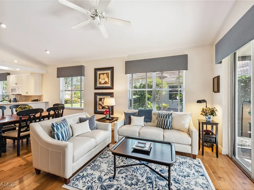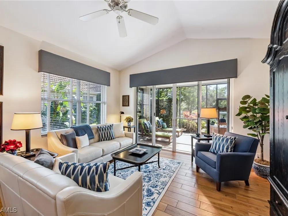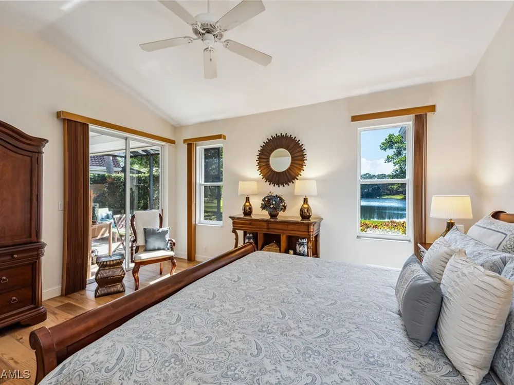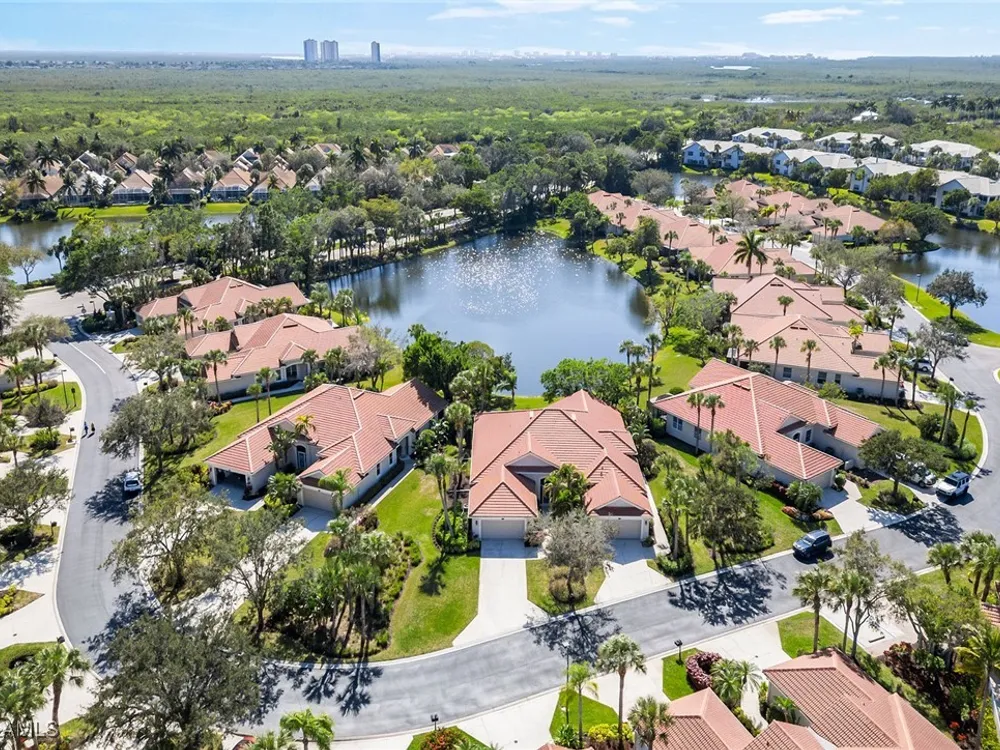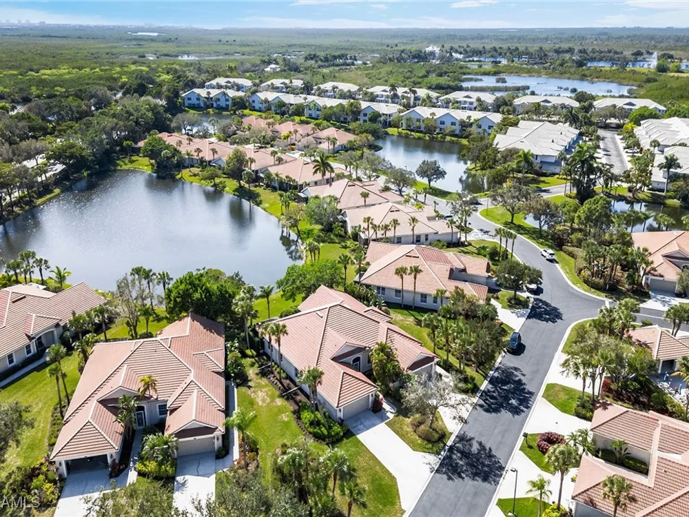 Situated on the largest homesite in the popular and picturesque Bent Creek village of Fiddler’s Creek, this turnkey-furnished and beautifully remodeled residence offers the perfect combination of luxury, comfort, and convenience. Featuring three bedrooms, two full baths, and a two-car garage, the home is perfectly positioned to take advantage of desirable southwest exposure and captivating lake views. The exterior is freshly painted and enhanced by upgraded landscaping, an extended driveway, and a new roof and gutters installed in 2019. Inside, the home is designed to impress with upscale furnishings, vaulted ceilings, custom window coverings, and elegant wood-look tile flooring throughout. The gourmet kitchen is a showpiece, boasting white maple cabinetry, soft-close drawers, quartzite countertops, and an open layout ideal for both casual dining and entertaining. The owner’s suite serves as a private retreat with two walk-in closets and a spa-inspired bath featuring a frameless glass shower and a deep soaking tub. The spacious screened lanai provides a serene setting to relax and enjoy the gorgeous southwest water views, with both covered and open areas ideal for year-round enjoyment and entertaining. Additional upgrades include a new LG washer and dryer, electric roll-down storm shutters on the lanai and entry, upgraded lighting throughout, a new air conditioning system (2018), hot water heater (2020), utility sink in the garage, water softener, and phantom screens. This villa offers exceptional privacy with no neighbors above or below and no stairs, and is conveniently located across from the village pool and close to the community’s exceptional amenities. Living in Fiddler’s Creek means access to world-class facilities including resort-style pools with waterfalls and slides, a spectacular 54,000-square-foot Clubhouse, a state-of-the-art fitness center with classes and personal trainers, full-service spa, bocce, and an active tennis and pickleball program featuring six Har-Tru courts and ten new pickleball courts. A vibrant calendar of social events, classes, and clubs ensures there is always something to enjoy. Optional memberships include the exclusive Tarpon Club, offering beach and marina access, as well as The Creek Course, providing immediate access to the brand-new golf clubhouse and the newly renovated, award-winning championship course. Miles of sidewalks offer plentiful options for running, bicycling and walking. The location is unbeatable-just minutes from Old Naples and Marco Island, with fine dining, boutique shopping, pristine beaches, executive airport and beautiful parks all nearby. Just outside the gates, residents enjoy a new shopping center featuring Publix, salon services, a health café, urgent care, and more-ensuring an easy, effortless, and luxurious lifestyle.
