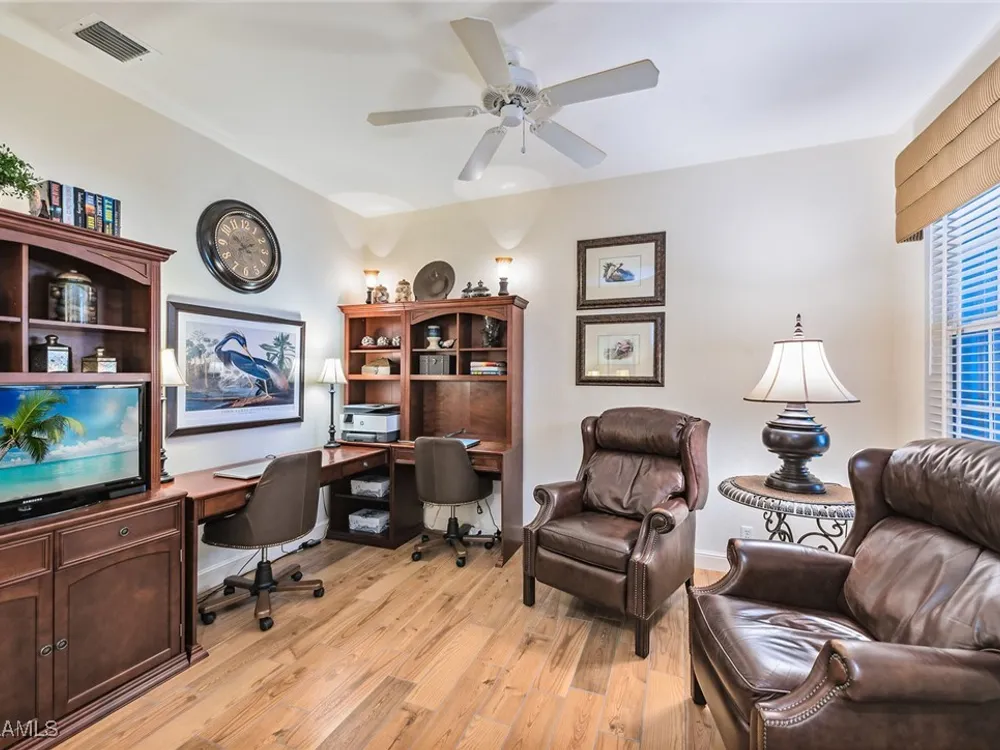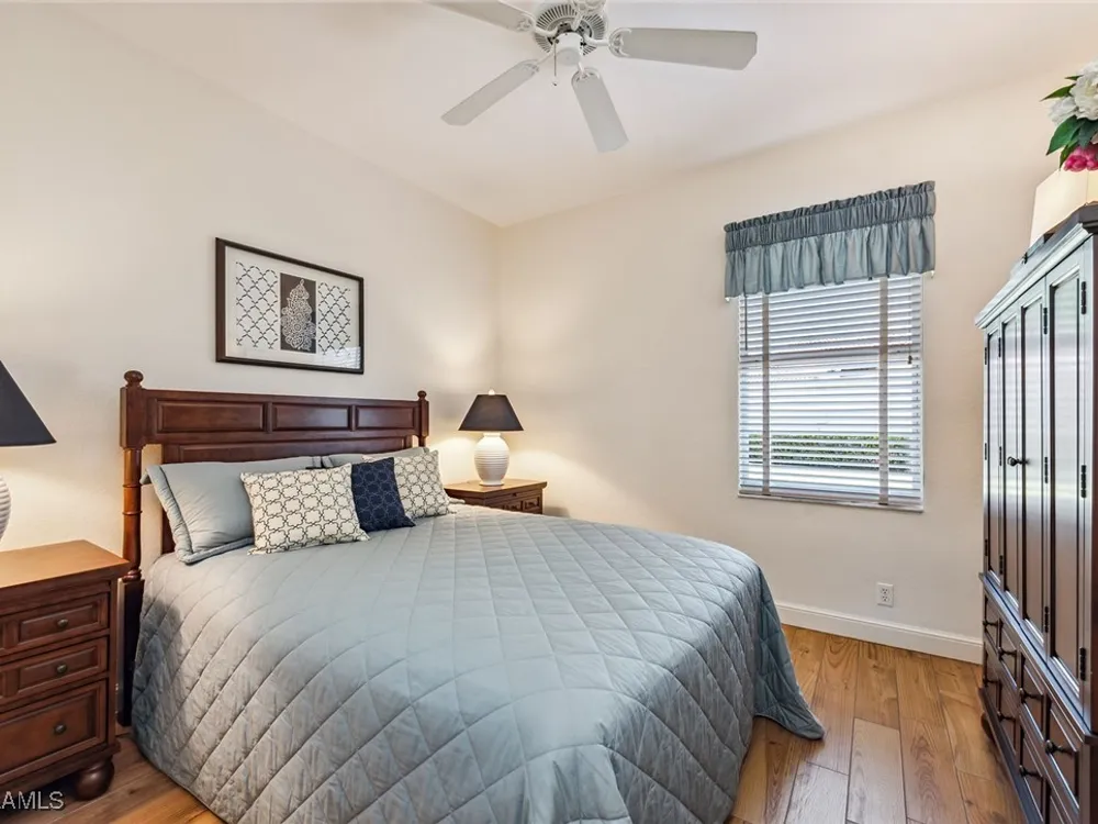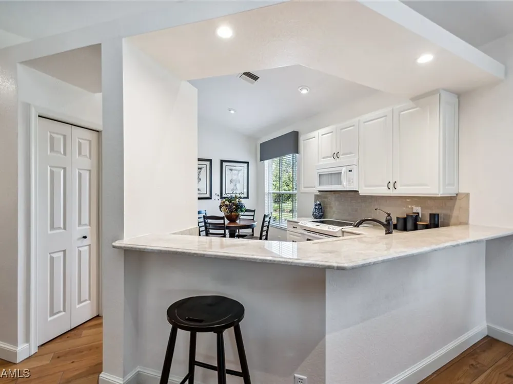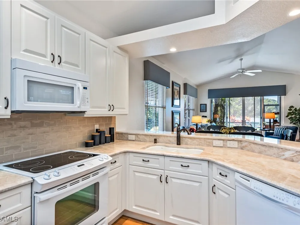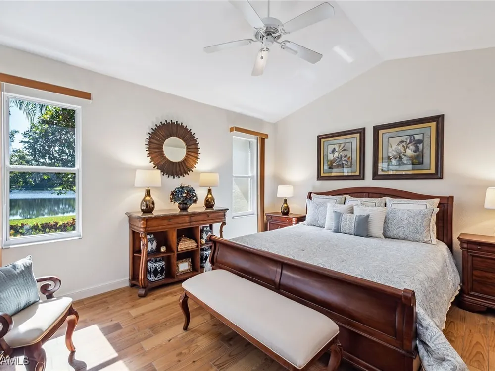 Situated on the largest homesite in the popular and picturesque Bent Creek village of Fiddler’s Creek, this turnkey-furnished and beautifully remodeled residence offers the perfect combination of luxury, comfort, and convenience. Featuring three bedrooms, two full baths, and a two-car garage, the home is perfectly positioned to take advantage of desirable southwest exposure and captivating lake views. The exterior is freshly painted and enhanced by upgraded landscaping, an extended driveway, and a new roof and gutters installed in 2019. Inside, the home is designed to impress with upscale furnishings, vaulted ceilings, custom window coverings, and elegant wood-look tile flooring throughout. The gourmet kitchen is a showpiece, boasting white maple cabinetry, soft-close drawers, quartzite countertops, and an open layout ideal for both casual dining and entertaining. The owner’s suite serves as a private retreat with two walk-in closets and a spa-inspired bath featuring a frameless glass shower and a deep soaking tub. The spacious screened lanai provides a serene setting to relax and enjoy the gorgeous southwest water views, with both covered and open areas ideal for year-round enjoyment and entertaining. Additional upgrades include a new LG washer and dryer, electric roll-down storm shutters on the lanai and entry, upgraded lighting throughout, a new air conditioning system (2018), hot water heater (2020), utility sink in the garage, water softener, and phantom screens. This villa offers exceptional privacy with no neighbors above or below and no stairs, and is conveniently located across from the village pool and close to the community’s exceptional amenities. Living in Fiddler’s Creek means access to world-class facilities including resort-style pools with waterfalls and slides, a spectacular 54,000-square-foot Clubhouse, a state-of-the-art fitness center with classes and personal trainers, full-service spa, bocce, and an active tennis and pickleball program featuring six Har-Tru courts and ten new pickleball courts. A vibrant calendar of social events, classes, and clubs ensures there is always something to enjoy. Optional memberships include the exclusive Tarpon Club, offering beach and marina access, as well as The Creek Course, providing immediate access to the brand-new golf clubhouse and the newly renovated, award-winning championship course. Miles of sidewalks offer plentiful options for running, bicycling and walking. The location is unbeatable-just minutes from Old Naples and Marco Island, with fine dining, boutique shopping, pristine beaches, executive airport and beautiful parks all nearby. Just outside the gates, residents enjoy a new shopping center featuring Publix, salon services, a health café, urgent care, and more-ensuring an easy, effortless, and luxurious lifestyle.