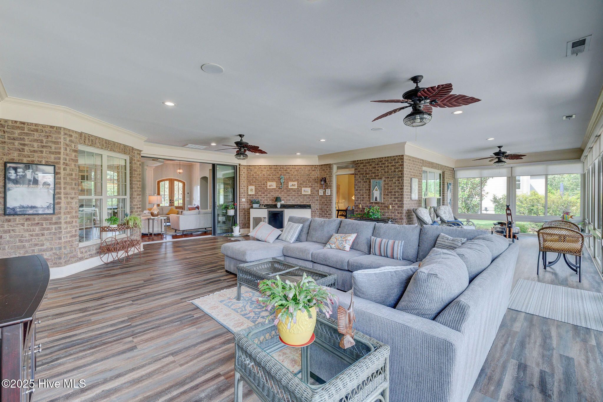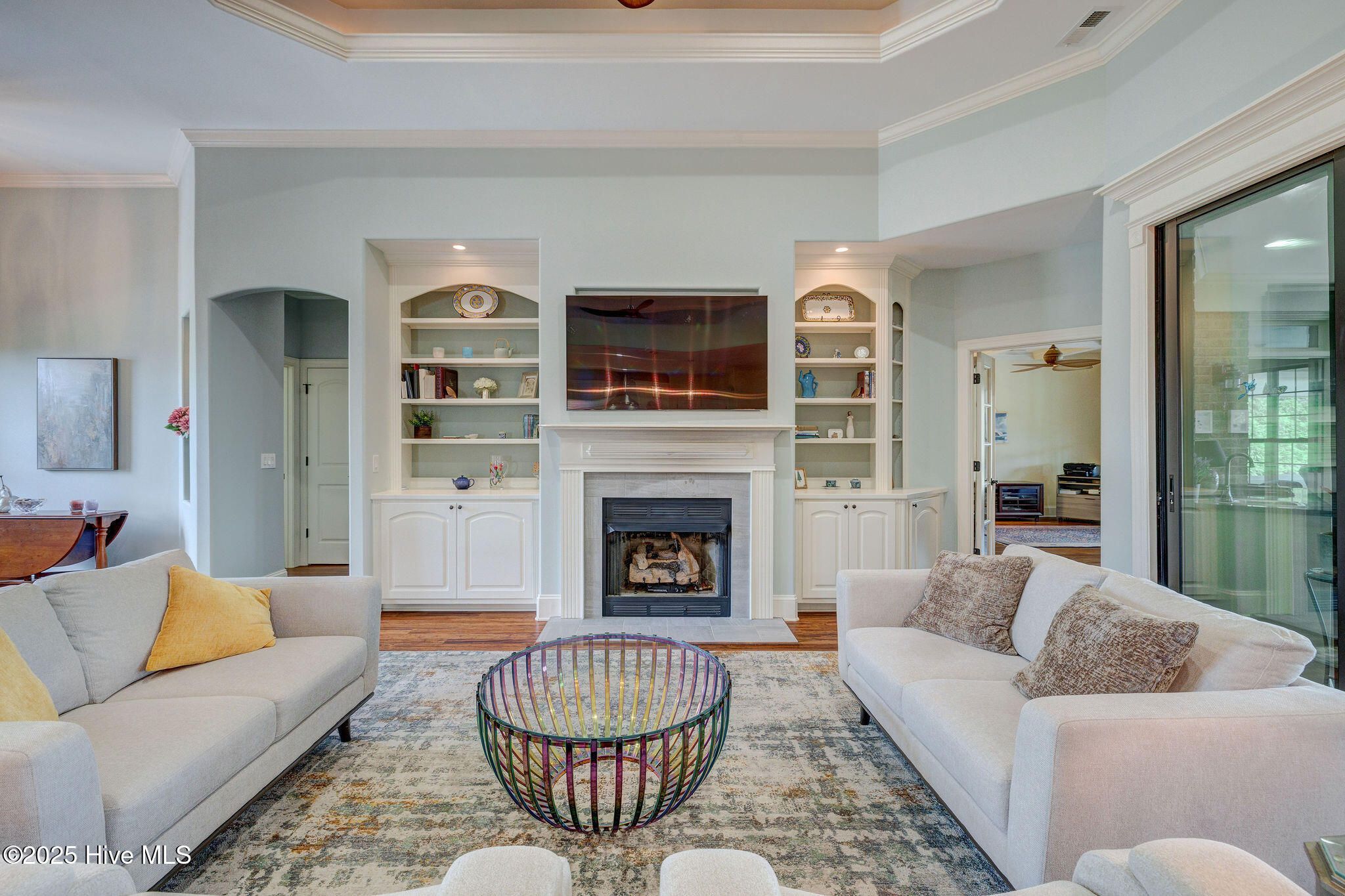 - 2nd Kitchen, Sound System, Whirlpool, Wet Bar, Walk-In Closet(s), Walk-in Shower, Tray Ceiling(s), Gas Log, Pantry, Master Downstairs, Kitchen Island, High Ceilings, Generator Plug, Central Vacuum, Ceiling Fan(s), Blinds/Shades