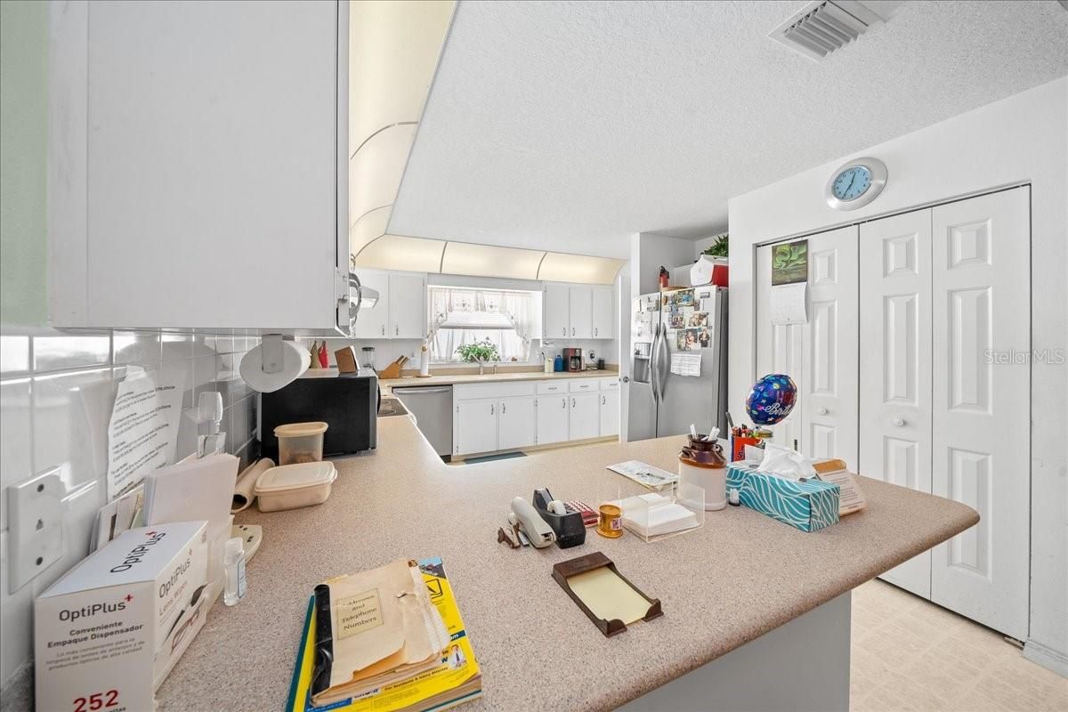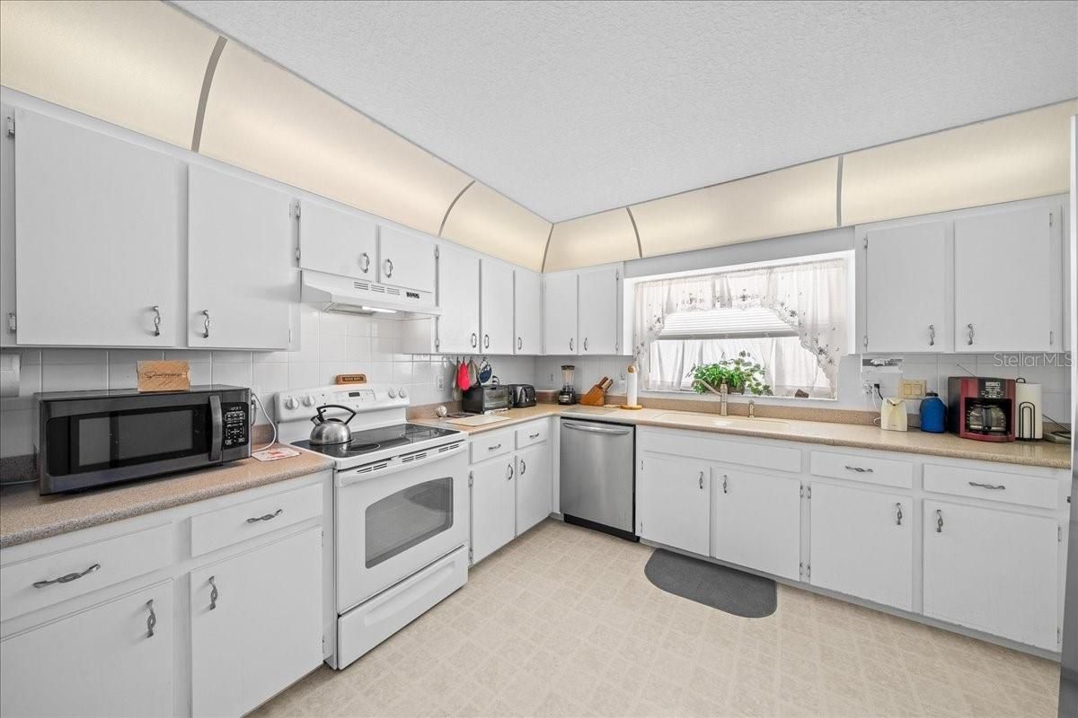 - Cathedral Ceiling(s), Ceiling Fan(s), Eat-in Kitchen, Kitchen/Family Room Combo, Open Floorplan, Solid Surface Counters, Split Bedrooms, Walk-In Closet(s), Window Treatments