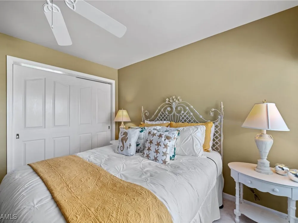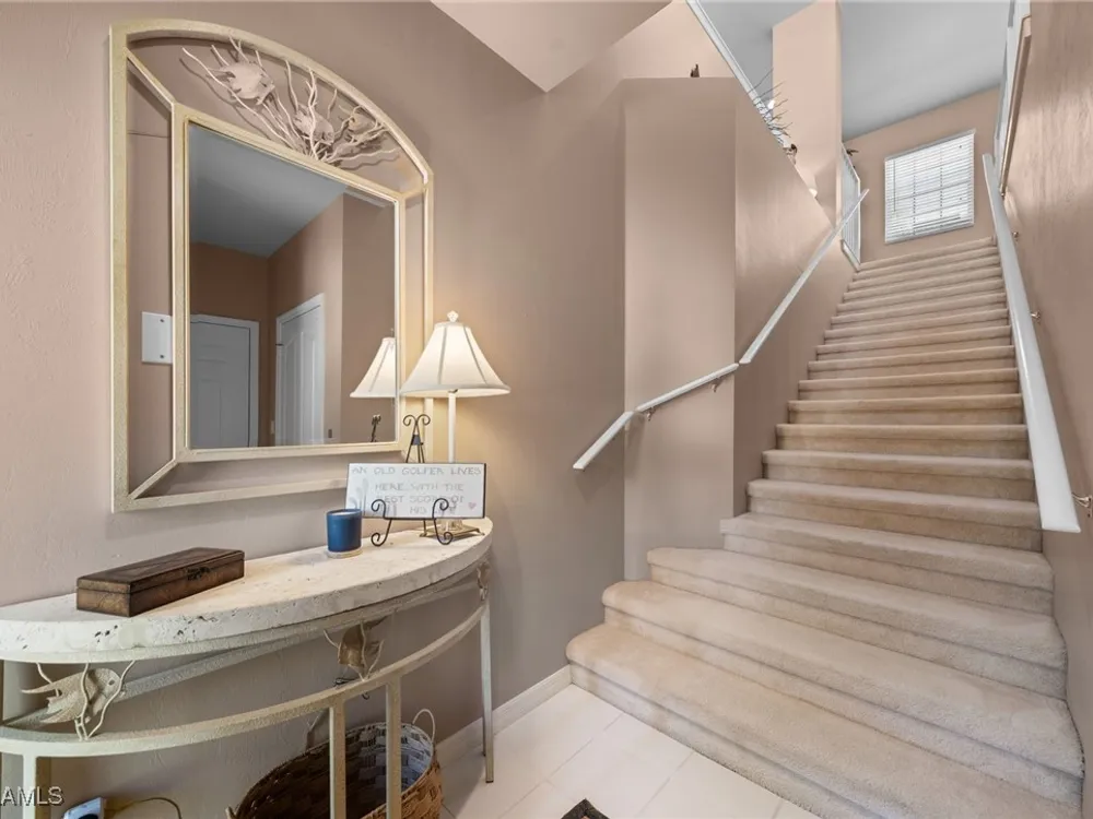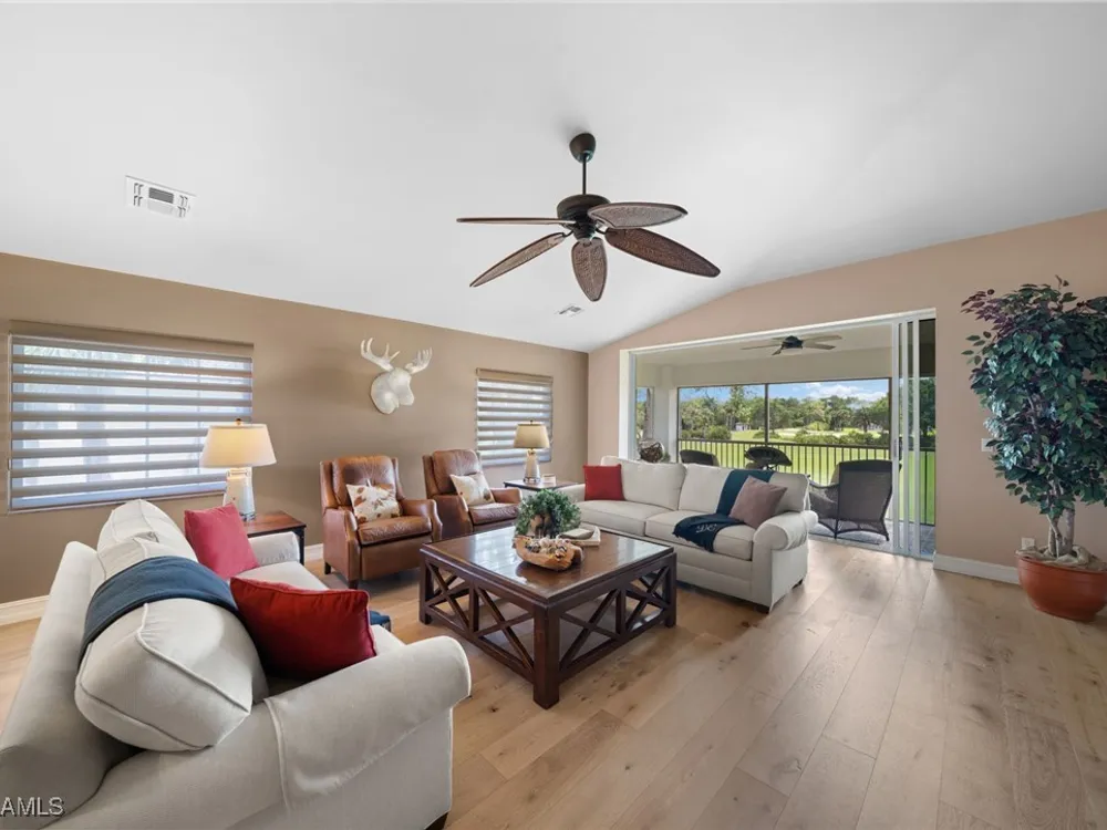 Exceptionally, well maintained 2nd floor Coach Home with private elevator. This spacious, 3+den, 3 bath condo is move-in ready and is being sold turnkey. Enjoy tranquil mornings with breath-taking sunrises from your Eastern facing lanai, perfectly positioned to offer stunning golf course views. The owners have recently replaced the lanai screening with no-see-um screening. Other updates include: engineered hardwood flooring, new washer and dryer, new water heater, updated lights & fans. Mystic Greens community has their own club house and pool. A great place to meet your neighbors! The amenity rich Players Club and Spa is optional and is immediately available with this condo…no need to go on the wait list. Wonderful restaurants, resort style pools, well-equipped fitness center with trainers and a full array of classes, full-service spa, Har Tru Tennis courts with pro shop, pickleball, bocce ball plus a dog park for your furry friends. Lely Resort is home to 1 private golf course and 2 public golf courses.