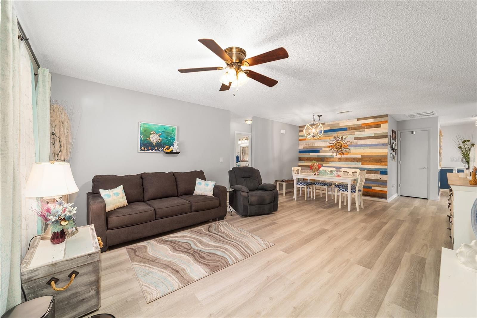 - Eat-in Kitchen, Kitchen/Family Room Combo, Living/Dining Room, Main Level Primary, Solid Surface Counters, Walk-In Closet(s), Window Treatments