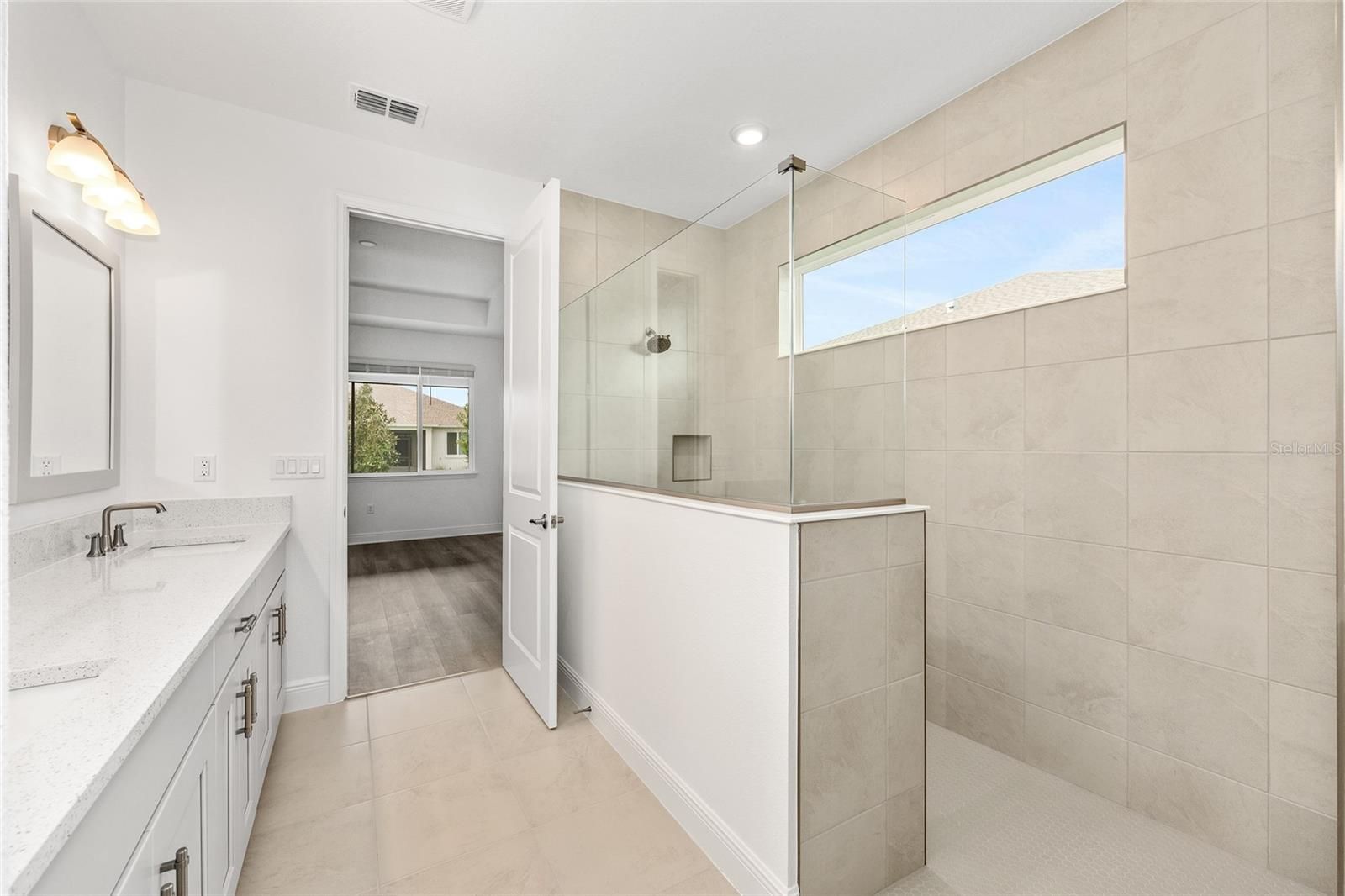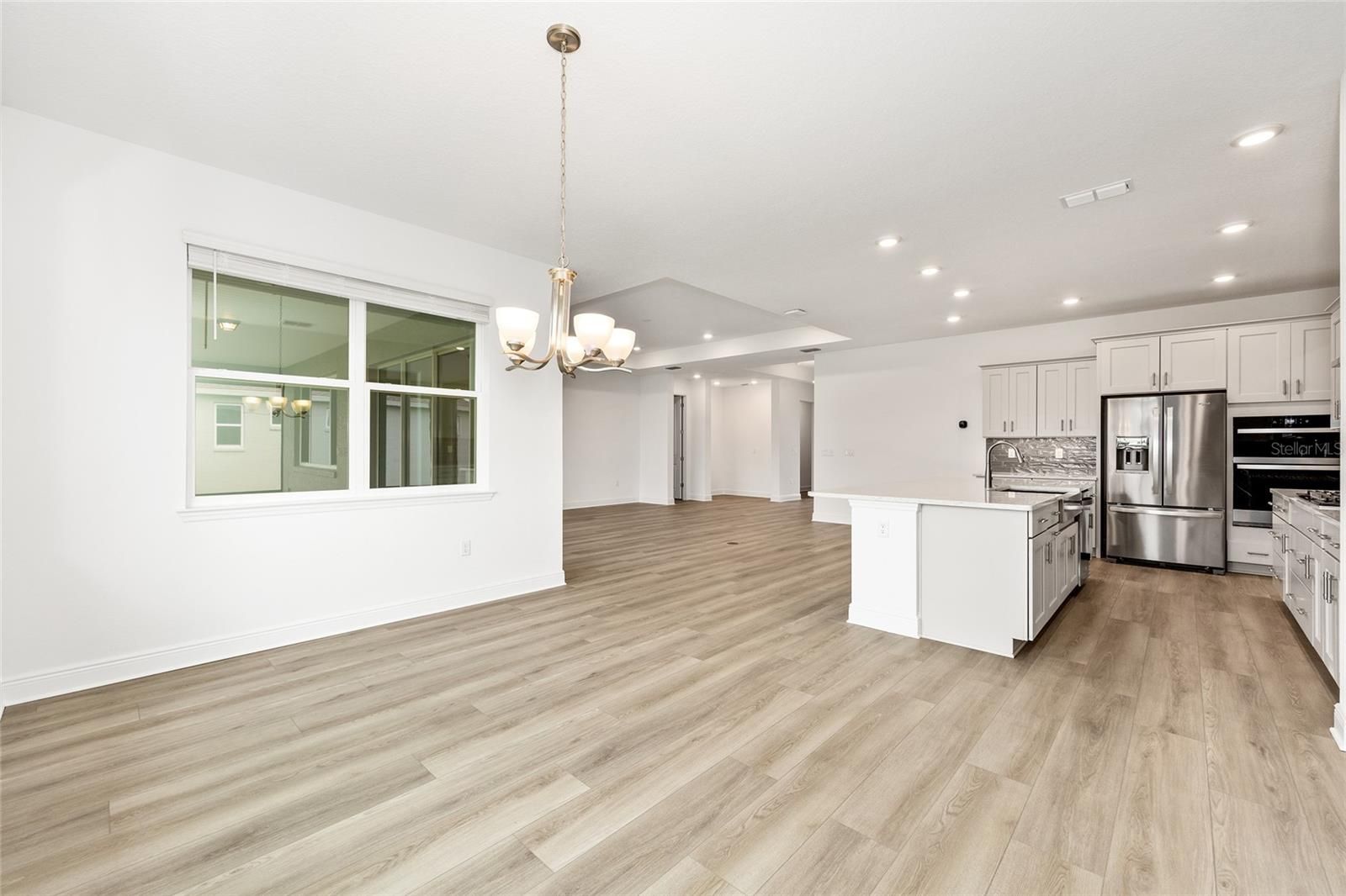 Welcome to the Dunbar model, a stunning 3-bedroom, 3-bathroom home with a 3-car garage, located in the highly desirable Balfour neighborhood of On Top of the World. This new construction home combines elegance and functionality, featuring a paver driveway and walkway, luxury vinyl flooring throughout, and an open-concept layout perfect for entertaining and everyday living. The gourmet kitchen is a chef’s dream, with staggered cabinets with crown molding, under-cabinet lighting, a walk-in pantry, a built-in oven and microwave, a 5-burner cooktop with range hood, stainless steel refrigerator, and an oversized island ideal for meal prep and casual dining. Entertaining is effortless with the great room that opens to a screened lanai via a 4-panel sliding door, creating seamless indoor-outdoor living. The master suite is a private retreat, boasting a 3-panel window with blinds overlooking the backyard, a walk-in closet with through-access to the laundry room for added convenience, and a luxurious en suite bathroom with tile flooring, a double vanity with quartz countertop, and a zero-entry tiled shower with built-in bench. One of the additional bedrooms also features an ensuite with tile flooring and a walk-in shower with sliding glass door, providing comfort and privacy for guests. The split-bedroom layout ensures privacy throughout, while the 3-car garage offers ample parking and storage. Living in Balfour at On Top of the World grants access to world-class amenities, including championship golf courses, fitness centers, swimming pools, tennis, pickleball, and countless clubs and activities designed for active adult living.