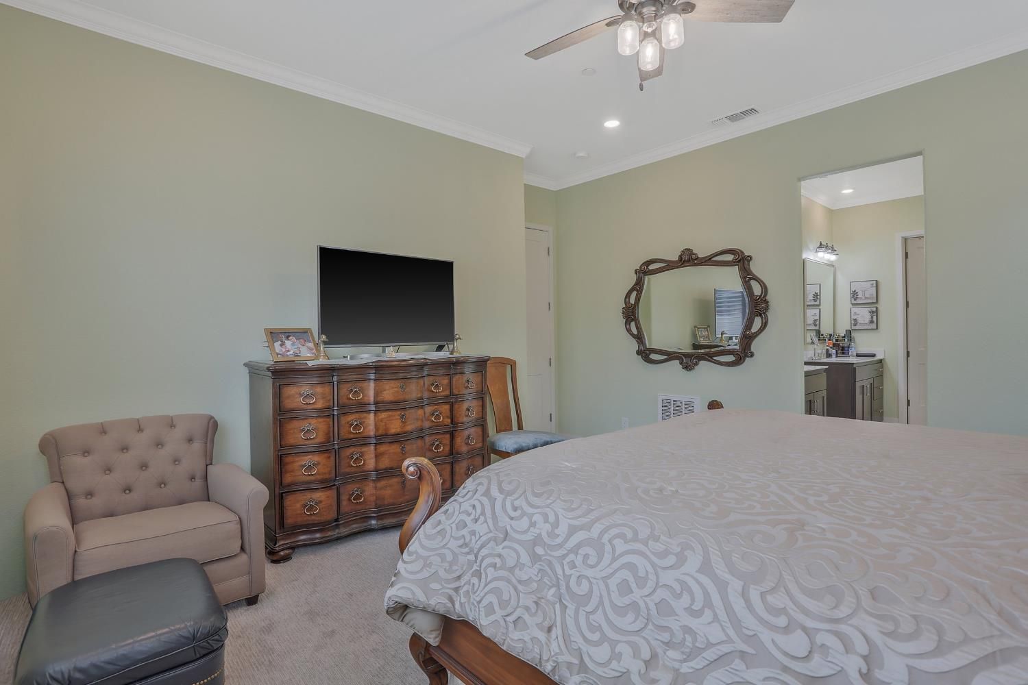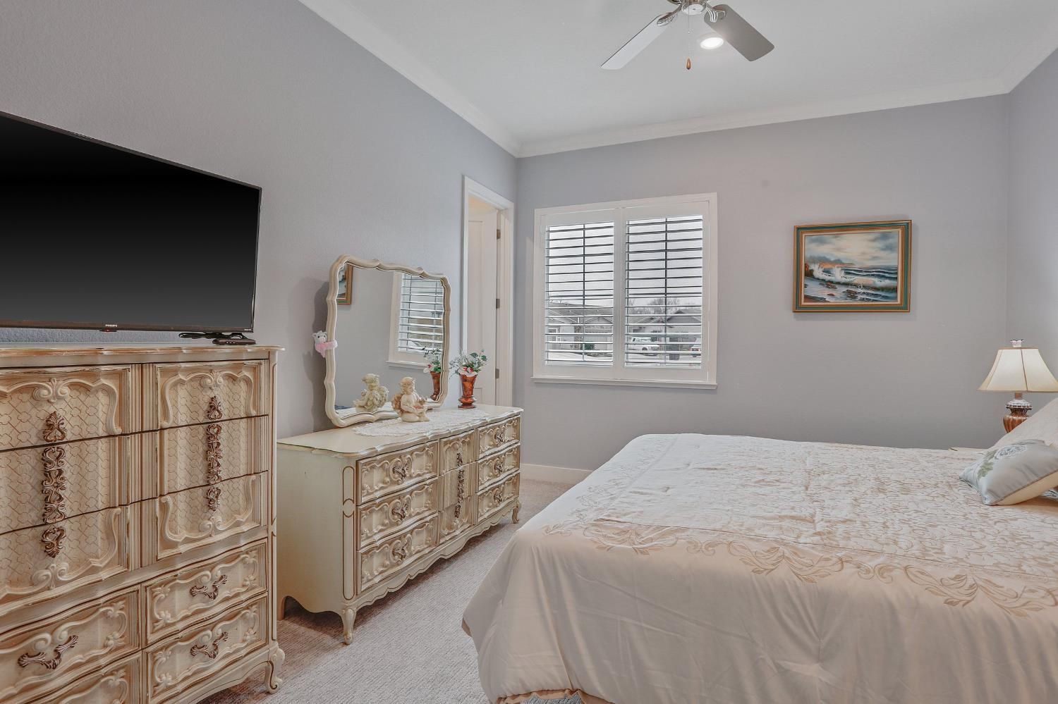 Built for 55+ resort-lifestyle communities. Meadow-Plan 13 offers 3 bedrooms,3.5 baths, Custom painting throughout the house, crown molding throughout the home, in home so round sound, Installed glass doors in primary shower, installed 1x6 redwood fence board inside perimeters, professionally painted, vanity lighting in primary bath, Solar included paid in full, Walk in shower, walking closet, Beautiful kitchen, all throughout the home you can see and feel the comfort through. Owner has upgraded this beautiful home for his family enjoinment.