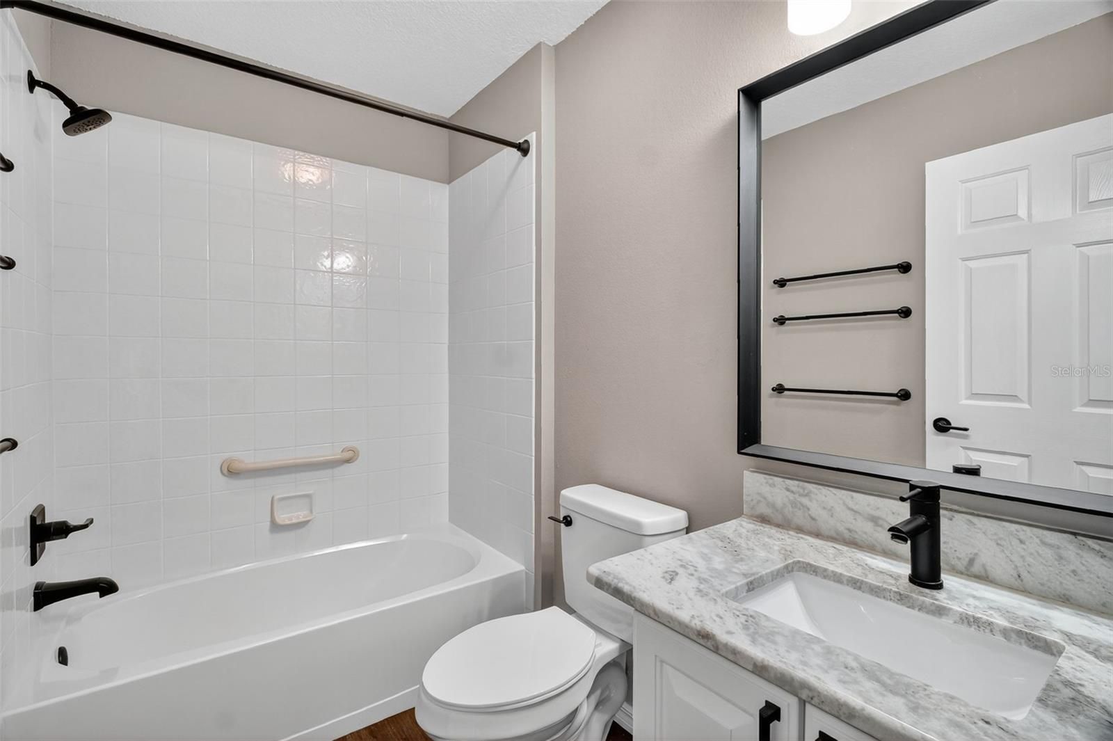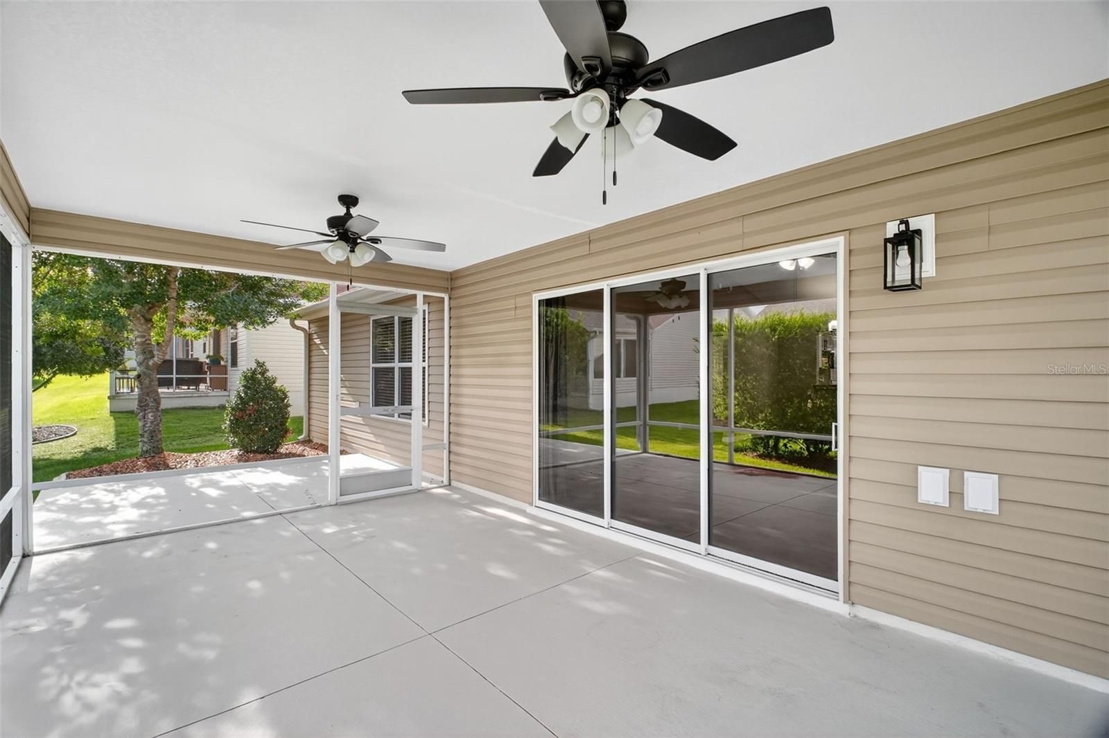 BEAUTIFULLY RENOVATED 3/2 WISTERIA MODEL with NEW ROOF (2025) and NEW HVAC (2024) in the highly desirable VILLAGE OF LARGO! This impressive home with a 2-car garage has been thoughtfully updated from top to bottom, blending modern style, high-quality finishes, and an unbeatable central location. From the moment you arrive, the freshly landscaped yard with decorative curbing sets the tone for the charm and sophistication you’ll find inside. Step into an open-concept floor plan designed for easy living and entertaining. The spacious living and dining areas are highlighted by new luxury vinyl plank flooring, elegant light fixtures, and sliding doors that lead to a large screened lanai and rear patio—the perfect setting for gatherings or peaceful evenings outdoors. The redesigned kitchen is a true centerpiece, featuring gleaming granite countertops, refinished white cabinetry with bold black pulls, brand-new appliances, and a bright bay-window dinette. It’s a beautiful and functional space that makes both cooking and hosting a joy. The primary suite is a relaxing retreat with luxury vinyl plank flooring, a redesigned master closet, and a spa-inspired en-suite bath offering double sinks, granite counters, white cabinetry, and a walk-in shower. Two additional bedrooms with built-in closets share a stunningly refreshed second bathroom with updated finishes and granite countertops. No detail has been overlooked—fresh interior paint on walls, trim, and concrete floors; new window blinds and door hardware; a WiFi-enabled garage door opener; five new LED fixtures in the garage; updated smoke detectors; all-new plumbing fixtures (including toilets); new ceiling fans and light fixtures throughout; and replaced electrical outlets and switches. Every upgrade provides convenience, comfort, and peace of mind. Enjoy the Florida lifestyle outdoors with a spacious screened lanai and rear patio, perfect for relaxing in the sunshine or entertaining friends. Ideally located in the Village of Largo, this home is just minutes from Lake Sumter Landing and Brownwood Paddock Square, plus you’ll be close to Havana and Mallory Hill Championship Golf & Country Clubs, Bacall, Canal Street, and Colony Cottage Recreation Centers, multiple pools including Hadley, Amelia, and Largo, as well as pickleball, dining, shopping, medical, and more along CR 466A. This move-in ready Wisteria Model combines luxury, convenience, and location all in one. Don’t wait—schedule your private showing or virtual tour today and experience The Villages lifestyle at its finest!