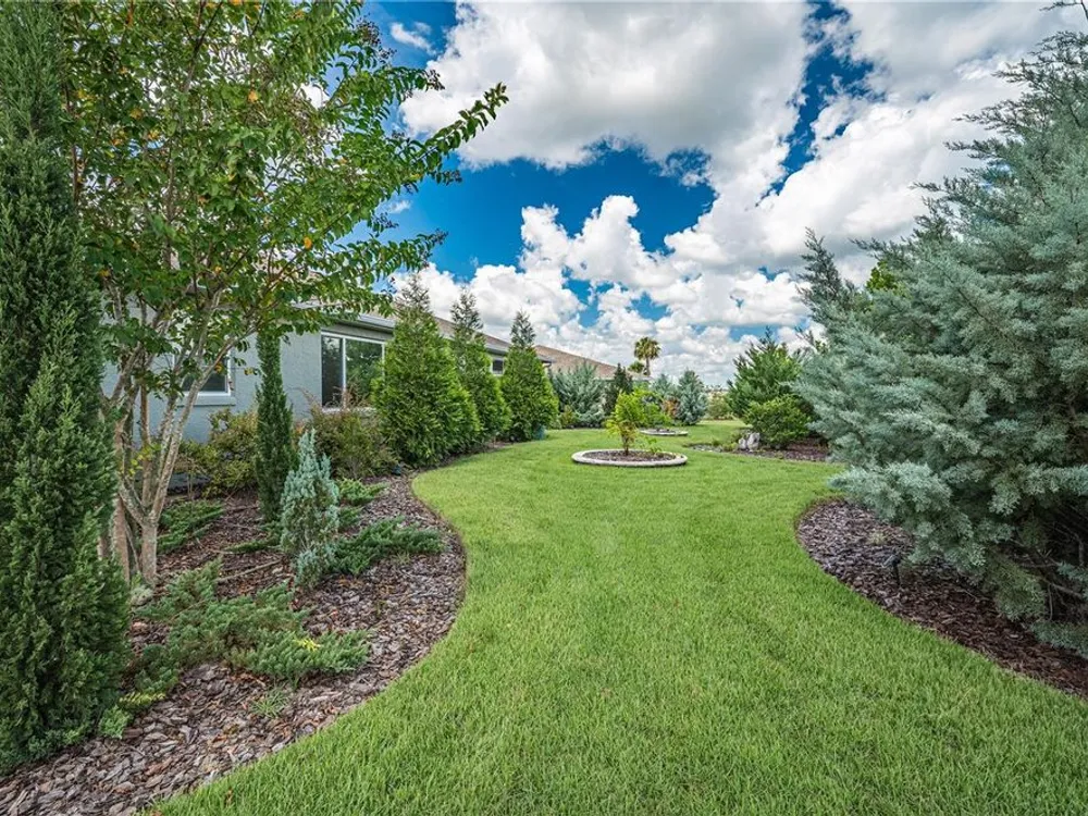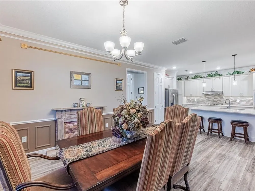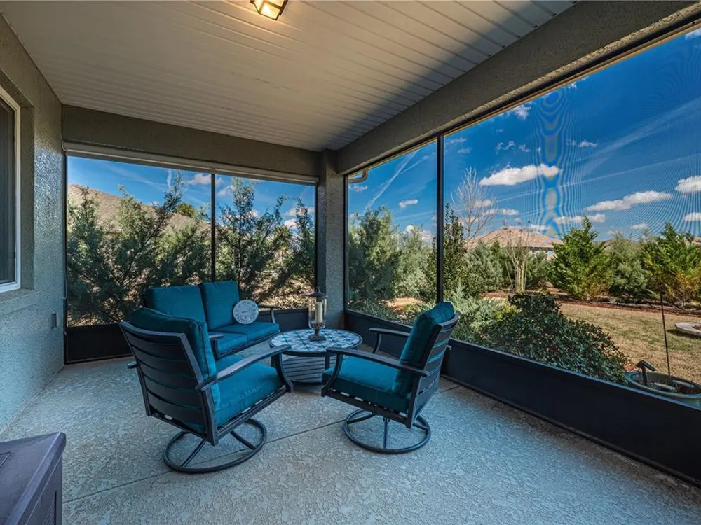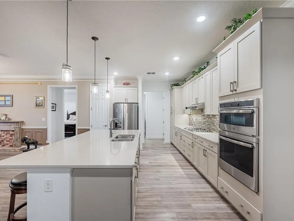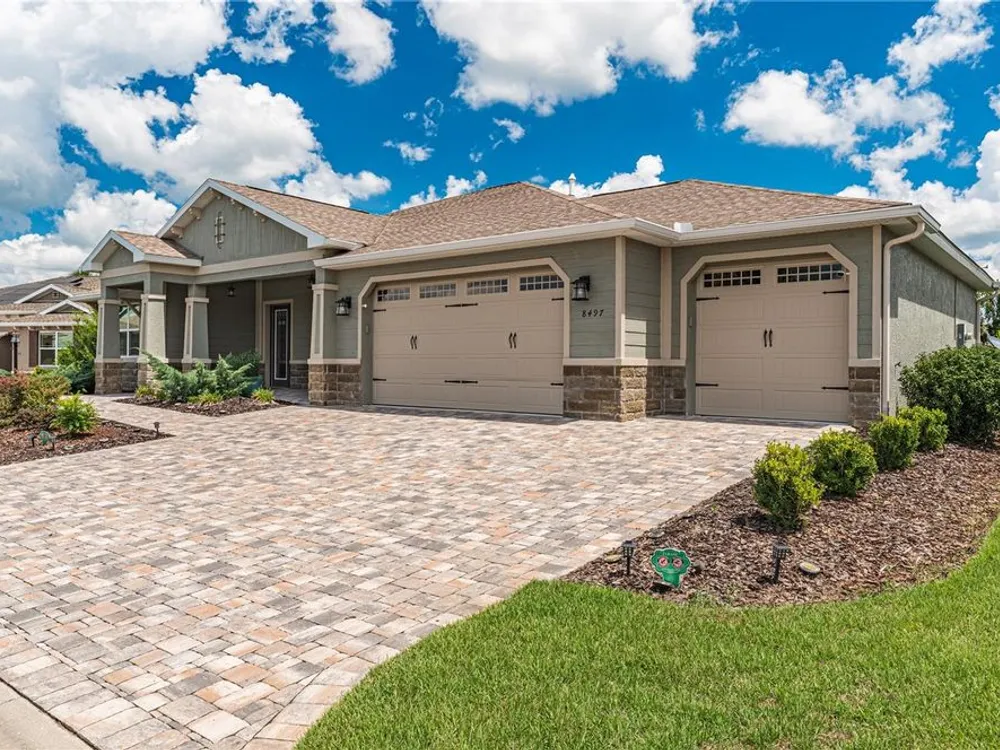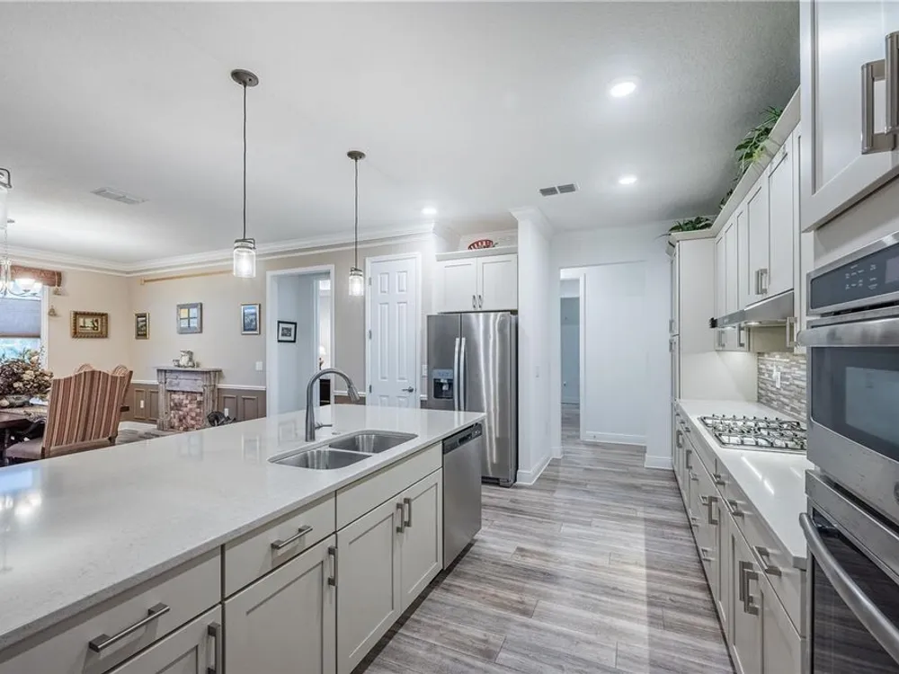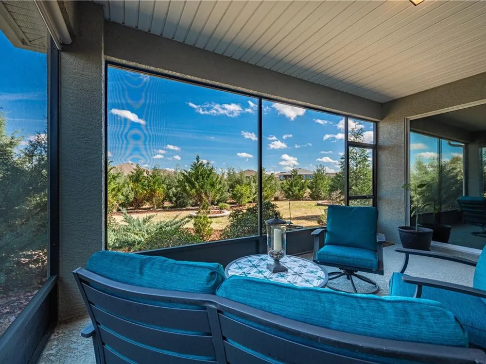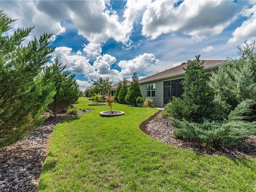 Discover luxury living at its finest in this pristine home in Candler Hills at On Top of the World, Ocala’s premier 55+ community. Built in 2021, this 2-bedroom, 2-bath home with a large flex room offers 2,099 sq. ft. of thoughtfully designed living space enhanced by high-end upgrades. From the hand-painted foyer ceiling to crown molding, wainscoting, and designer finishes, every detail adds elegance. The gourmet kitchen features quartz countertops, a gas range, tiled backsplash, and soft-close cabinetry, opening to a bright, open-concept living area. The primary suite is a true retreat with custom his-and-her closets and a spa-inspired bath. Enjoy beautifully landscaped grounds, solar-lit paver walkways, and a spacious 3-car garage (24' x 32'2") that offers ample storage and parking, complemented by a dedicated golf cart area (12'3" x 11'2")—complete with epoxy floors for a clean, durable finish. Additional highlights include luxury vinyl plank flooring, solar guard windows, custom shades, and a well-appointed laundry room with sink and built-in storage. Living here means access to world-class amenity, clubhouse, multiple golf courses, Community pools, fitness centers, clubs, and endless recreation, all within the vibrant lifestyle of On Top of the World. Don’t miss this opportunity to own one of Ocala’s most desirable communities.