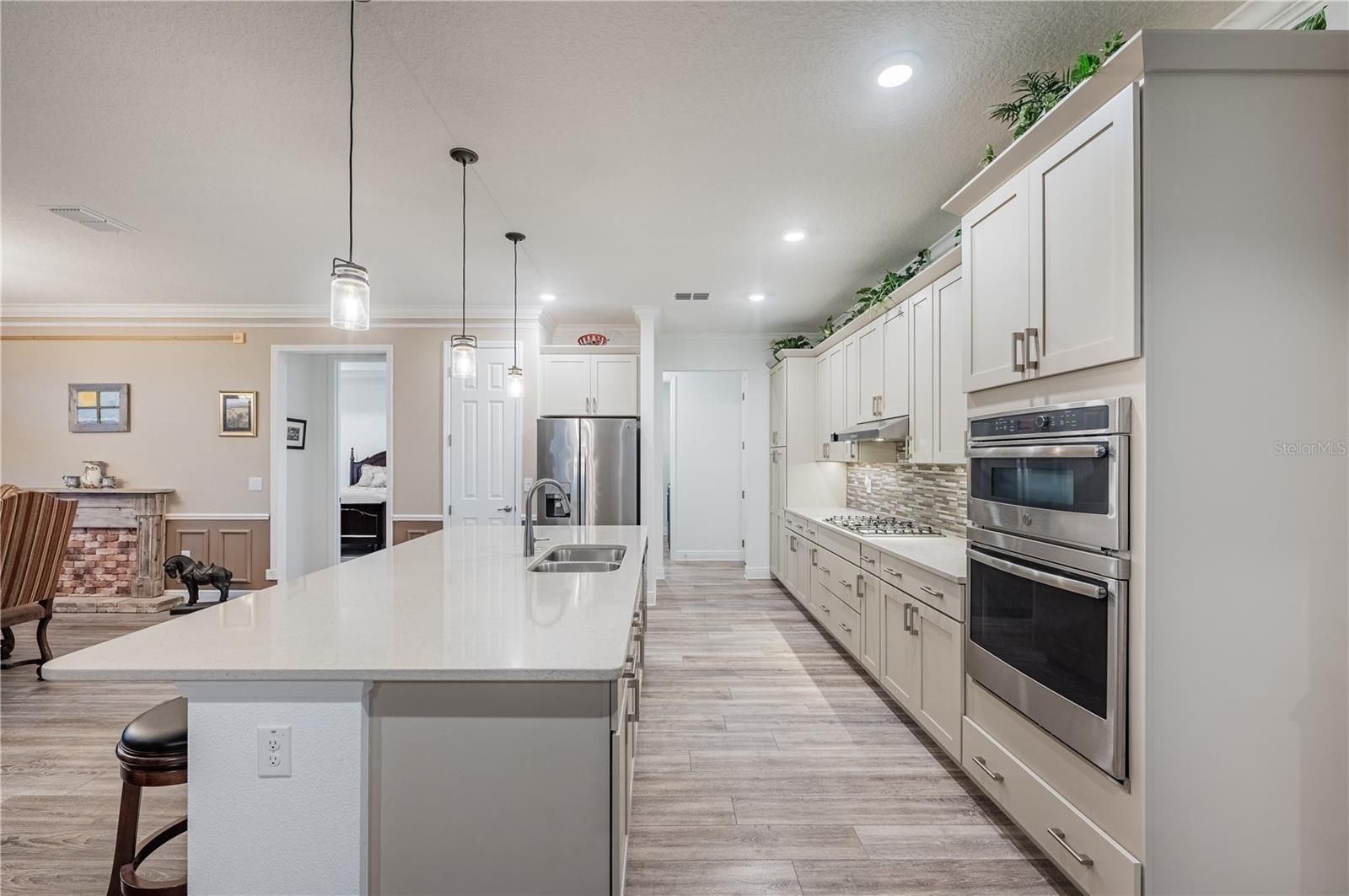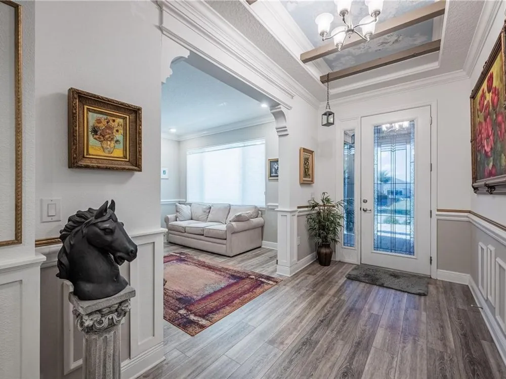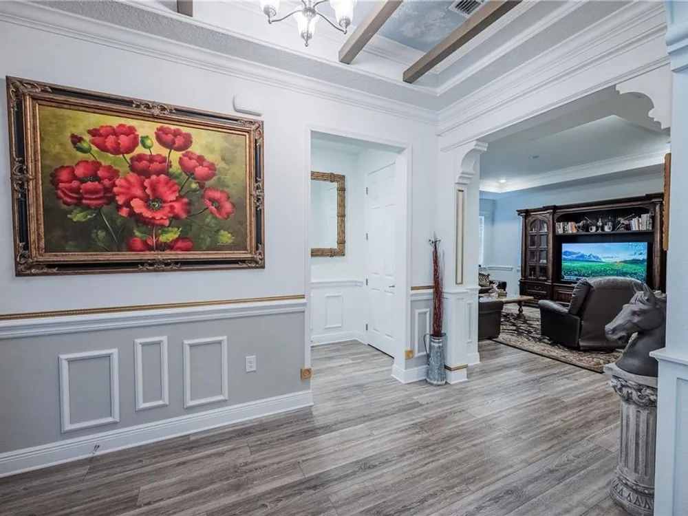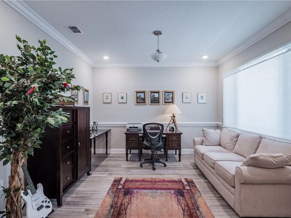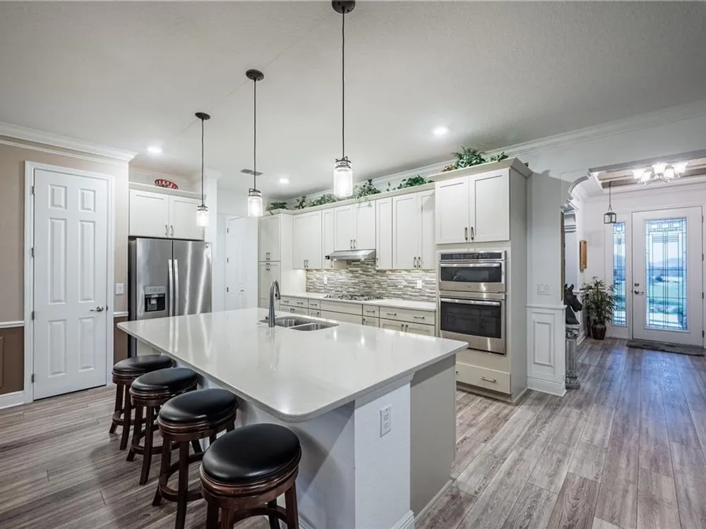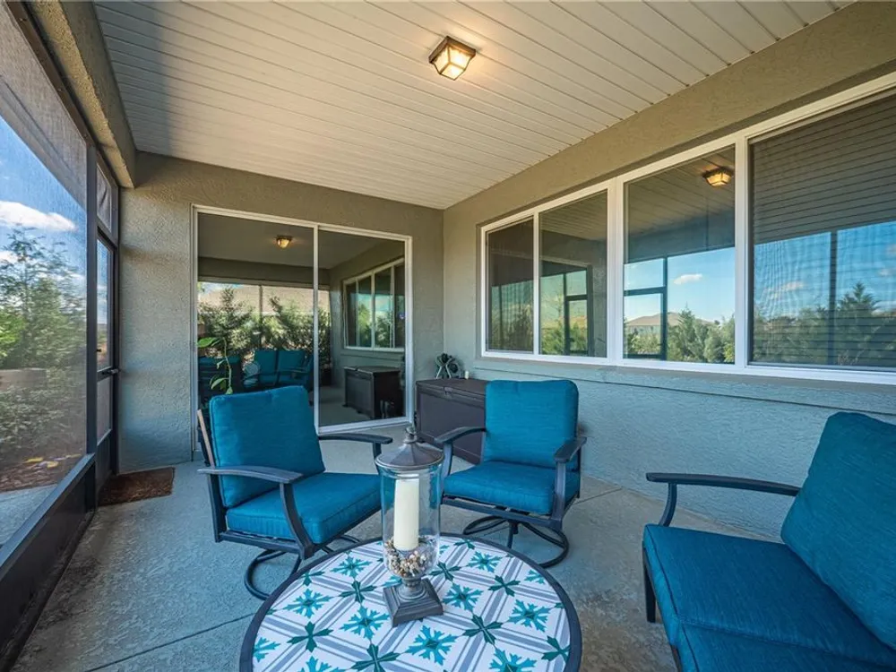 Discover luxury living at its finest in this pristine home in Candler Hills at On Top of the World, Ocala’s premier 55+ community. Built in 2021, this 2-bedroom, 2-bath home with a large flex room offers 2,099 sq. ft. of thoughtfully designed living space enhanced by high-end upgrades. From the hand-painted foyer ceiling to crown molding, wainscoting, and designer finishes, every detail adds elegance. The gourmet kitchen features quartz countertops, a gas range, tiled backsplash, and soft-close cabinetry, opening to a bright, open-concept living area. The primary suite is a true retreat with custom his-and-her closets and a spa-inspired bath. Enjoy beautifully landscaped grounds, solar-lit paver walkways, and a spacious 3-car garage (24' x 32'2") that offers ample storage and parking, complemented by a dedicated golf cart area (12'3" x 11'2")—complete with epoxy floors for a clean, durable finish. Additional highlights include luxury vinyl plank flooring, solar guard windows, custom shades, and a well-appointed laundry room with sink and built-in storage. Living here means access to world-class amenity, clubhouse, multiple golf courses, Community pools, fitness centers, clubs, and endless recreation, all within the vibrant lifestyle of On Top of the World. Don’t miss this opportunity to own one of Ocala’s most desirable communities.