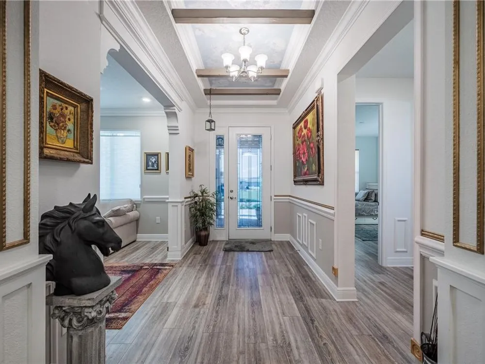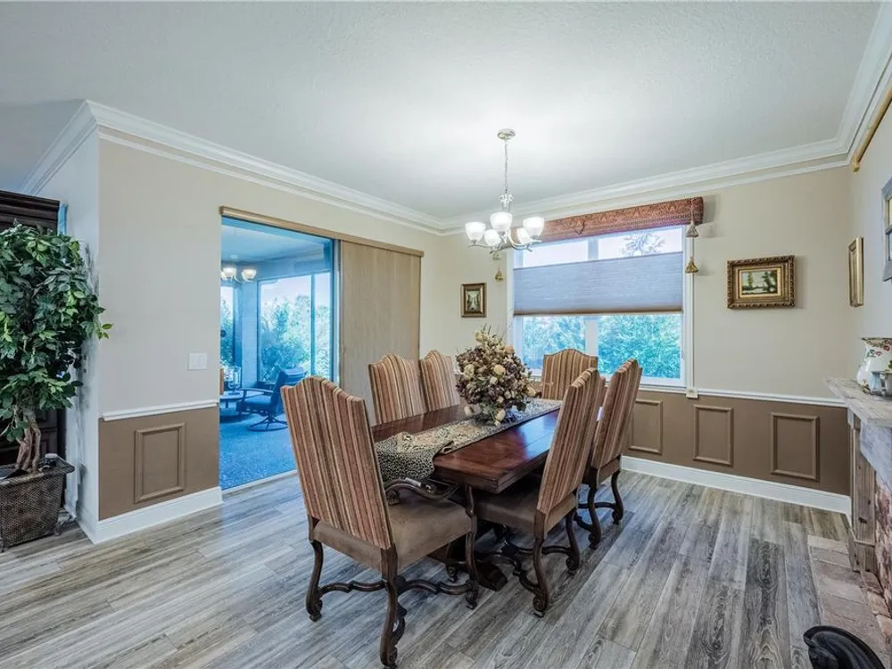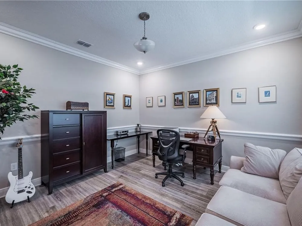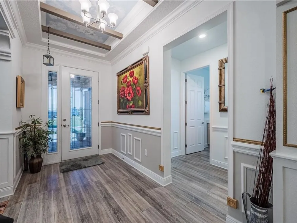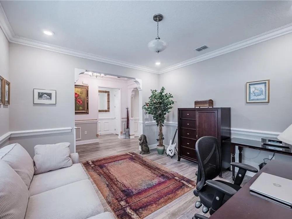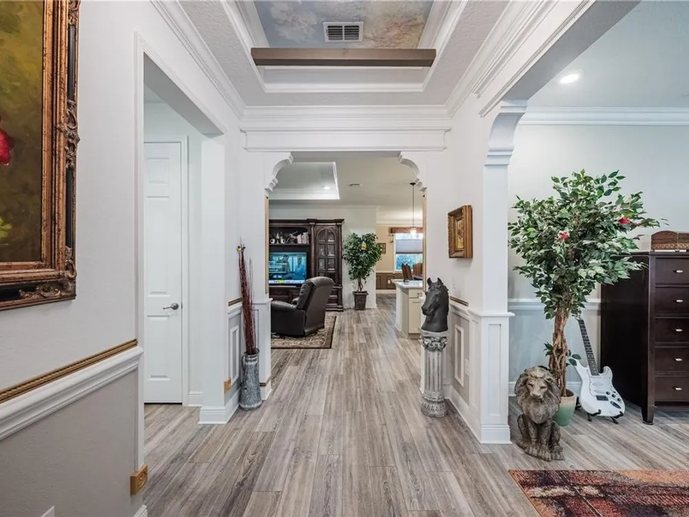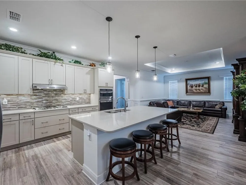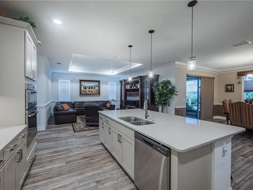 Discover luxury living at its finest in this pristine home in Candler Hills at On Top of the World, Ocala’s premier 55+ community. Built in 2021, this 2-bedroom, 2-bath home with a large flex room offers 2,099 sq. ft. of thoughtfully designed living space enhanced by high-end upgrades. From the hand-painted foyer ceiling to crown molding, wainscoting, and designer finishes, every detail adds elegance. The gourmet kitchen features quartz countertops, a gas range, tiled backsplash, and soft-close cabinetry, opening to a bright, open-concept living area. The primary suite is a true retreat with custom his-and-her closets and a spa-inspired bath. Enjoy beautifully landscaped grounds, solar-lit paver walkways, and a spacious 3-car garage (24' x 32'2") that offers ample storage and parking, complemented by a dedicated golf cart area (12'3" x 11'2")—complete with epoxy floors for a clean, durable finish. Additional highlights include luxury vinyl plank flooring, solar guard windows, custom shades, and a well-appointed laundry room with sink and built-in storage. Living here means access to world-class amenity, clubhouse, multiple golf courses, Community pools, fitness centers, clubs, and endless recreation, all within the vibrant lifestyle of On Top of the World. Don’t miss this opportunity to own one of Ocala’s most desirable communities.