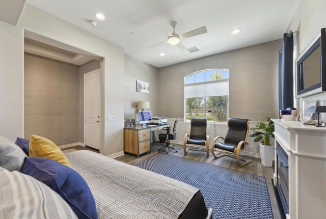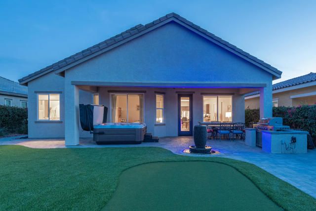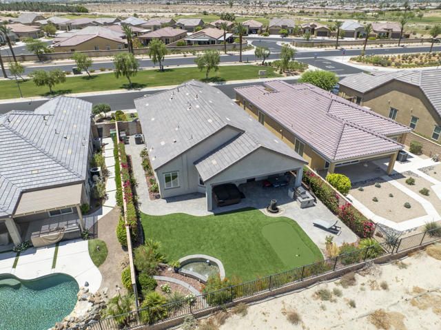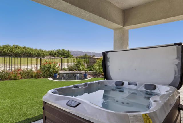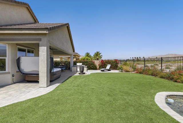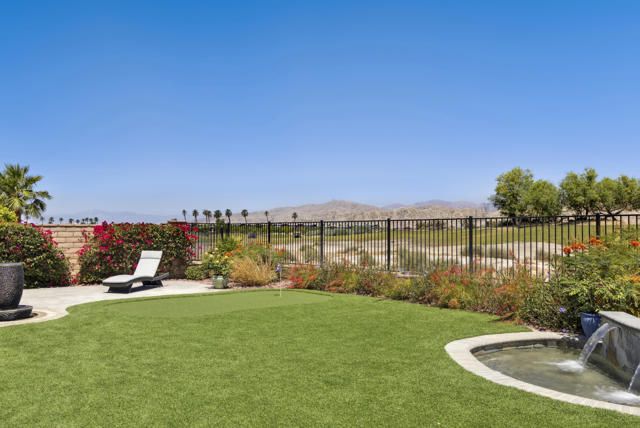 Welcome to your beautiful and uniquely furnished and incomparably upgraded desert home with unlimited north and south mountain views located on only one of a few private, large lots (representing less than 3% of properties) in Terra Lago Four Seasons. Architecturally appealing and splendid inside and out...the open floor plan includes features not seen in most valley homes including: Spa level relaxing, glass enclosed 'In-Master' bathroom steam shower and soaking tub State of the art jacuzzi with multi-color lighting right outside your back door. A spacious ensuite master with an inviting sitting area, large dressing closet. A furnished private guest room and full adjacent bath. Prep and cook to your hearts delight in your inviting chefs kitchen equipped with high-end appliances. Home living is enhanced with select, custom-designed furniture and state-of-the art TV's/sound systems. Also features high-end laundry equipment, energy efficient heat/air conditioning, a low maintenance tankless hot water heater, ceiling fans, humidity controls and dimmer-controlled LED lighting fixtures throughout. The private, beautifully landscaped exterior enables unobstructed mountain views. There is a practice putting green incorporated in the low maintenance artificial turf front and backyard...and a dramatic custom lit waterfall and backyard fountain and front yard night lit water features. Abundant closet space throughout and a large two car garage with potential to add a third bedroom or office. The guard-gated community features include resort-outdoor pool with spa, indoor year-round Olympic-size pool, pickleball & tennis courts, bocce-ball, a fully equipped gym, pool tables, library, group activities galore, a hair salon and massage room. Looking for a vacation home escape, or unrivaled quality full-time living? This property stands out from most Terra Lago Four Seasons homes.