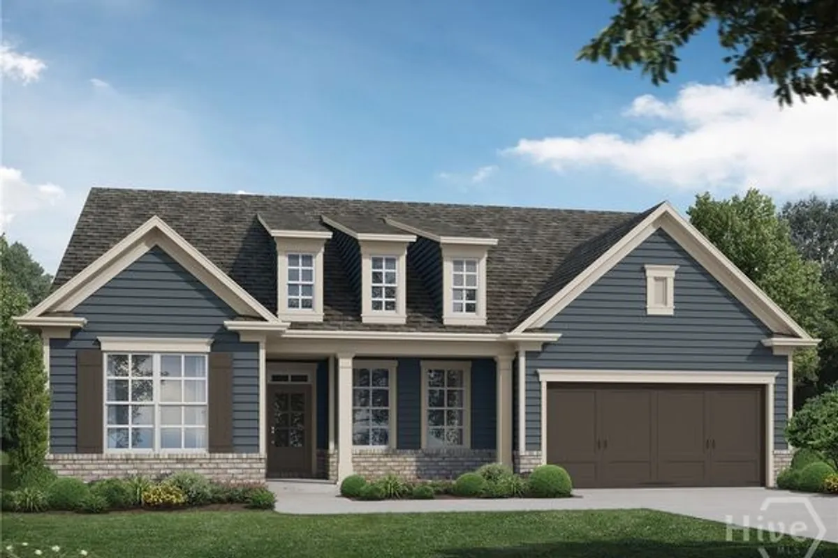 This three-bedroom, three-bathroom masterpiece in a premier 55+ community near I-85 and Athens perfectly balances architectural elegance with an effortless lifestyle. Designer Interiors The home’s chef-inspired kitchen is a true focal point, featuring a crisp white porcelain farmhouse sink, a sleek gas cooktop, and a stunning herringbone backsplash. The central island overlooks a family room defined by a sophisticated coffered ceiling, while high-end board and batten accents and abundant natural lighting flow throughout the entire residence. Flexible Luxury A large flex room offers the ideal footprint for a home library or hobby space. The primary retreat is a sanctuary of its own, boasting a double trey ceiling and a spa-inspired bath with a zero-entry shower and exquisite designer tile work. Picturesque Outdoor Living Enjoy the best of both worlds with covered front and rear patios. The front porch offers scenic views of the community green space, while the spacious backyard is maintained for you—the HOA mows all four sides! Active Community Perks Take a social stroll along the abundance of sidewalks to the Junior Olympic pool, clubhouse, or pickleball courts. Photos shown are not of the actual home but of the same floor plan. The Decorative selections and upgrades will vary. Built by Three Rivers Homes.