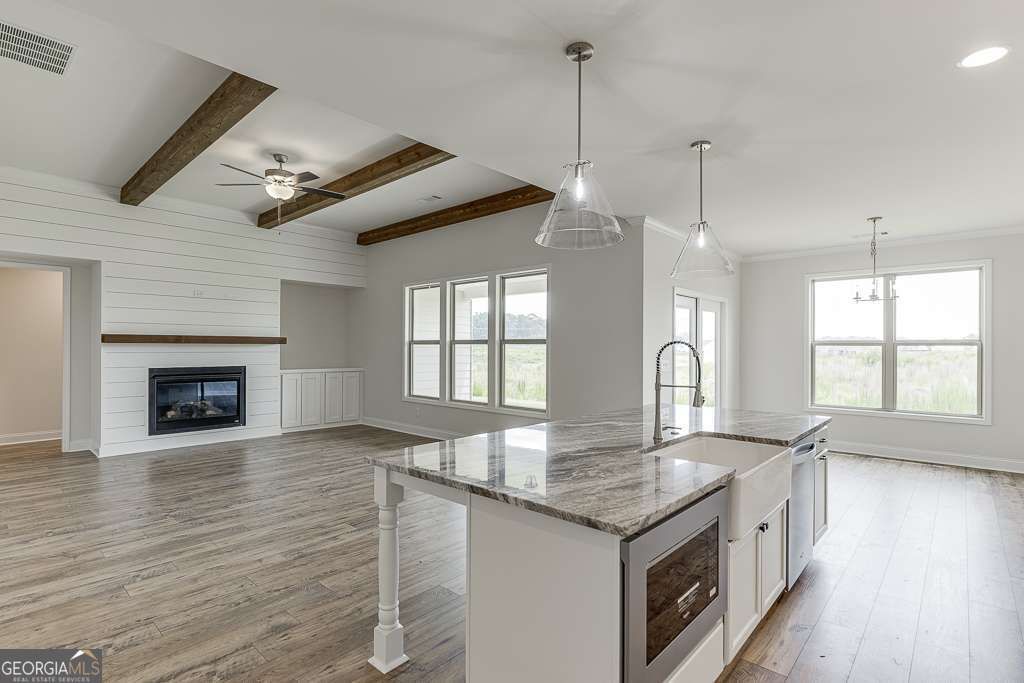 3 Bedrooms & 3 Bathrooms PLUS Flex Room / Luxury Kitchen / Co?er Ceiling & Base Cabinets in the Family Room / Zero Entry Super Shower / Board & Batten Accents throughout /Covered PaIo / Located across from the community green space. Photos shown are not of the actual home but of the same floor plan. The Decorative selections and upgrades will vary. Built by Three Rivers Homes.