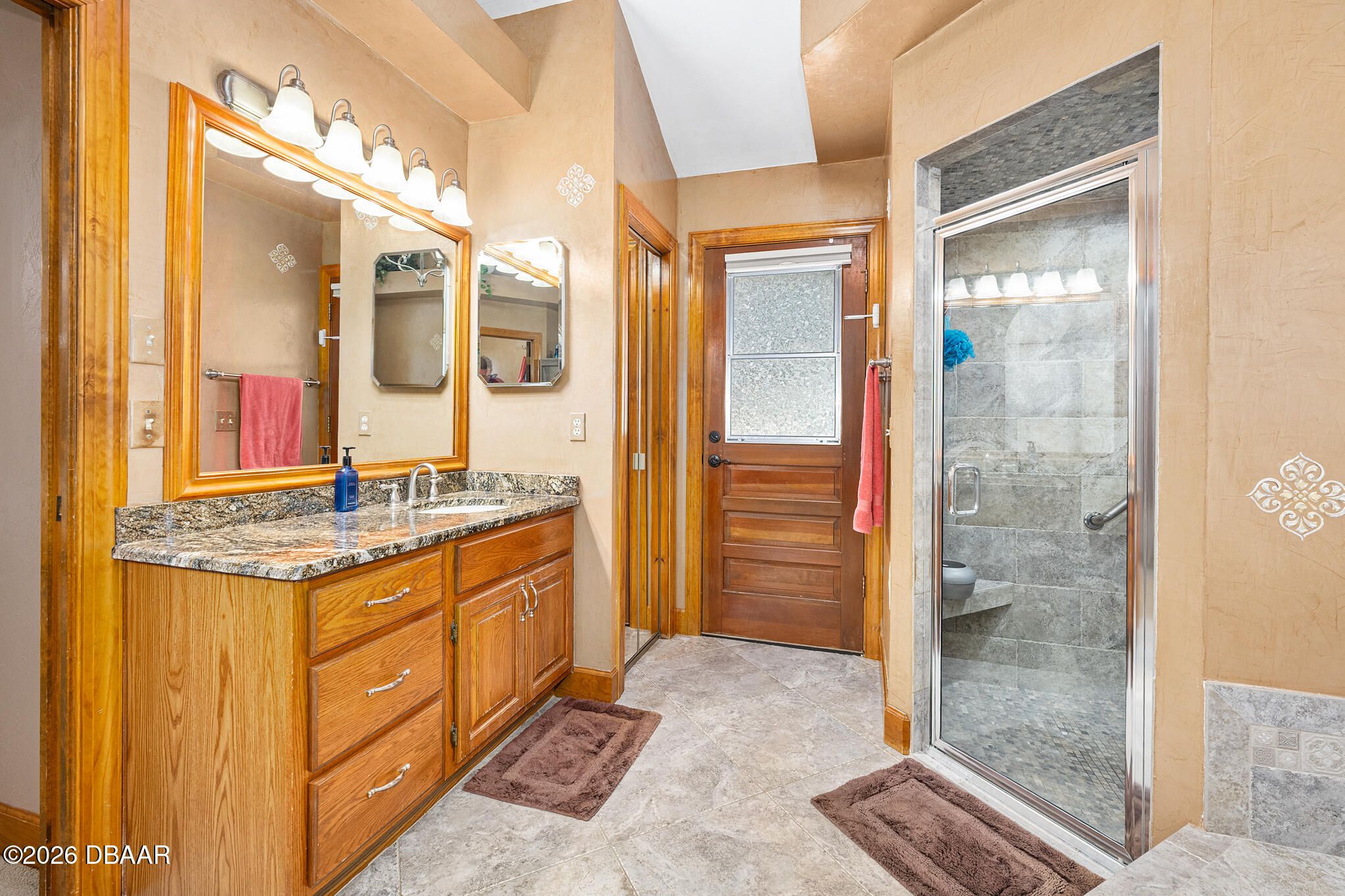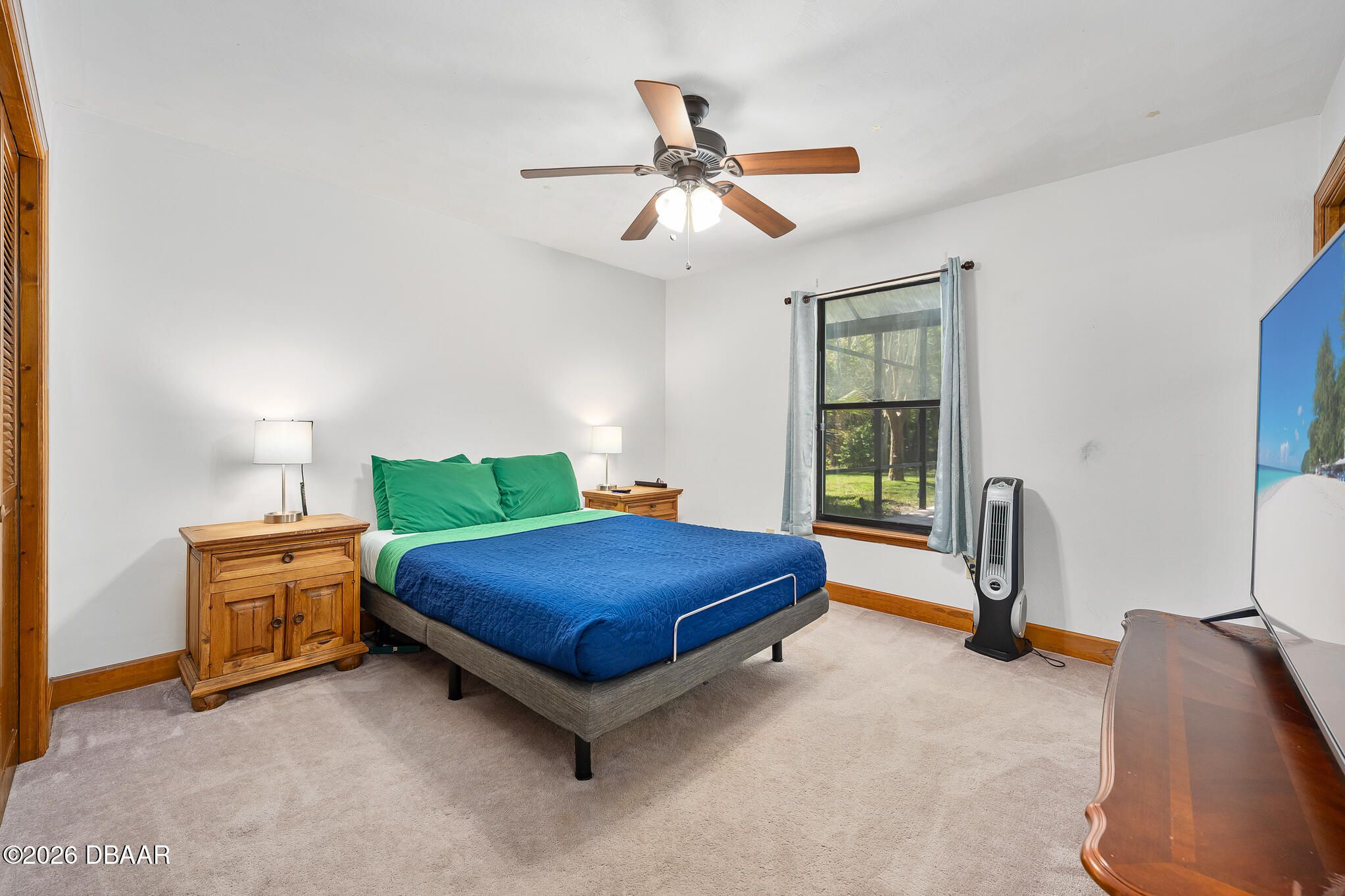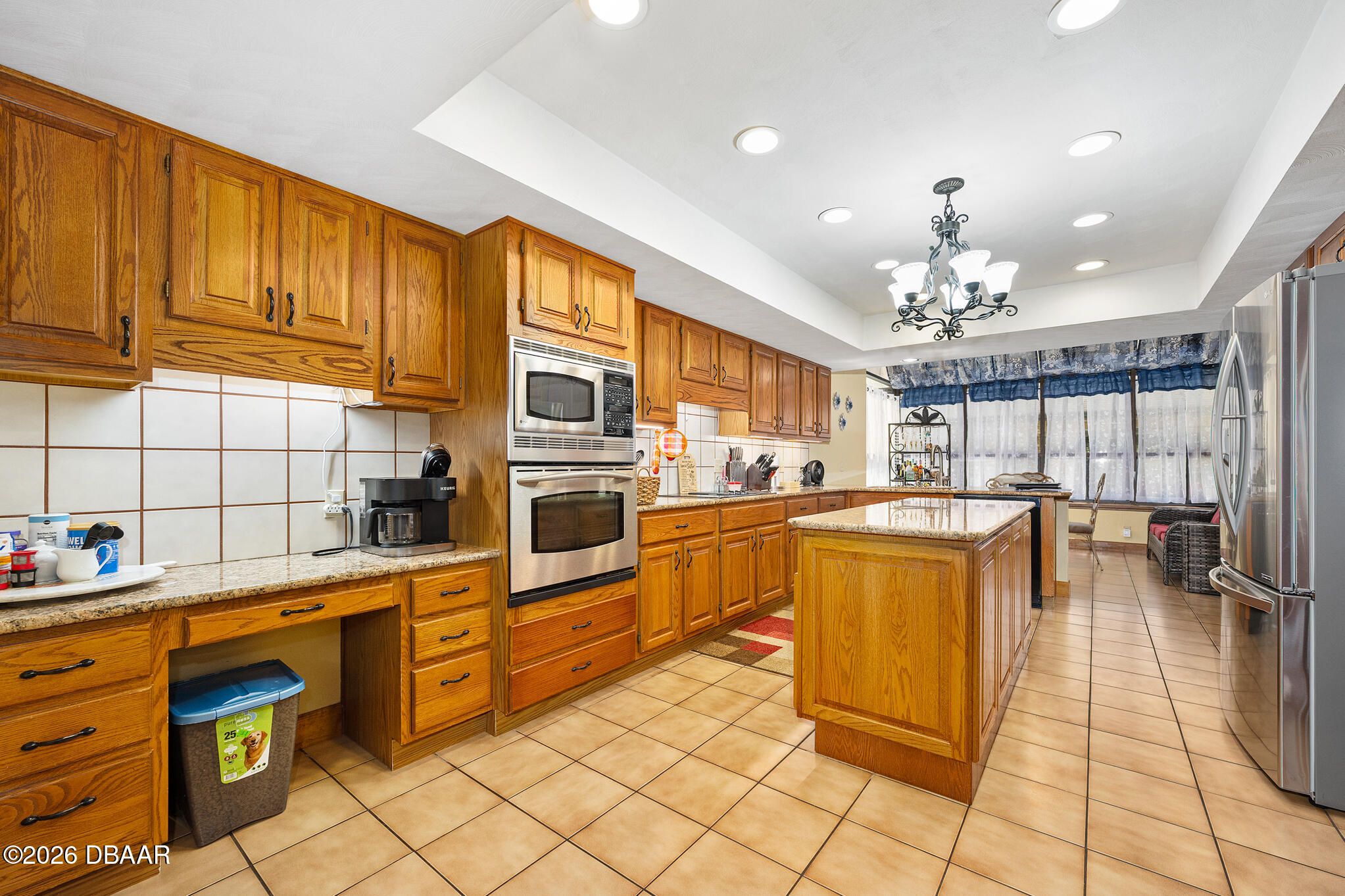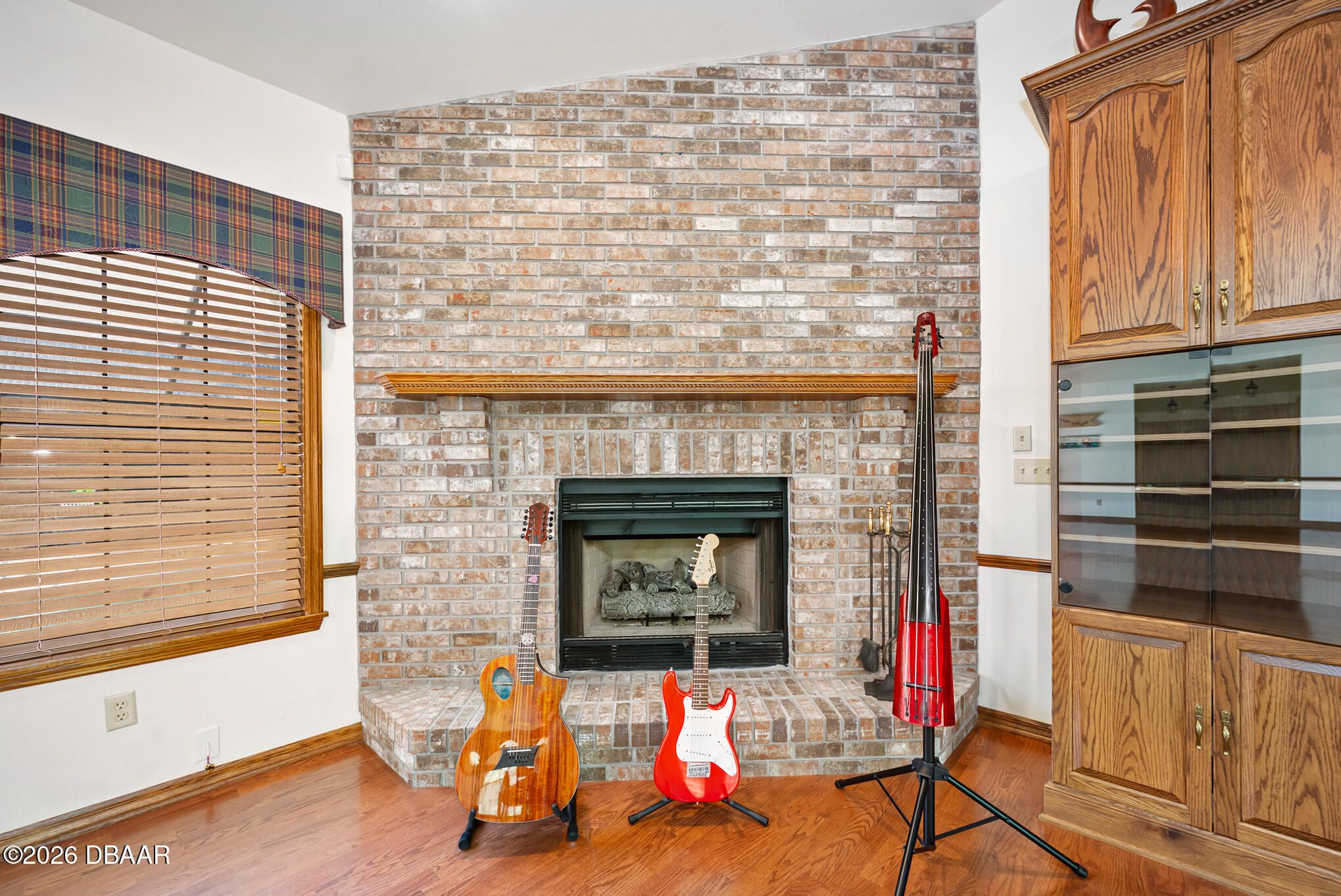 Spacious 4,400+ sq ft estate on a 3/4-acre lot backing to private preserve in prestigious, guard-gated Breakaway Trails, Ormond Beach with potential for a 2.25 percent assumable VA mortgage--a rare financing advantage in today's market! This custom brick home blends seamless indoor-outdoor flow, ideal for Florida's year-round lifestyle of relaxation, family gatherings, and effortless entertaining. Centered around a screened private pool, it offers multiple living areas, vaulted ceilings with a stunning brick fireplace in the living room, and generously sized bedrooms--including a luxurious primary suite with dual walk-in closets/fireplace, spa-like bath (jacuzzi tub, walk-in shower, dual vanities, pool access), plus guest rooms with direct pool access. The dual-access kitchen impresses with real wood cabinets, granite counters, stainless appliances, central island, wet bar, wine racks, and a glass-enclosed breakfast nook overlooking the pool. The standout separate bonus building (2023 roof), connected via the pool area, provides a large open entertaining space with full wet bar, built-in entertainment center, fireplace, 9ft billiard table, storage closet, and full bath with walk-in shower--perfect for guests, family, or hosting gatherings away from the main home. Residents enjoy 24/7 security and resort-style amenities: community pool/clubhouse, tennis, pickleball and basketball courts, children's park, and beautifully maintained sidewalk-lined streets--delivering a true neighborhood feel with resort perks in this prime location.