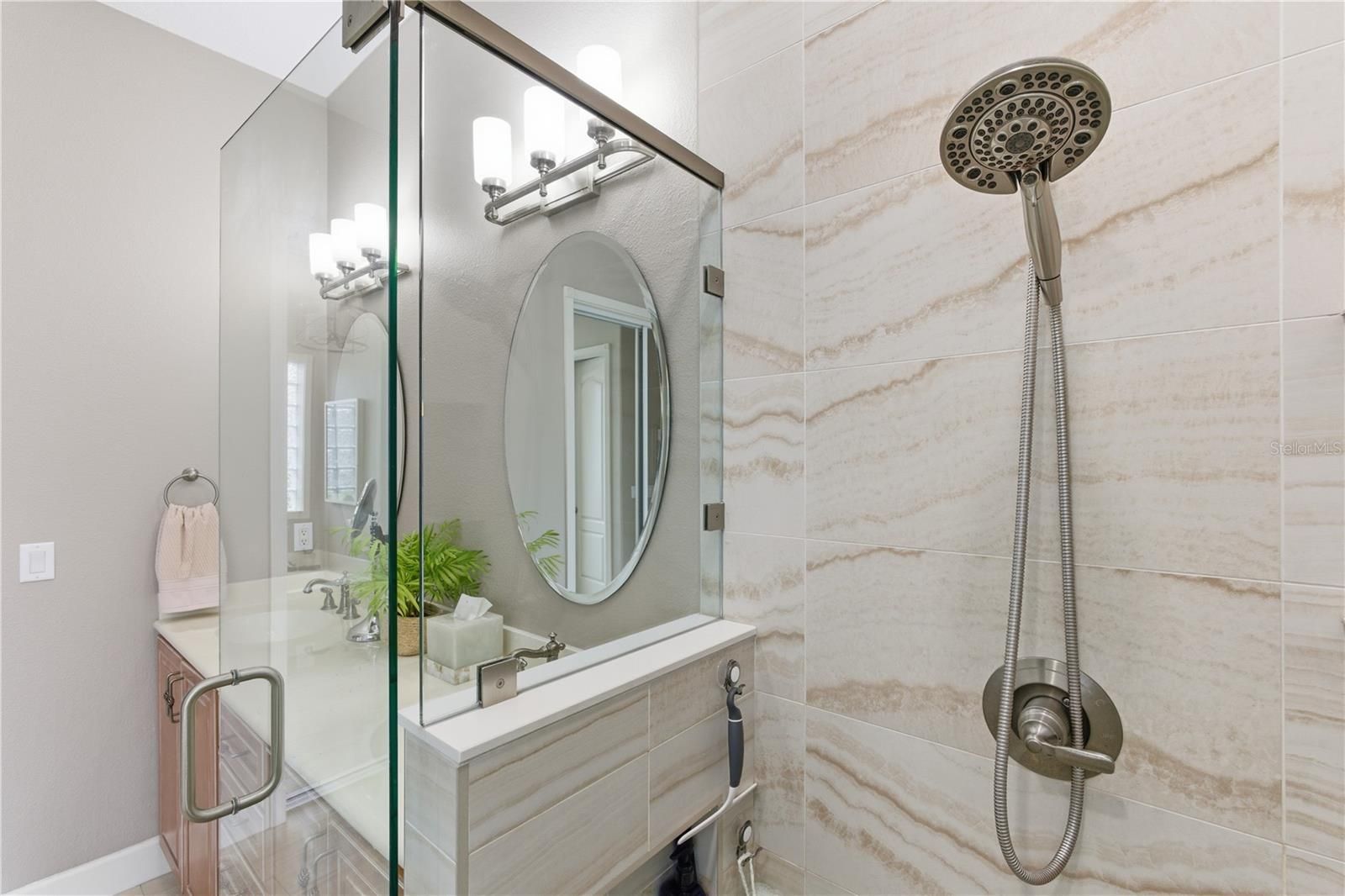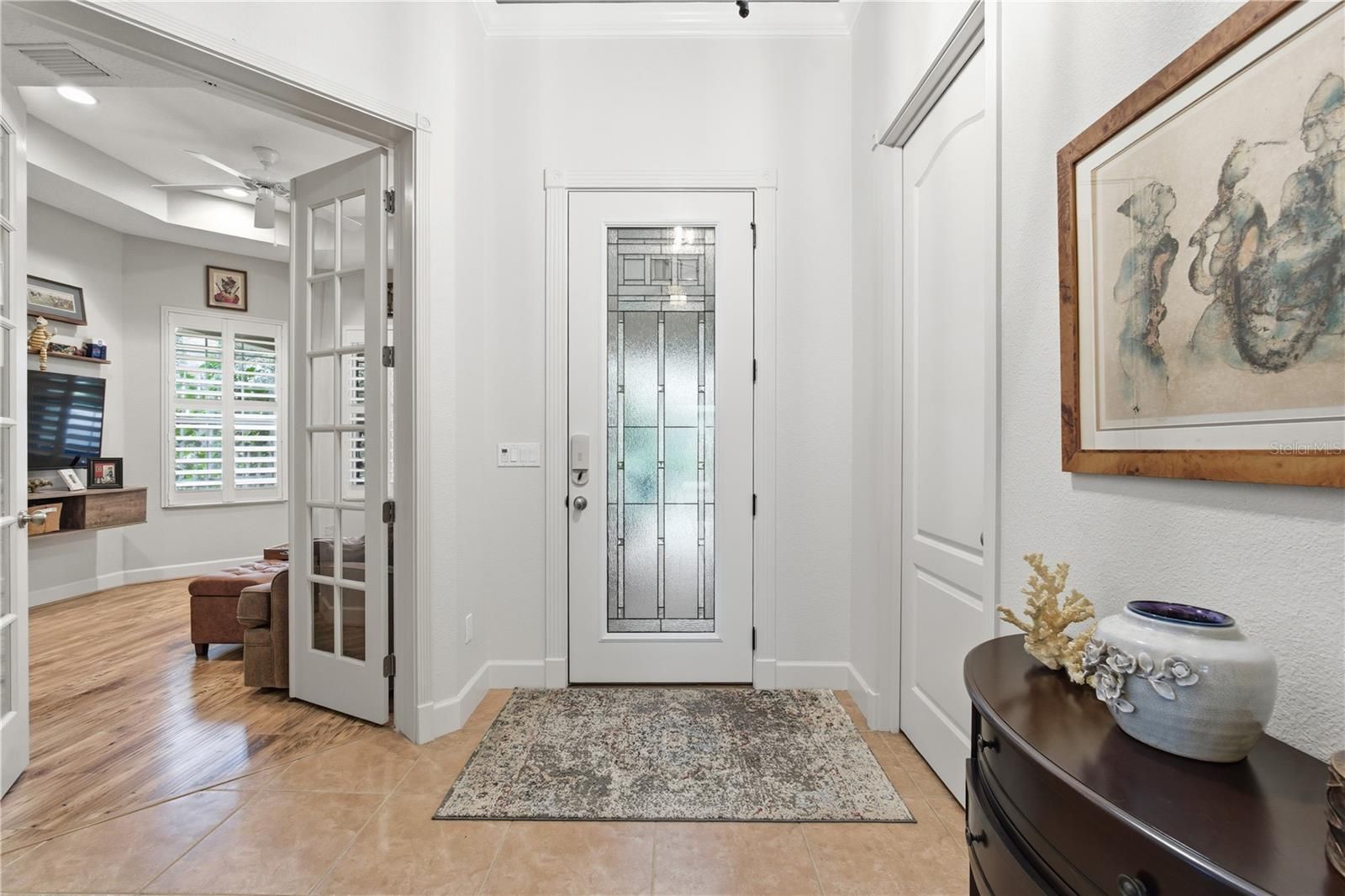Welcome to this absolutely adorable and fully updated 3-bedroom, 2-bath home with huge covered lanai located in the highly sought-after gated community of Grand Haven. Thoughtfully renovated inside and out, this home features a 2022 roof and a long list of high-end upgrades completed in 2024, offering modern comfort and effortless Florida living. An elegant paver walkway leads to the inviting formal foyer, highlighted by an upgraded front door with a decorative glass insert. The heart of the home is the stunning eat-in kitchen (2024) featuring 42" upper cabinets, quartz countertops, stainless steel appliances with induction stove, a spacious breakfast nook, and a breakfast bar adorned with custom applied molding. This beautiful kitchen opens directly into the cozy family room, creating an ideal environment for entertaining and everyday living. The family room is highlighted by quadruple pocket sliders that fully disappear into the wall, creating a seamless indoor/outdoor transition to the extended and covered screened lanai. The current owner has transformed this space into a charming garden retreat and added a retractable awning for additional shade—perfect for year-round relaxation. Elegant formal dining room with beautiful applied molding flows naturally into the family room, offering the perfect setting for gatherings and celebrations. The luxurious primary suite features tray ceilings, French doors to the lanai, a custom walk-in closet, and a spa-like ensuite bathroom remodeled in 2024, featuring double vanities, a large glass-enclosed walk-in shower, garden tub, and private water closet. The split-bedroom floor plan provides excellent separation and privacy. Bedroom two includes a custom built-in closet with the second full bath just steps away. The third bedroom is currently used as an office/den with a built-in desk in place of the closet—original doors remain available for easy conversion back to a bedroom. Additional Features: • Crown molding throughout • No carpeting anywhere in the home • Hurricane shutters for the front and side • Expansive custom blinds in the family room & plantation shutters throughout • Epoxy-finished 2-car garage with pull-down attic • Laundry room with sink; washer & dryer convey • Water heater replaced in 2024 • AC (2015), meticulously maintained and in excellent condition and electric bill is $100 avg monthly Set within the amazing Grand Haven community, residents enjoy underground utilities, sidewalks, streetlights, and miles of scenic walking and biking trails along the Intracoastal Waterway. Amenities included in the CDD fee feature two resort-style heated pools, two fitness centers, tennis, pickleball, basket ball, volley ball, crocket and bocce courts, 2 play grounds plus a beautiful fishing pier. Optional membership is available at the Jack Nicklaus Signature Golf Course. Conveniently located just minutes to the beach, shopping, dining, and an abundance of nature trails, this home showcases the very best of Palm Coast living. This home is an absolute must-see—fall in love and move in before the holidays!