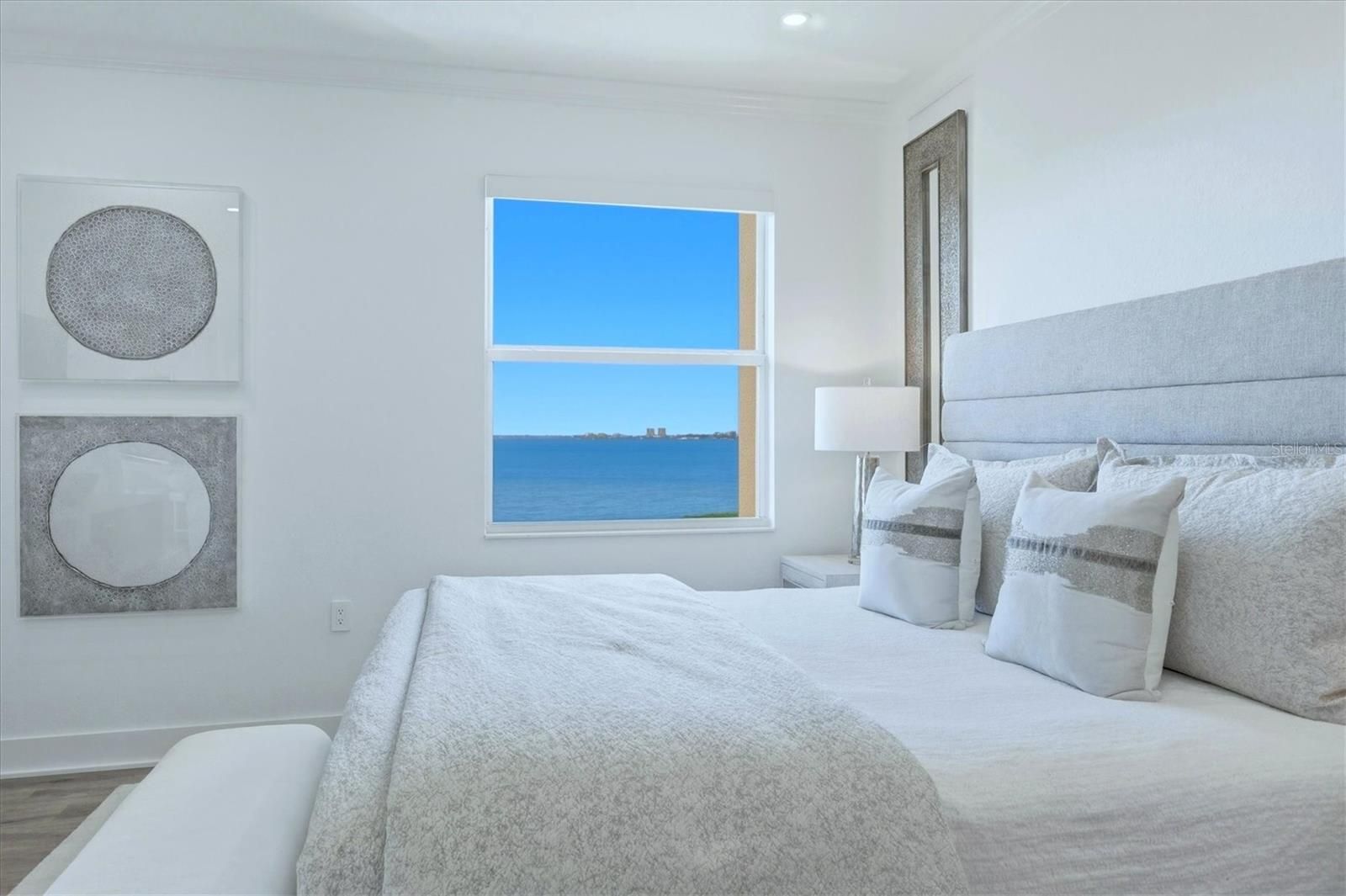 Magnificent, unobstructed views of the Manatee River from one of the most desirable buildings in Tidewater Preserve. This top-floor “Carolina” floor plan is among the community’s most sought-after layouts, offering three bedrooms, two baths, and an open-concept design that showcases the water from the main living areas. As a penthouse residence, this unit features higher ceilings and the added privacy of no neighbors above. The spacious living and dining areas flow seamlessly into the kitchen, creating an ideal layout for both everyday living and entertaining, all oriented toward the expansive river views. Large sliding doors open to a screened balcony with tile flooring, no-see-um screens, and roll-down shades providing a comfortable outdoor living space to enjoy the weather, sunsets, and dolphins year-round. This condominium has been extensively upgraded throughout. Improvements include luxury vinyl flooring, quartz countertops, updated paint, designer fixtures, custom backsplash, stone-accent wall, added cabinetry in the laundry room, custom closet systems throughout, new appliances, motorized window treatments, glass enclosed tub, new glass shower door, 5-inch baseboards, and solid wood interior doors with upgraded hardware and hinges. Light switches, plates, and fixtures have also been replaced for a cohesive, updated look. Smart home features include an integrated door lock system, Ring doorbell, and smart thermostat. Ideally positioned just steps from the community pool and fitness center, the building is also adjacent to a lake suitable for fishing. Tidewater Preserve is a gated waterfront community offering a private marina with direct access to the Manatee River and Gulf waters beyond. Amenities include two clubhouses, three pools, two fitness centers, a community room with catering kitchen, billiards, indoor and outdoor gas fireplaces, three Har-Tru tennis courts, canoe and kayak launch with storage, and a scenic nature trail along the river. The community also features 24-hour security and an on-site lifestyle director. Lawn and landscaping are maintained throughout. HOA fees are modest, there is no CDD, and association dues include water, flood insurance, internet/WiFi, and cable services. Schedule your private showing to experience this exceptional waterfront residence.