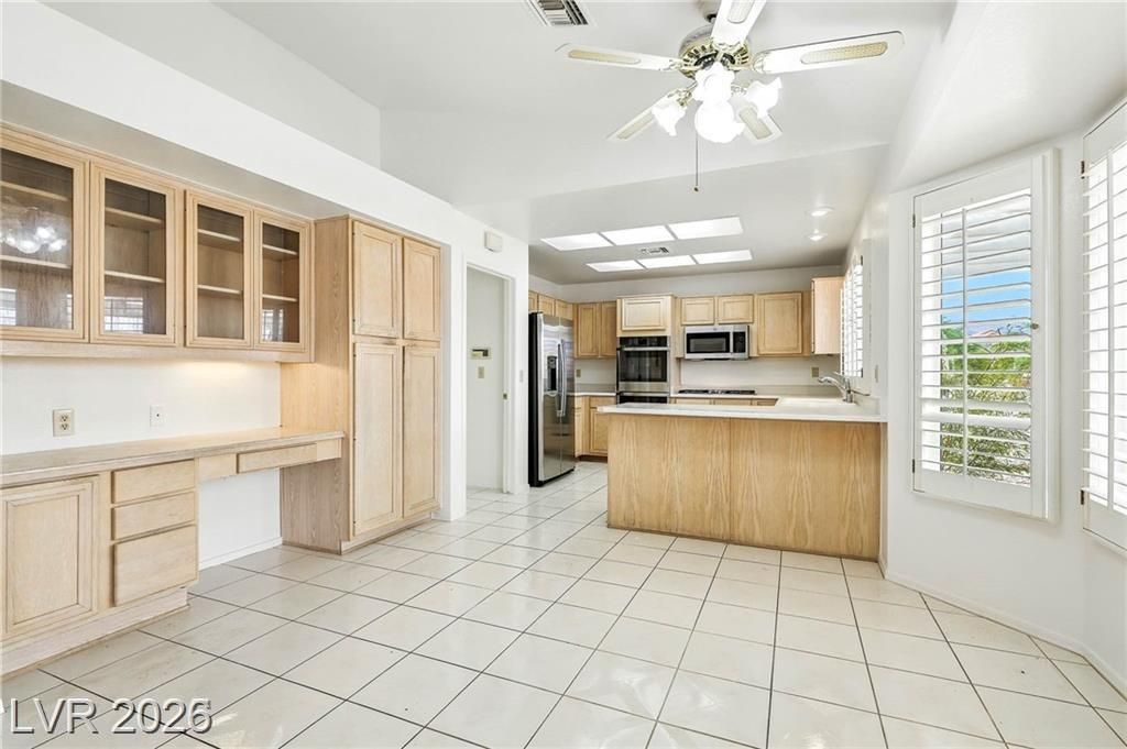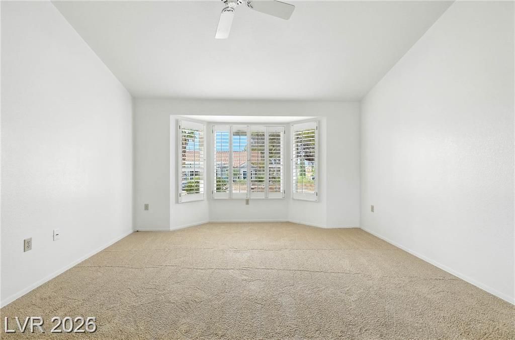 Beautifully updated home on a desirable corner lot in Sun City Summerlin’s 55+ community! This move-in ready property features a covered patio with ceiling fan, perfect for relaxing outdoors. Inside, enjoy new carpet, fresh paint, and plantation shutters throughout. The dining area boasts custom cabinetry, while the kitchen shines with all new stainless steel appliances. The spacious primary suite offers custom closets and a walk-in shower, and the large laundry room provides added convenience. Additional upgrades include cabinetry in the garage for extra storage. Don’t miss this stylish and functional home in one of Summerlin’s most sought-after active adult communities!