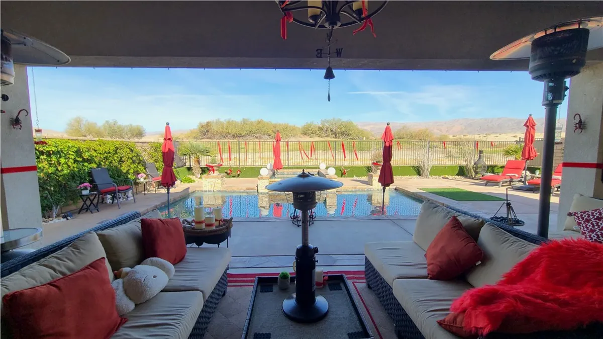 *One-of-a-Kind Gem*in the Four Seasons Terra Lago 55+ Active Community*This 3 Bedroom 2 Full Bathroom Home is on a quiet circle with only 19 other homes & the home comes Furnished (Items to be determined)*The VIEW from this home is spectacular*Not only do you have a magnificent view of the mountains and the golf course (on the 18th hole T. South), you also have a stunning serene view of your own *Retreat*The Pool, Jacuzzi, heater, lighting and misters can all be controlled with an app on your phone*A Custom-built pebble Tec pool has seating areas in the water to wade & relax in with the jacuzzi flowing from above, 2 pillar waterfalls & a stone water fall from the jacuzzi running into the pool; both pool and jacuzzi have LED lighting, not to mention the cooling misters which are placed all around the patio with a commercial motor*all to add to the luxury of your back yard*There is surround sound inside & out to create whatever mood you desire*The seller paid close attention to details making this a relaxing oasis*Living room has a custom 3 door slider that opens to the outside covered patio extending your entertainment area*There is a cozy fireplace with a well-designed Mantle for quiet & relaxing evenings*Master bedroom also has a slider that shows the exquisite back yard view of