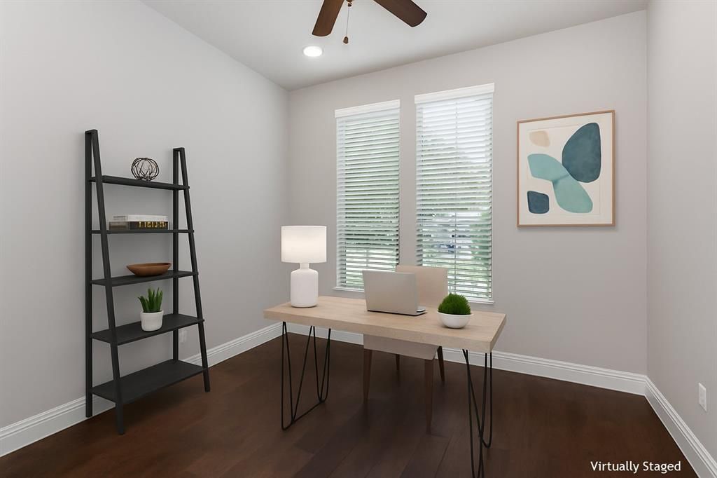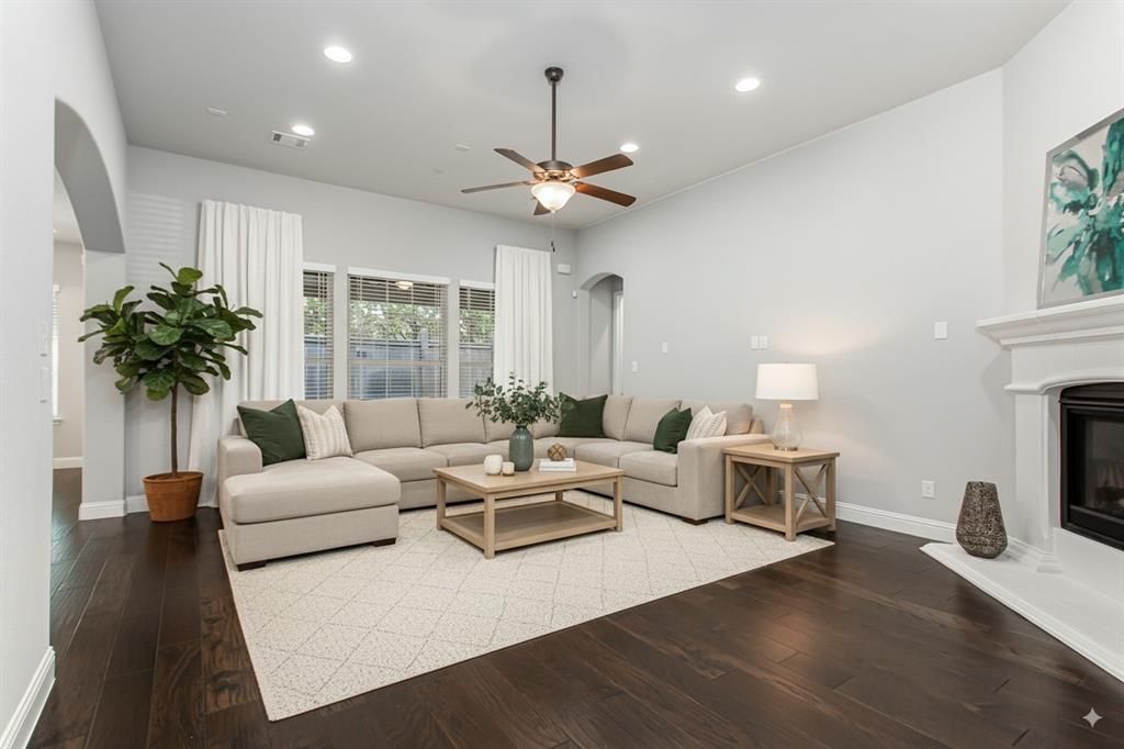 Low Maintenance Luxury Living meets Location! Gorgeous, well-maintained home with Exterior Care Included in HOA! Spacious, open, and bright, this single-story beauty showcases stunning wood floors throughout the common areas, a large living room with a cozy corner gas-log fireplace, and impeccable finish-out. The gourmet kitchen impresses with double ovens, gas cooktop, elegant upgraded granite countertops, a chiseled-edge island, and a Blanco Silgranit sink. You’ll love the abundant counter space and generous storage. Added builtin cubbies with seating in the mudroom, and cabinets and a sink in the laundry. A private office off the entry and an adjacent half bath lead to two generous bedrooms connected by a Jack and Jill bath with private vanities. The primary suite is tucked away at the back of the home with vaulted ceilings and a spa-inspired bath featuring a jetted soaking tub, frameless shower with builtin granite seat, and a spacious closet. Additional highlights include pre-wiring for sound, an owned security system, epoxy coated garage floor, and a whole-home air scrubber. The private, fully bricked patio is perfect for outdoor enjoyment, prewired for TV and equipped with a natural gas connection for a future builtin grill. Location is key, and this home has it all! Enjoy a large community pool and clubhouse, plus community events and gatherings. Location is key and this home has it! New Costco just down Stacy Rd, Top notch restaurants at every turn, and multiple medical centers. Cannon Beach, The HUB and The Farm shopping and entertainment. AND This is A GOLFERS DREAM with easy access to TPC Craig Ranch, home of the Byron Nelson.