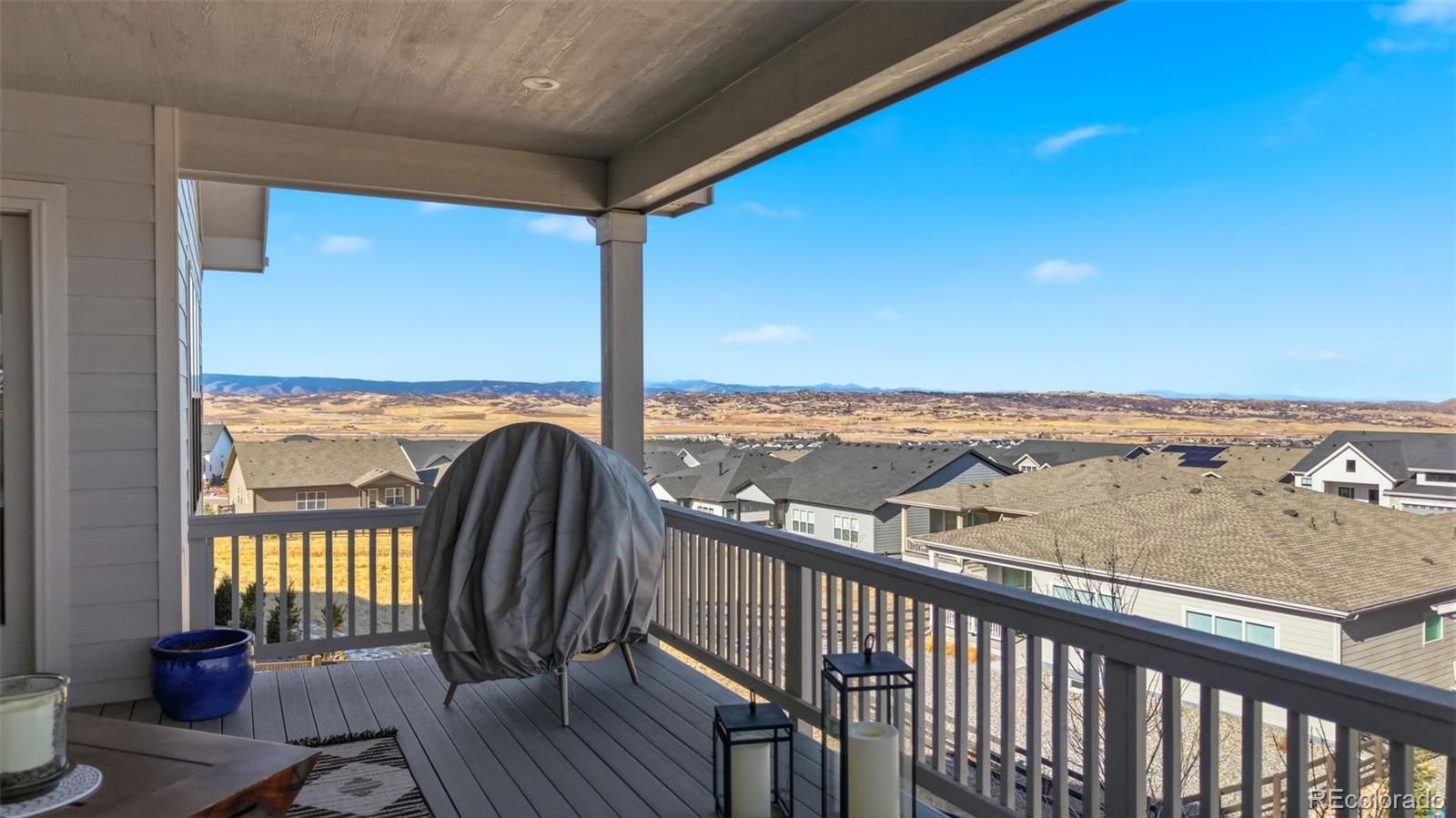 Welcome to effortless main-level living in Montaine’s sought-after Regency Collection, Castle Rock’s premier 55+ luxury community. Set in a friendly cul-de-sac where neighbors connect through holiday gatherings and everyday support, this home offers the peace of mind that comes from living among people who truly care. The open-concept floor plan is filled with natural light and features high ceilings, wide plank flooring, and a stunning great room with front range views, gas fireplace and large nesting sliding glass doors, creating a seamless indoor-outdoor flow perfect for entertaining. Electronic window coverings throughout the home add modern convenience and a polished finish. The gourmet kitchen is the heart of the home, showcasing an oversized island, custom cabinetry, quartz and granite countertops, double ovens, walk-in pantry, and generous prep space—ideal for both everyday living and hosting. The primary suite is a private retreat, complete with its own gas fireplace, radiant heated floors in the spa-inspired five-piece bath, and a spacious walk-in closet. A secondary bedroom with ensuite bath and a dedicated home office provide flexibility for guests, hobbies, or work-from-home needs. Convenient main-level laundry enhances ease of living. Step outside to the covered composite deck and enjoy open views and peaceful surroundings. The south-facing driveway naturally melts snow, a thoughtful Colorado convenience. Additional highlights include owned solar panels, central A/C, an oversized 3-car garage with EV hookup, and a level, professionally landscaped lot. The walk-out basement is unfinished and ready for future expansion. Montaine offers a true resort lifestyle with pickleball, tennis, bocce, lap and lounge pool, spa, clubhouse, fitness center, and over 13 miles of trails across 548 acres of open space. Snow removal and trash are included. This is downsizing done right—luxury, comfort, and community in one exceptional home.