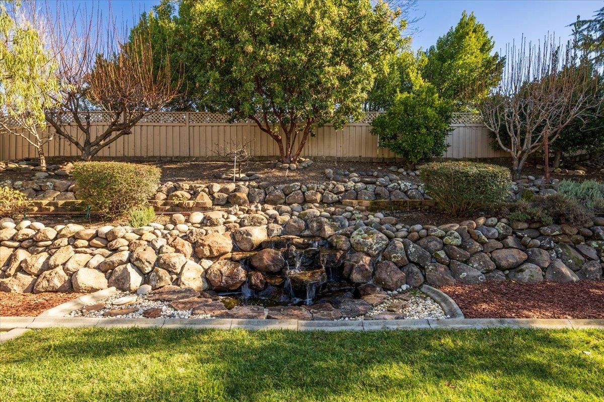 Discover the ideal blend of comfort and modern living in this thoughtfully updated Orchard Crest model where privacy is enjoyed both inside and out. With 2 bedrooms, 2 bathrooms, a versatile office/den and an open concept kitchen/entertaining area you can enjoy family and friends. The kitchen is the focal point, designed for both culinary exploration and casual gatherings, featuring solid surface countertops that provide ample workspace for meal preparation. A large kitchen island becomes a central gathering spot, perfect for morning coffee or casual conversation, while the kitchen bar and kitchen peninsula offer additional seating and serving options. The master bedroom features a room extension for added space, while the master bathroom offers a sanctuary of calm with new lighting and faucets to support a more modern, spa-like setting. Outside, the impeccably landscaped backyard offers a tranquil escape, centered around a stunning and serene water feature with a fire pit for evening entertainment. It also boasts a tile patio where you can add your personal spa with the 220 electrical line in place! Additional highlights include the extended 2.5 car garage with workbench and a storage unit next to the outdoor sink and laundry area. Please note: This property was recently re plumbed to remove Kitec. This home offers comfort, style, and resort-style living in one of Lincoln's most desirable 55+ communities.