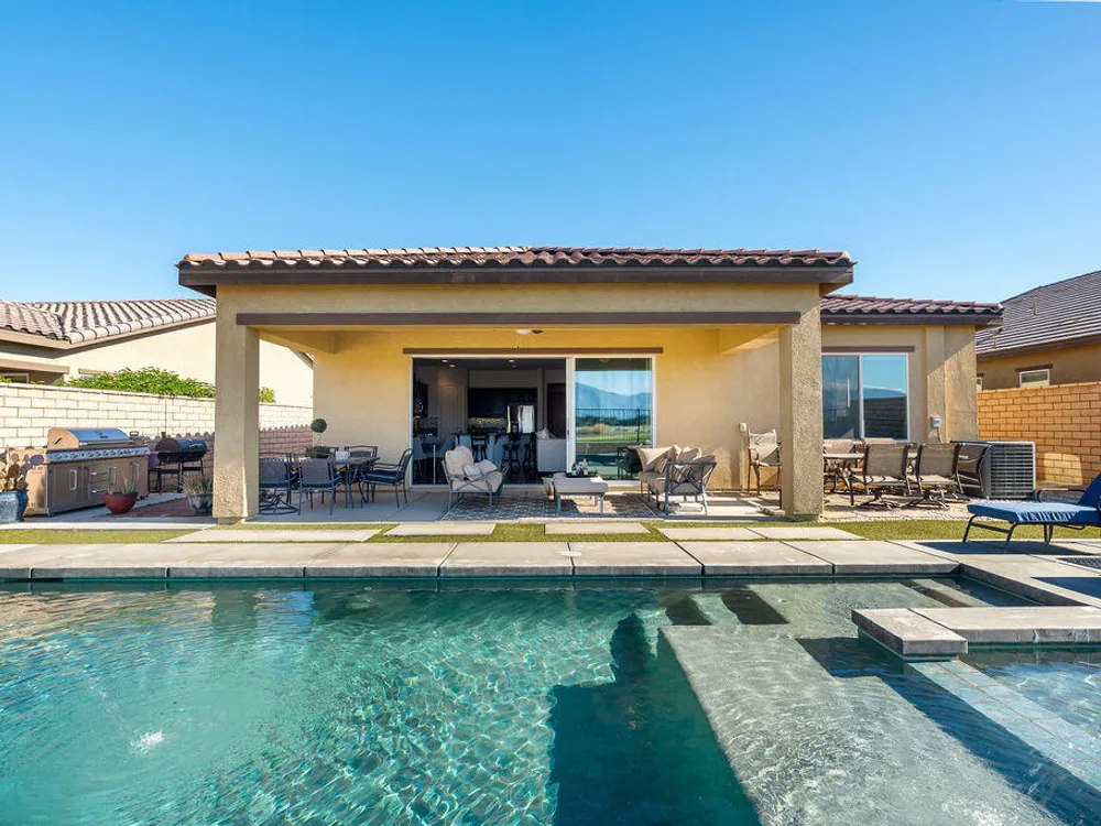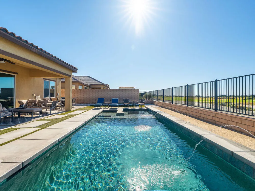 Welcome to your dream retreat in a vibrant 55+ community, nestled by the 14th hole of the golf course. This stunning single-story home offers luxury and serene views, featuring 3 bedrooms and 2 bathrooms in a spacious Great Room layout ideal for entertaining or relaxation. The primary suite is a true sanctuary, with a walk-in closet and a spa-like en-suite bath. The chef's kitchen boasts granite countertops, a center island, and a cozy breakfast area, perfect for effortless living. Step outside to your private heated saltwater pool and spa, adorned with pebble-tec and tile accents, all while enjoying breathtaking views of the lush fairways. This home isn't just a residence; it's a lifestyle. Enjoy peace and privacy in this active adult community, with exclusive access to 'The Lodge,' which includes a grand ballroom, library, fitness center, beauty salon, indoor and outdoor pools, spa, BBQ areas, and daily refreshments with a welcoming staff. Experience the finest in leisure and luxury!
