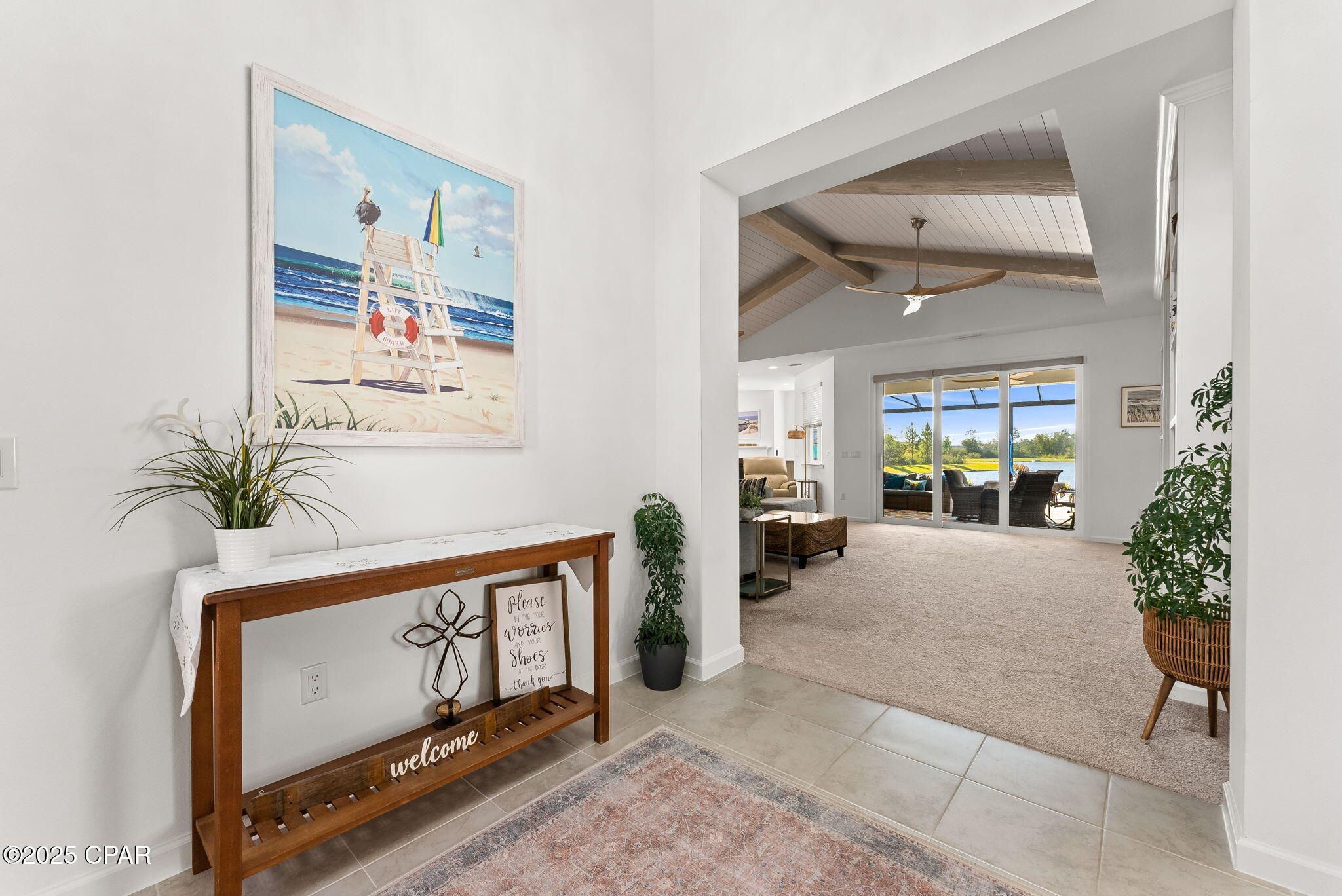 Latitude Margaritaville Watersound, a premier 55+ Active Adult Community. Trinidad Bay - Island Collection Pool Home/close in phase 3. Stunning pond and preserve views—truly one of the best lots in the community! Enjoy magnificent sunsets year-round from this exceptional fully furnished home, including the golf cart. Located close to all the world-class amenities Latitude Margaritaville Watersound offers, and priced below recent appraisal value! This beautiful 3-bedroom, 3.5-bath home features open-concept living with a 3-car garage. The great room showcases custom built-ins, beams, and shiplap cathedral ceilings along with a striking foyer ceiling treatment and designer wallpaper accent wall in the great room. The cozy fireside dining area doubles perfectly as a hearth room. The chef's kitchen impresses with a gas cooktop, range hood, wine cooler, walk-in pantry, oversized island, granite countertops, custom backsplash, under-cabinet and island lighting, and white cabinetry. The primary suite offers serene pool and pond views, a luxurious bath with soaking tub, separate tiled shower, dual vanities, and walk-in closets with pocket doors. Two additional bedrooms feature ensuite baths with upgraded tile showers, plus a half bath and a private den/office with French doors. Step outside to your outdoor oasis—a covered lanai overlooking the heated saltwater pool with tanning ledge and ample space for entertaining or relaxing. The perfect spot to take in sunsets and watch wildlife. Additional features include: • Generac whole-house generator • Home water filtration system • Epoxy-coated 3-car garage floor with utility sink • Gas fireplace with blower • Hurricane-rated windows (some impact) • Upgraded ceiling fans and fixtures throughout • iFlo HVAC system • Sealed pool pavers • 8-ft doors and blinds throughout • 4 Smart TVs and Sonos sound system included • Most furnishings convey (a few exclusions apply) • Lanai gas connection, Paver driverway / walkway • 10-year structural warranty from original buyers close date This Trinidad Bay Island Collection home offers the perfect blend of luxury, function, and resort-style living—all in the heart of Latitude Margaritaville Watersound an active adult 55+ community, coastal lifestyle designed for fun and relaxation. At the heart of it all is the Town Square where live entertainment fills the air on a daily basis and every Fri/Sat. night! Homeowners enjoy the Resort-style pools- perfect for lounging in the Florida sunshine or enjoying a swim with friends. State-of-the-art fitness center & group classes - including yoga, spin classes and lap pool and spa, water aerobics to name a few. Walking, biking, and golf cart trails that wind through the community with easy access to all amenities. Sports courts - including pickleball, tennis, and bocce, basketball encouraging friendly competition and active living. Kayak launch for adventure seekers, Last Mango Theater for shows and events, ceramics and wood working shops, pet grooming and a dedicated dog park. Beyond the amenities, Latitude Margaritaville Watersound offers a low-maintenance lifestyle—with lawn care included in HOA dues, 10 structural warranty, giving residents more time to enjoy the beach, boating, or exploring nearby Panama City Beach and 30A. A future shopping complex to include a Publix grocery store, dining and shopping options and a public marina is planned on site. New hospital currently being built 5 miles from the community. Whether it's a sunset golf cart ride, cocktails by your private pool, or mingling with neighbors at one of the many social groups, this is a place where every day feels like a vacation.