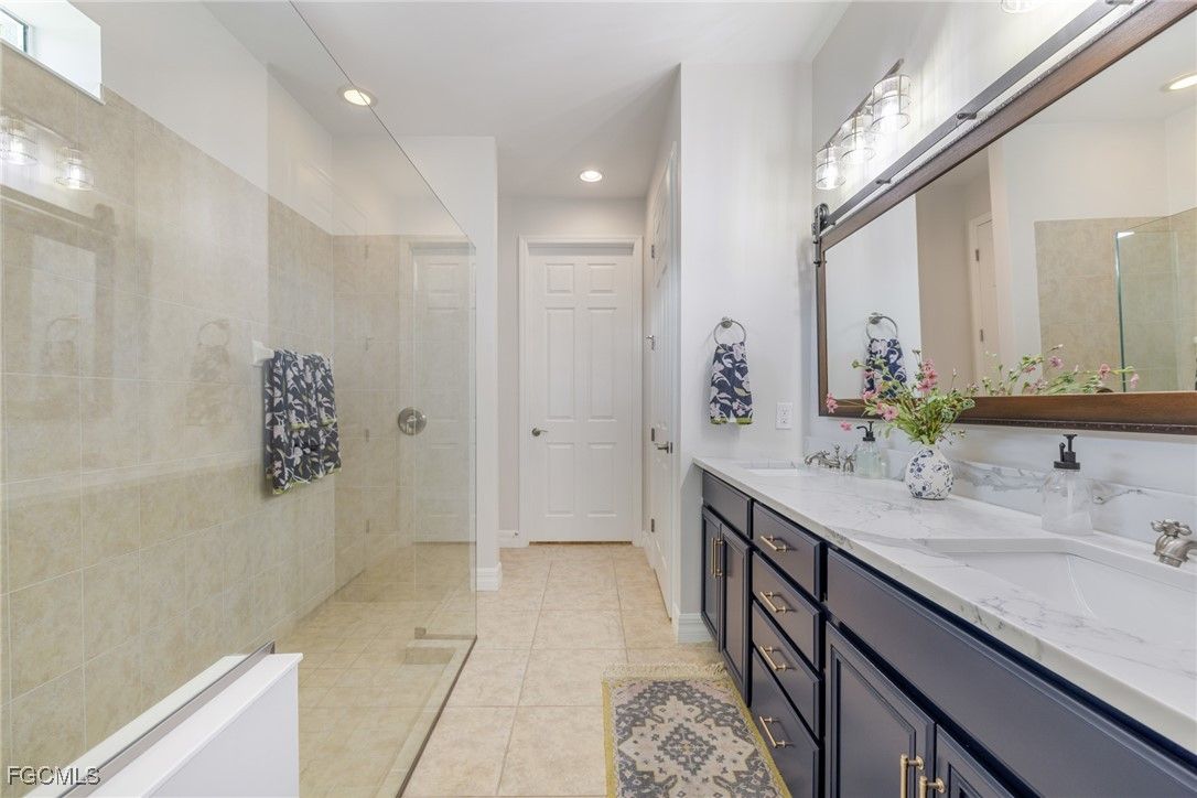 Welcome to Verona Walk, a premier resort-style community offering luxury, comfort, lakeside tranquility, and convenience! X-Flood Zone - no flood insurance required. This beautifully updated ONE-OWNER, 3-bedroom + Den, 2-bathroom home with a 2-car garage and 2,188 sq. ft. of living space showcases elegant upgrades and thoughtful details throughout. Enjoy Southern exposure and a private backyard oasis featuring a lake view, and heated chlorine pool & spa, perfect for year-round relaxation. Step inside to find a bright, open-concept floor plan with fresh interior paint (2022), crown molding, Bermuda shutters, and all-new light fixtures and fans for a refined coastal feel. The 2022 kitchen makeover includes a well-organized and decorated pantry, stunning quartzite countertops, new stainless steel appliances, and stylish finishes that make it the heart of the home. Bathrooms have been tastefully refreshed with quartz counters, new vanities, and updated guest shower tile. Additional highlights include Storm Smart lanai hurricane screens, accordion shutters, two charming shiplap accent walls, an oversized laundry room, attic storage, and an epoxy-coated garage floor. The exterior was freshly painted in 2023, ensuring modern curb appeal and lasting value. Located in one of Naples’ most sought-after communities, Verona Walk offers a full array of amenities—Lagoon pool, lap pool, pickleball, fitness center, Verona Café, Pink Frog Café, farmer's market, post office, gas station, and beauty salon. Enjoy miles of scenic walking and biking paths—all just minutes from dining, shopping, and beaches. Move-in ready and meticulously maintained—this home captures the best of Naples living!